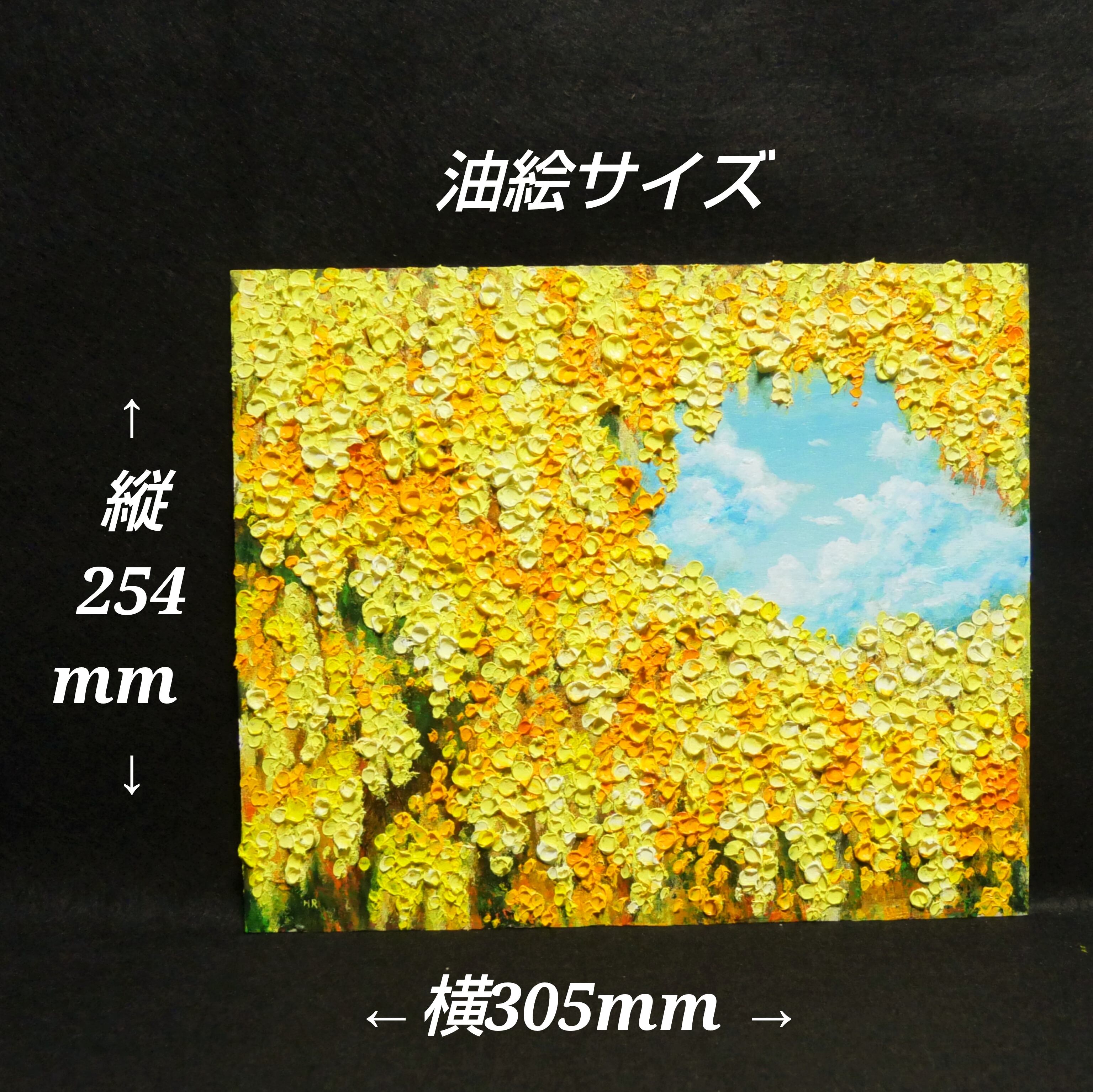 使用されている油絵の具は一流の【ホルベイン】で、ミモザの柔らかな色合いと生命力が見事に表現されています。「ミモザの丘」は、心を和ませる特別な作品で、見る人を惹きつけることでしょう。