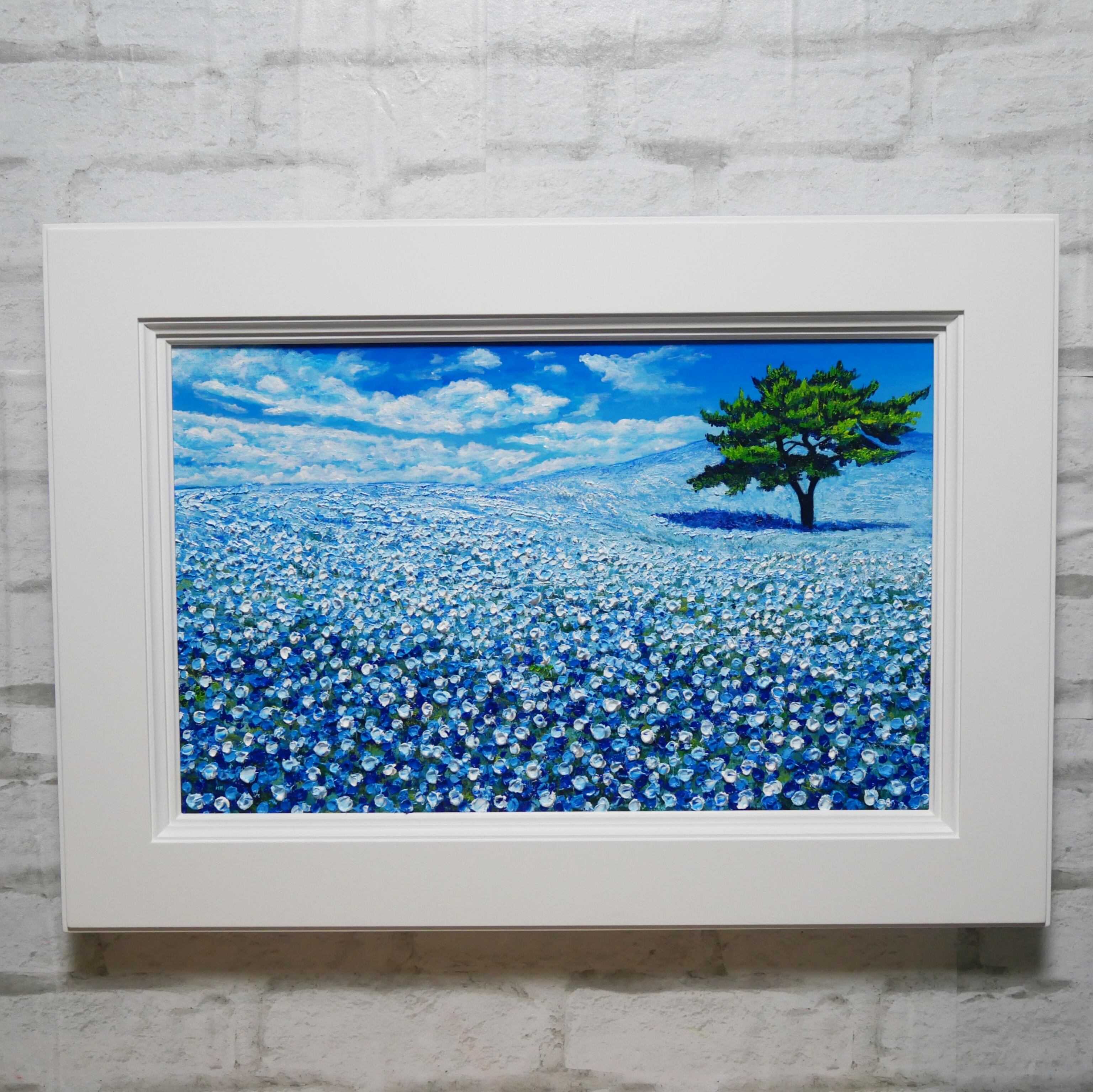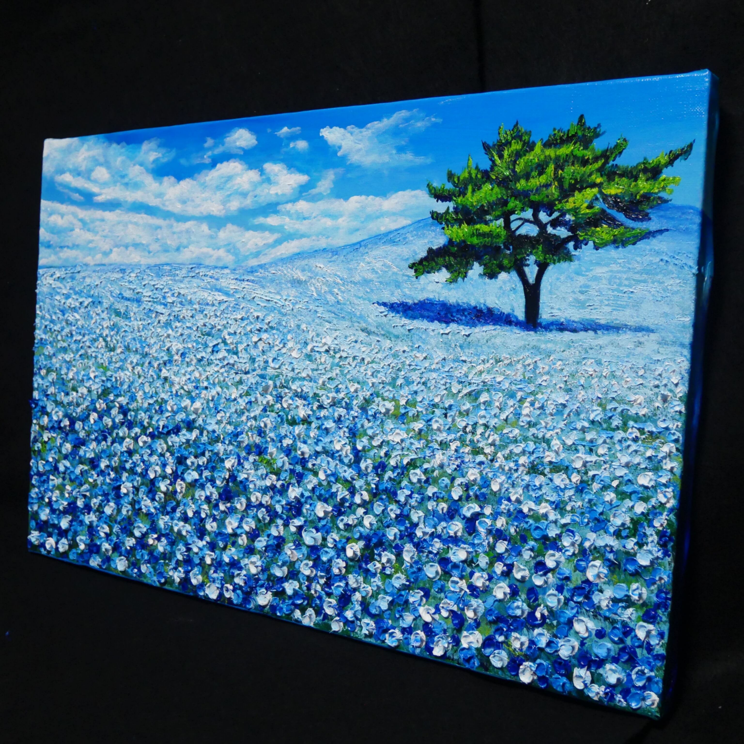 使用されている油絵の具は一流の【ホルベイン】で、ネモフィラの透明感と自然の美しさが見事に表現されています。「ネモフィラの丘」は、あなたの心に優しい感動を呼び起こす特別な作品で、見る人を惹きつけることでしょう。