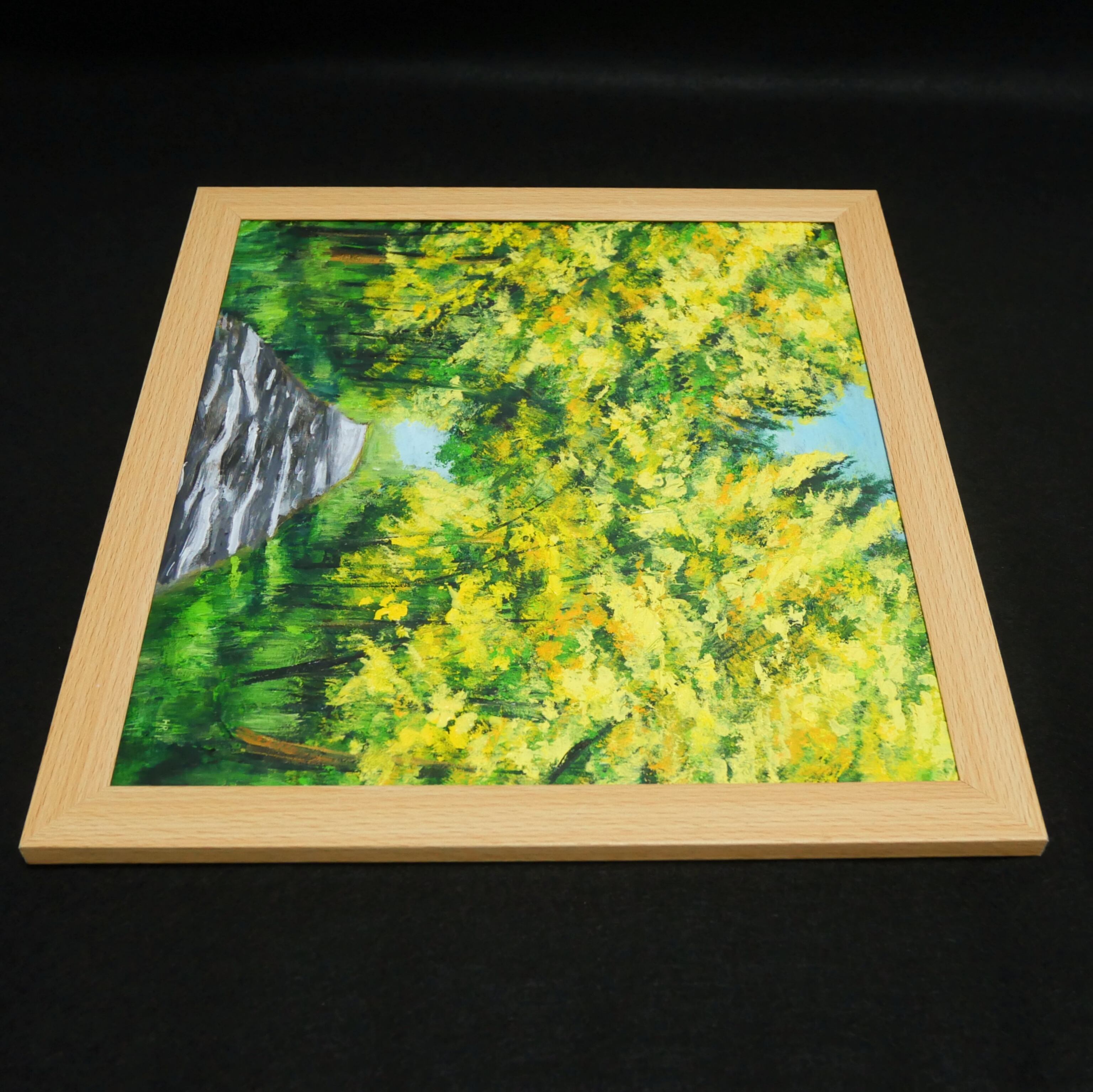 使用されている油絵の具は高品質な【ホルベイン】を使用しており、特別な技法でミモザの美しさとその周りの景色を最大限に引き出しています。「ミモザのトンネル」は、あなたの心に春の訪れと自然の美しさを届ける特別な一品です。