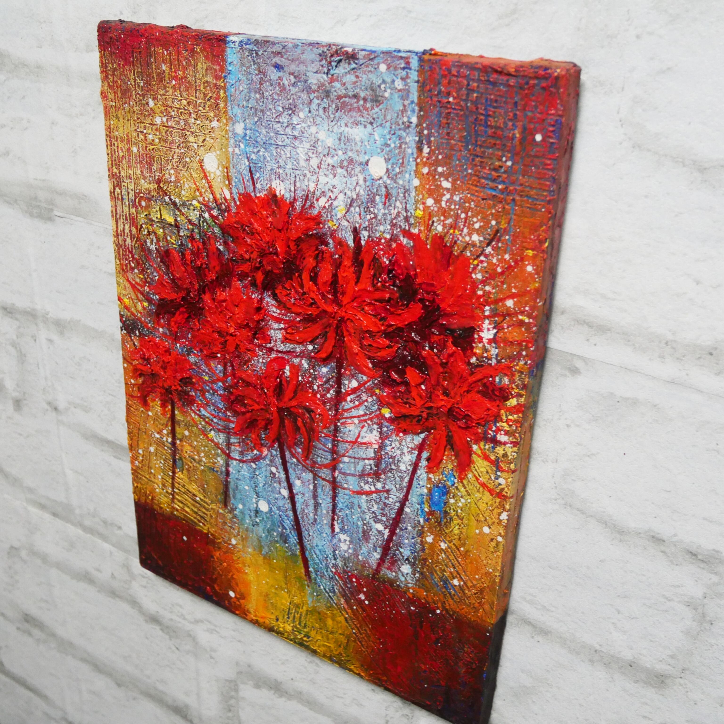 使用されている油絵の具は高品質な【ホルベイン】で、特別な技法を用いて彼岸花の美しさと背景の色彩を見事に表現しています。「彼岸花」は、あなたの心に華やかさと芸術の奥深さを届ける特別な一品です。