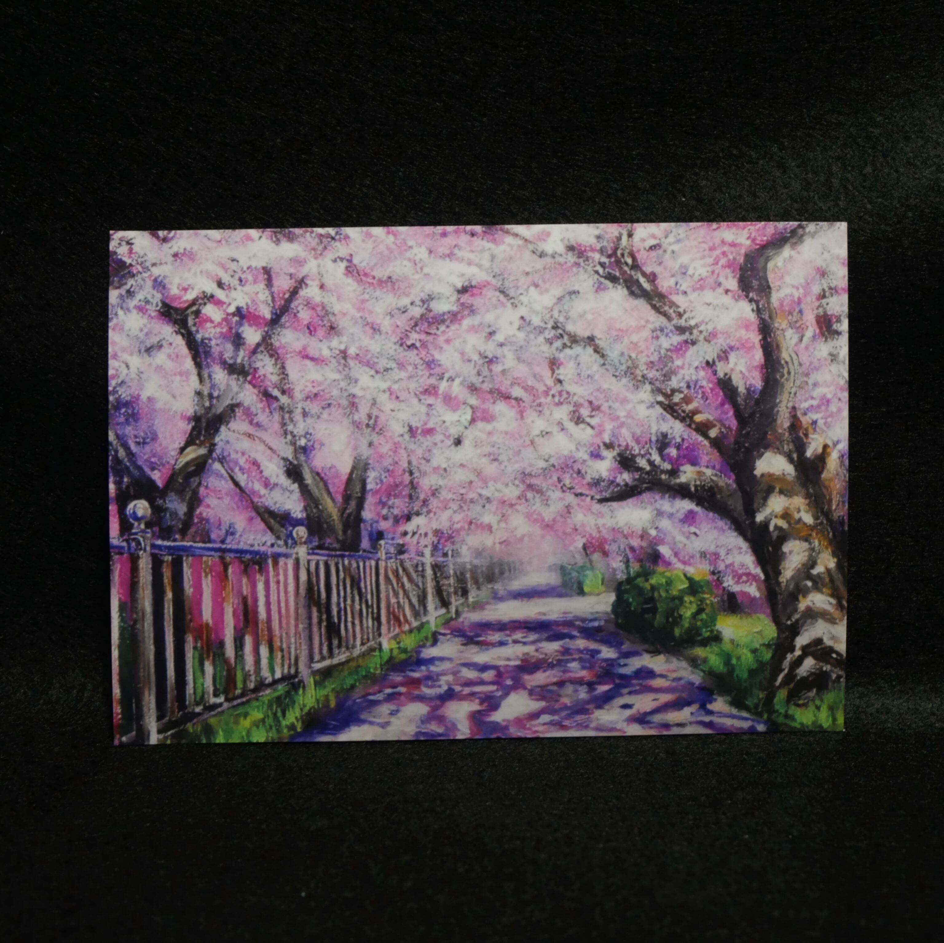 このポスターカードのサイズは縦89mm × 横127mmで、壁掛けや立て掛けが可能ですので、手軽にお部屋を彩ることができます。河津桜まつりの情景を楽しめるこの作品は、さまざまなインテリアに調和し、特別な瞬間を演出します。