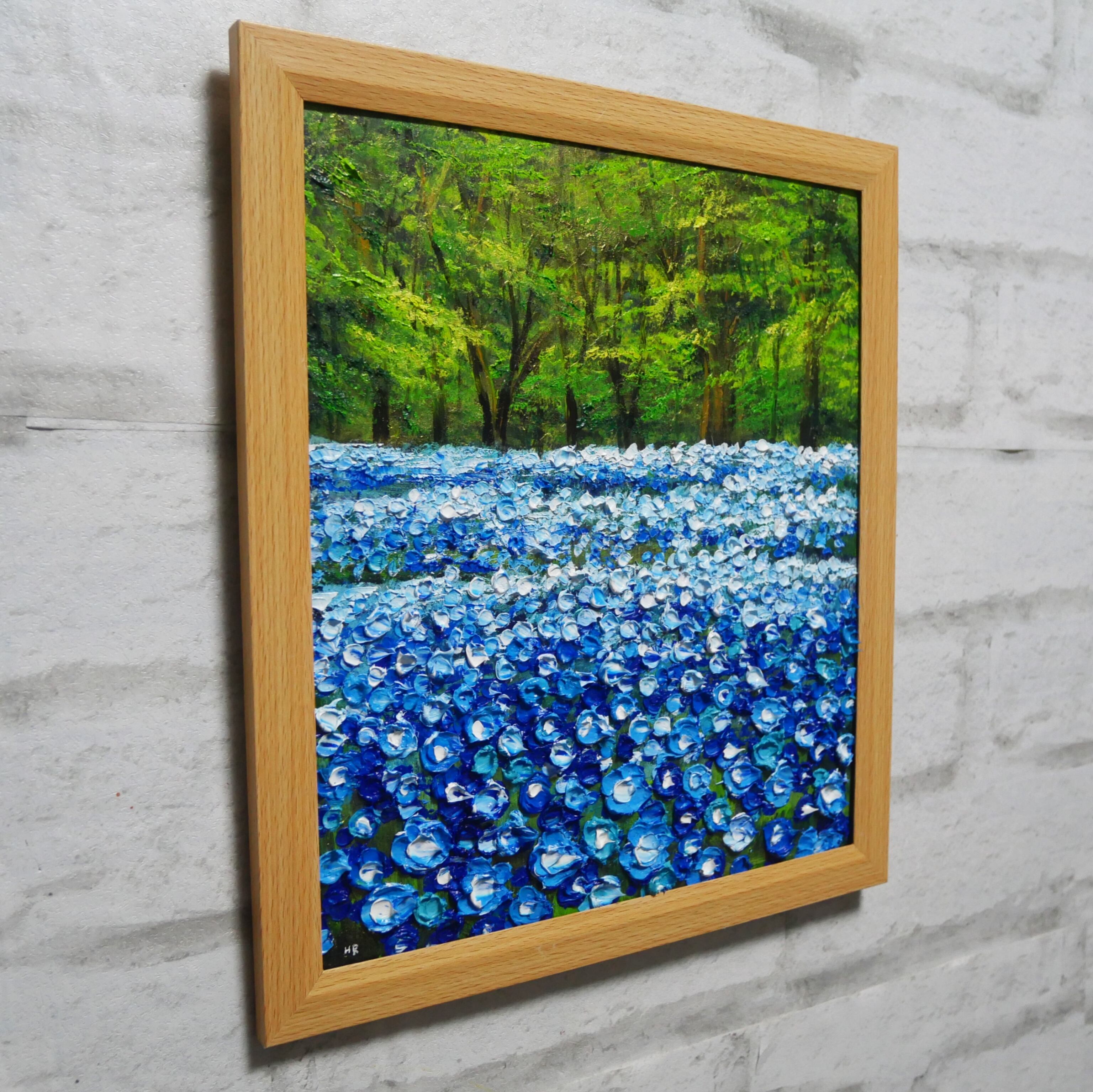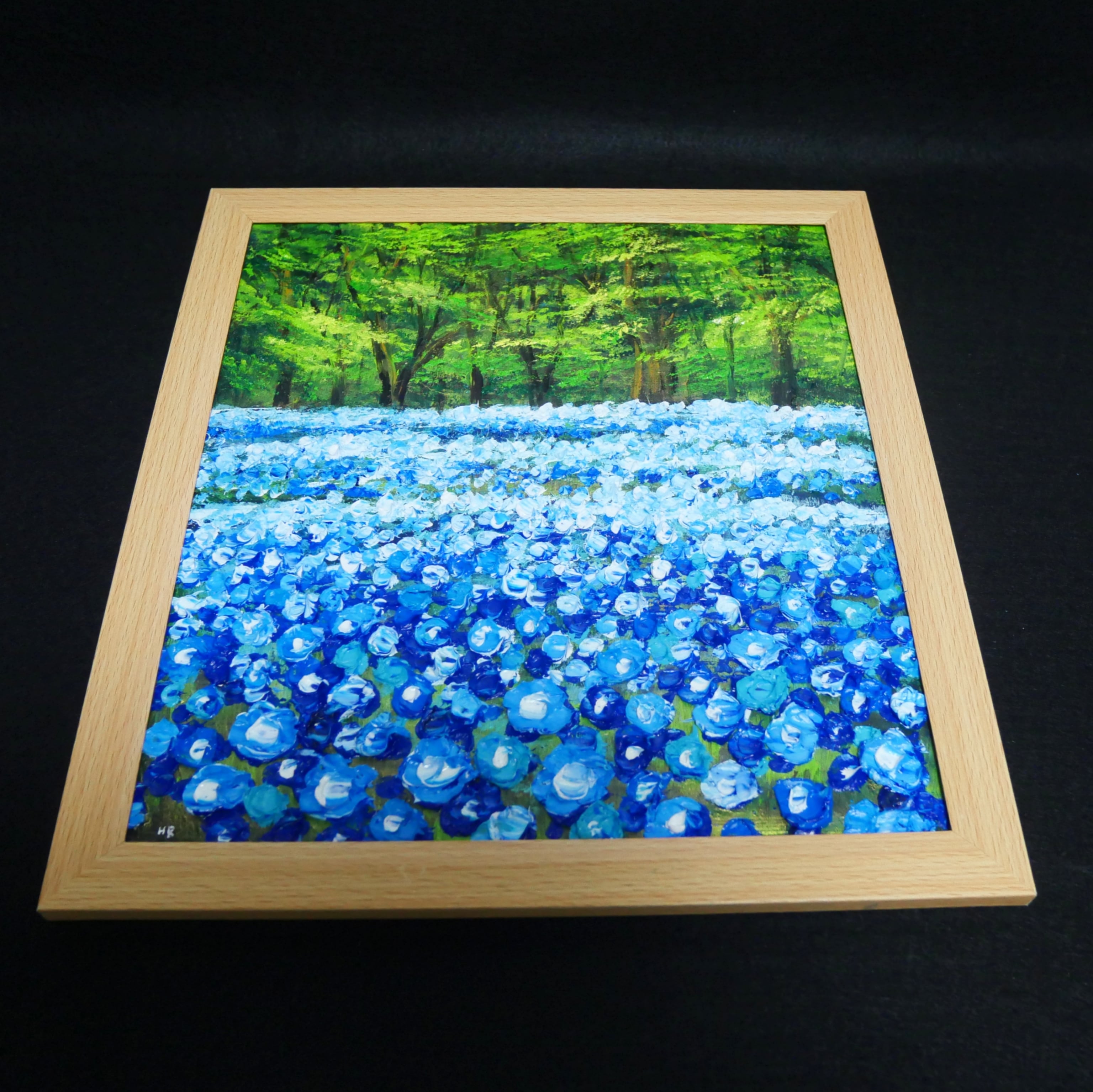 「青い花の森の中」は、穏やかな森とその下に広がる美しい青いお花畑を描いた特別な油絵作品です。この作品は、緑豊かな森と鮮やかなネモフィラの花が織り成す自然の美しさを表現し、見る人に心の安らぎと希望をもたらします。豊かな色彩と優雅な筆致が、あなたの生活空間を彩ります。