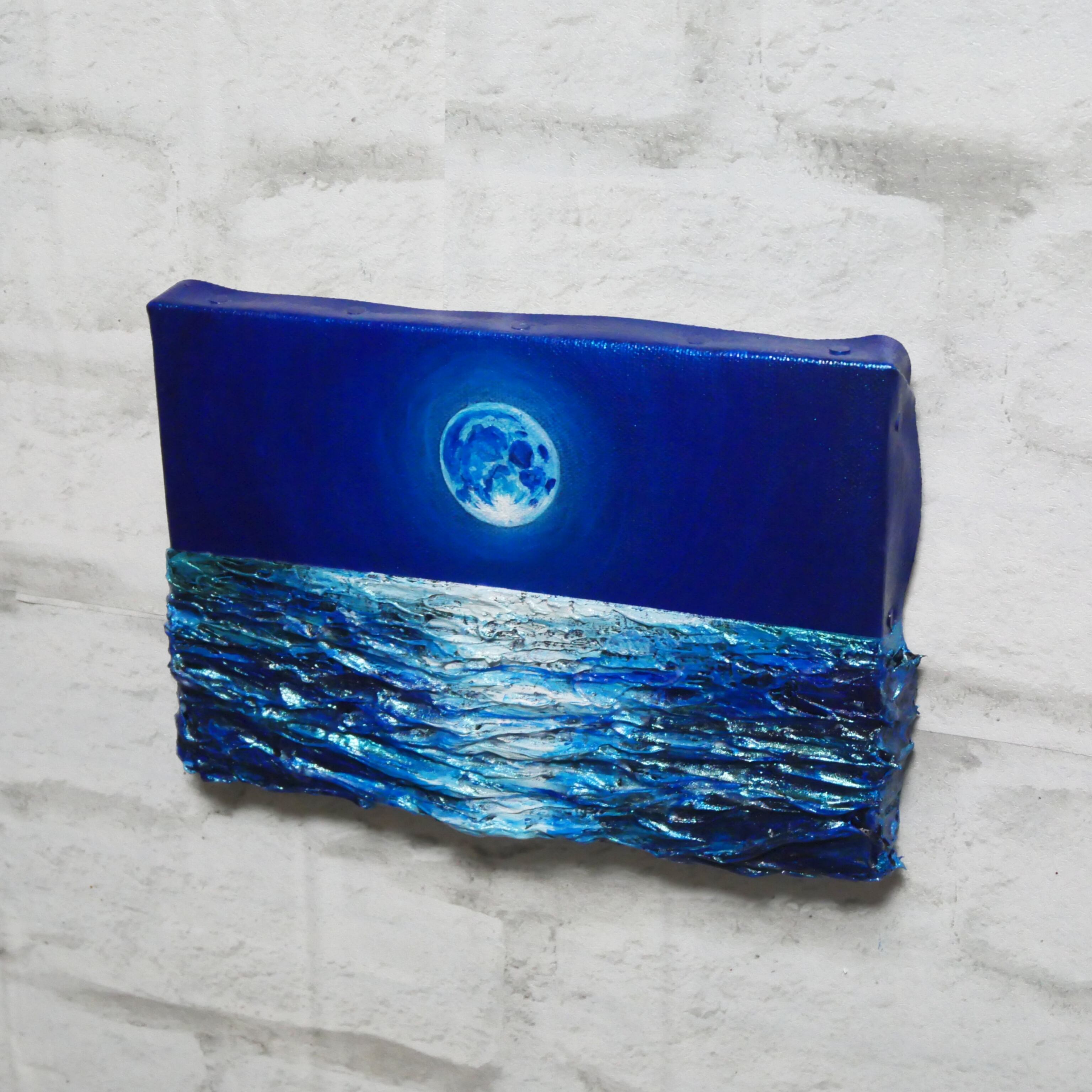 使用されている素材には、ホルベインの油絵の具をはじめ、高級クロマパールブルーとジェルメディウム・ヘビーボディが用いられており、波の動きや月明かりの輝きが見事に表現されています。この作品は、あなたの日常に長く楽しんでいただける特別なアートとして、心に響くことでしょう。