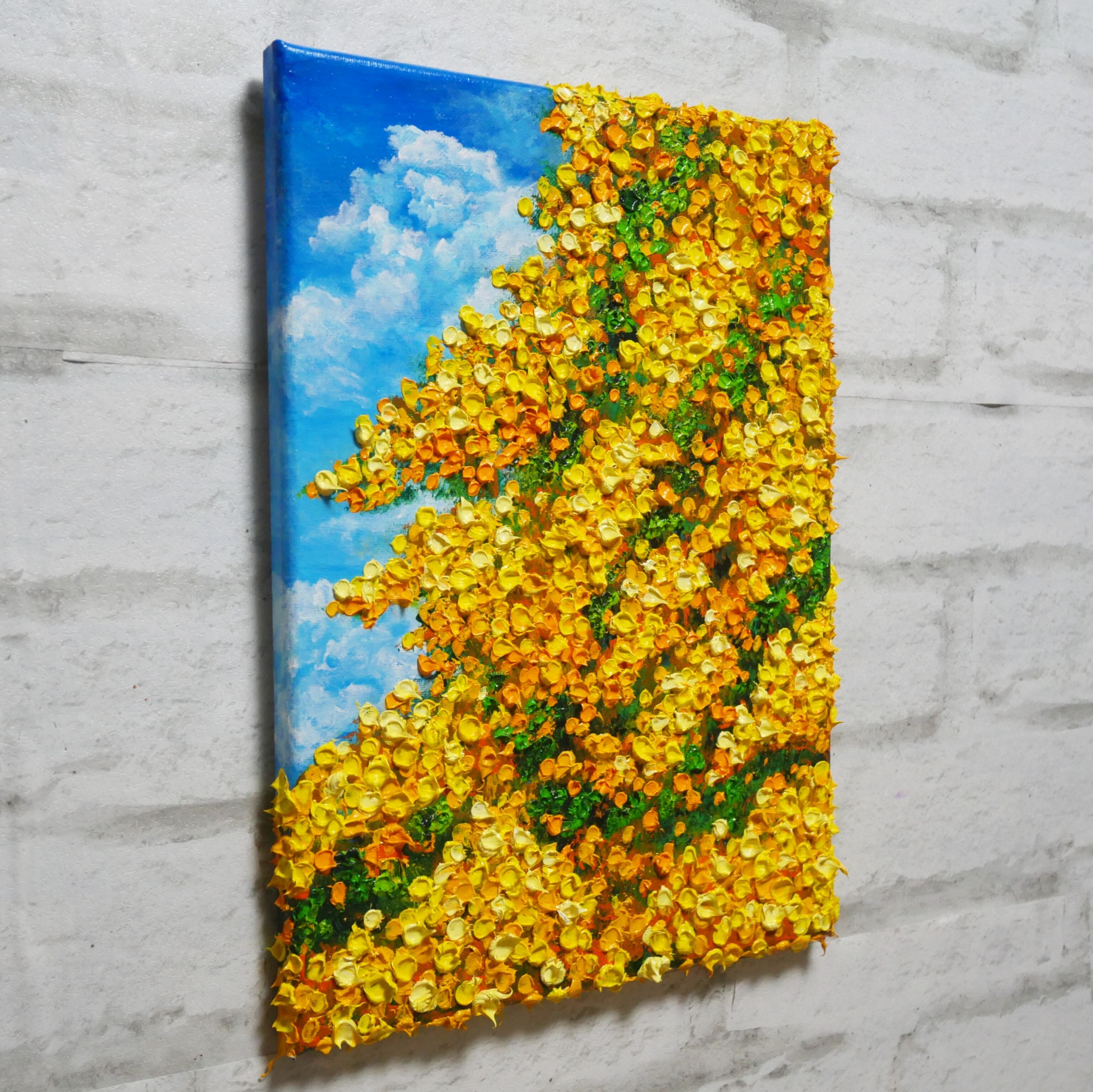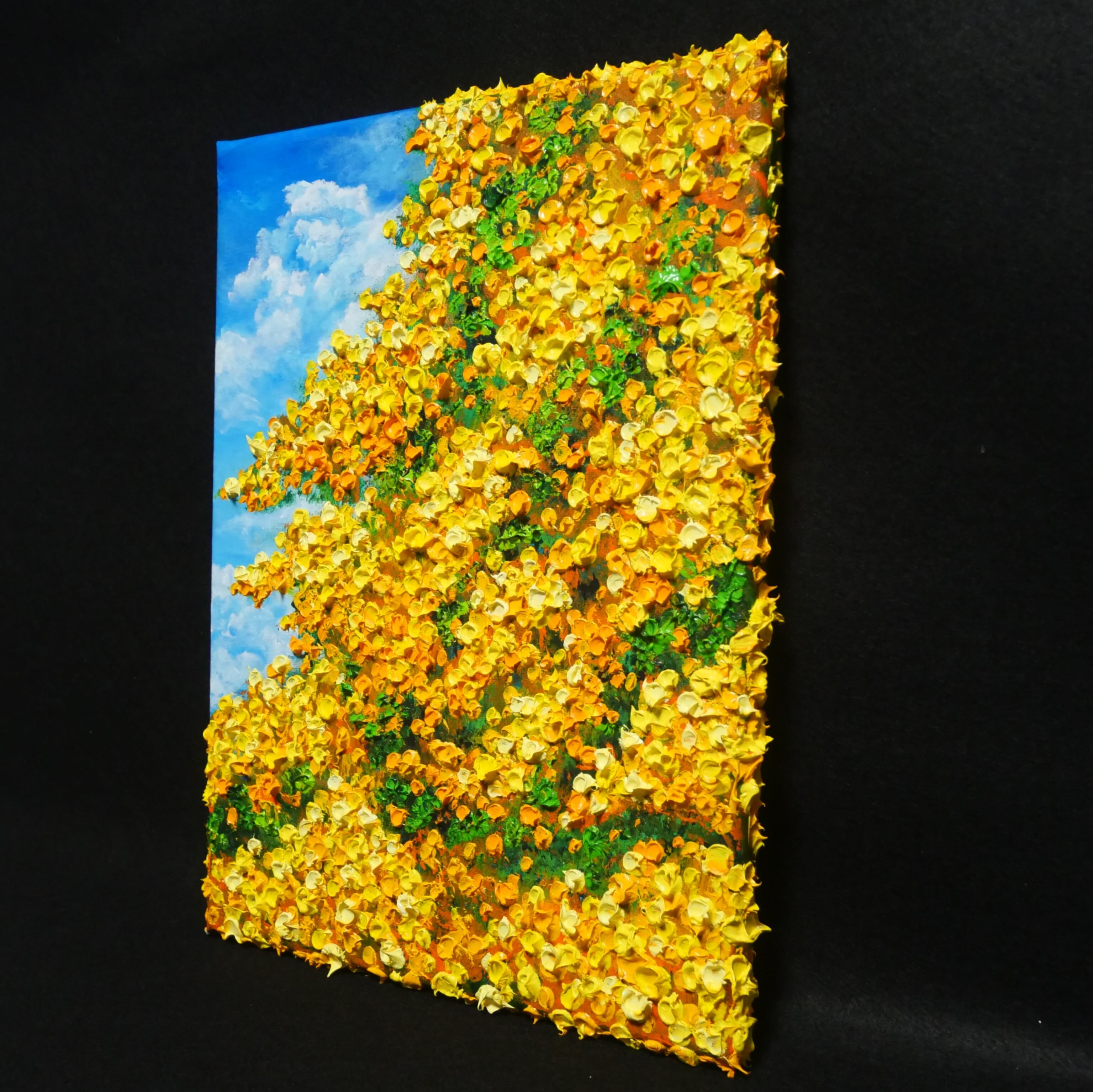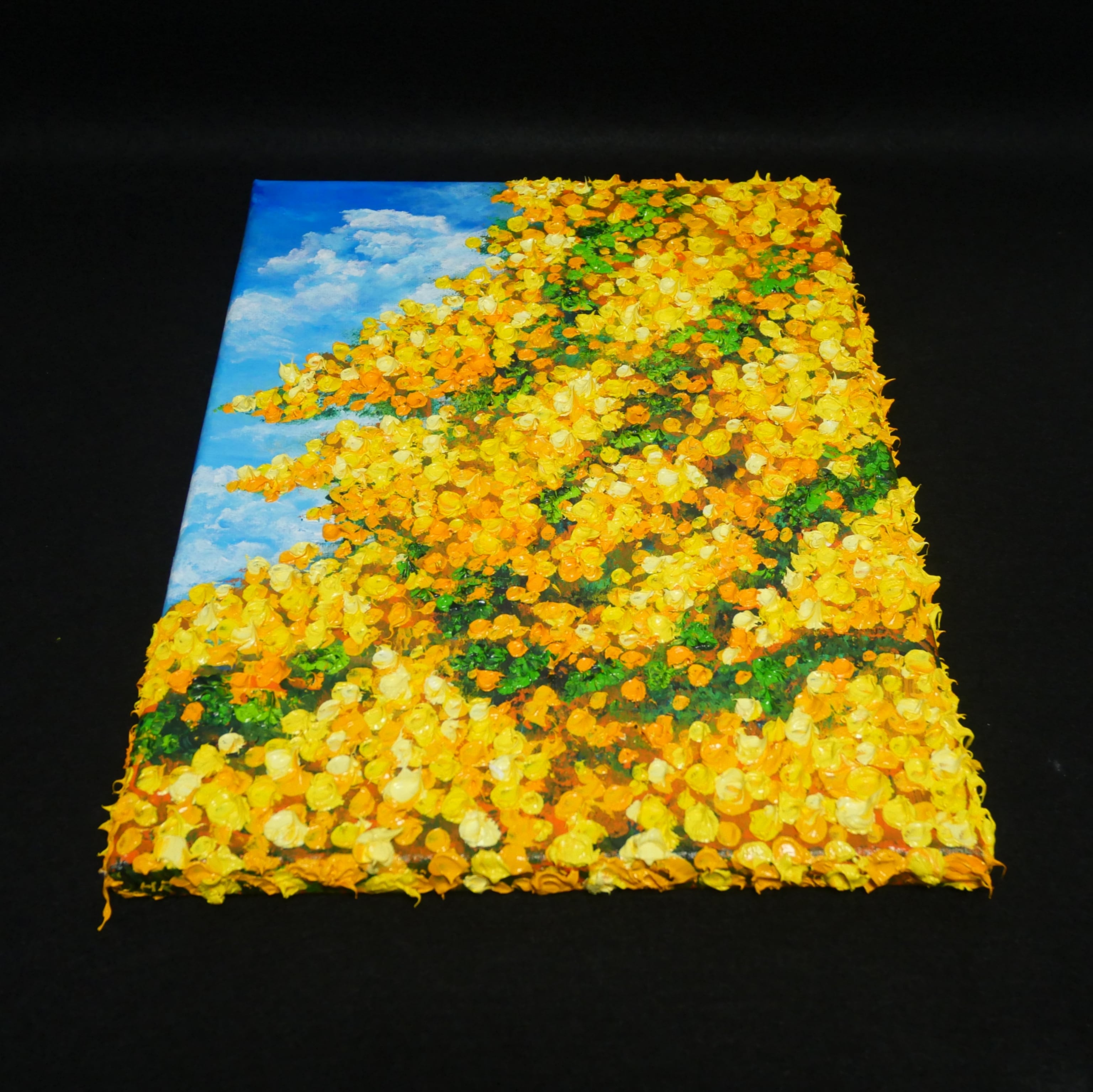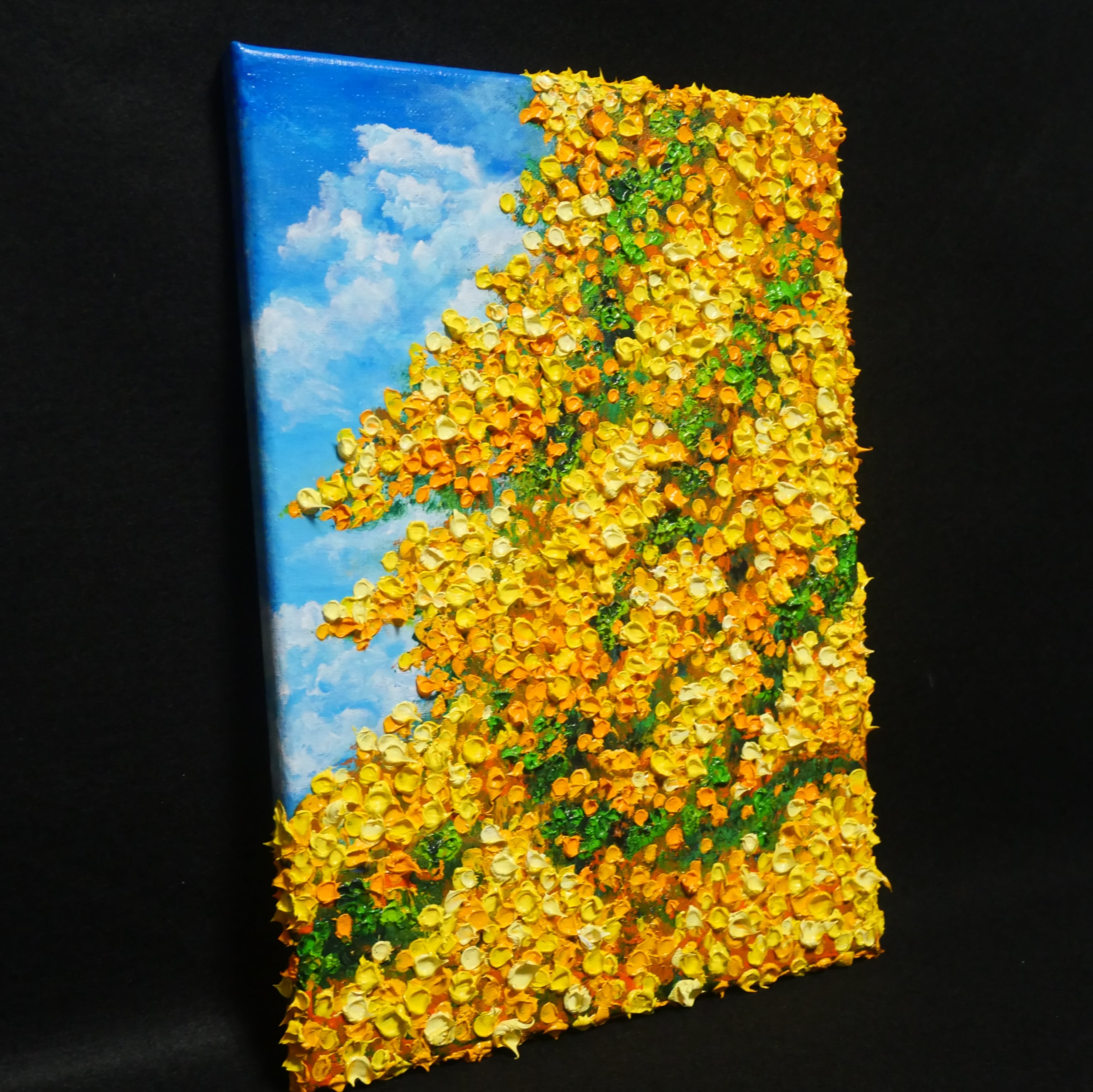 【作品名】:油絵【青空のミモザ】