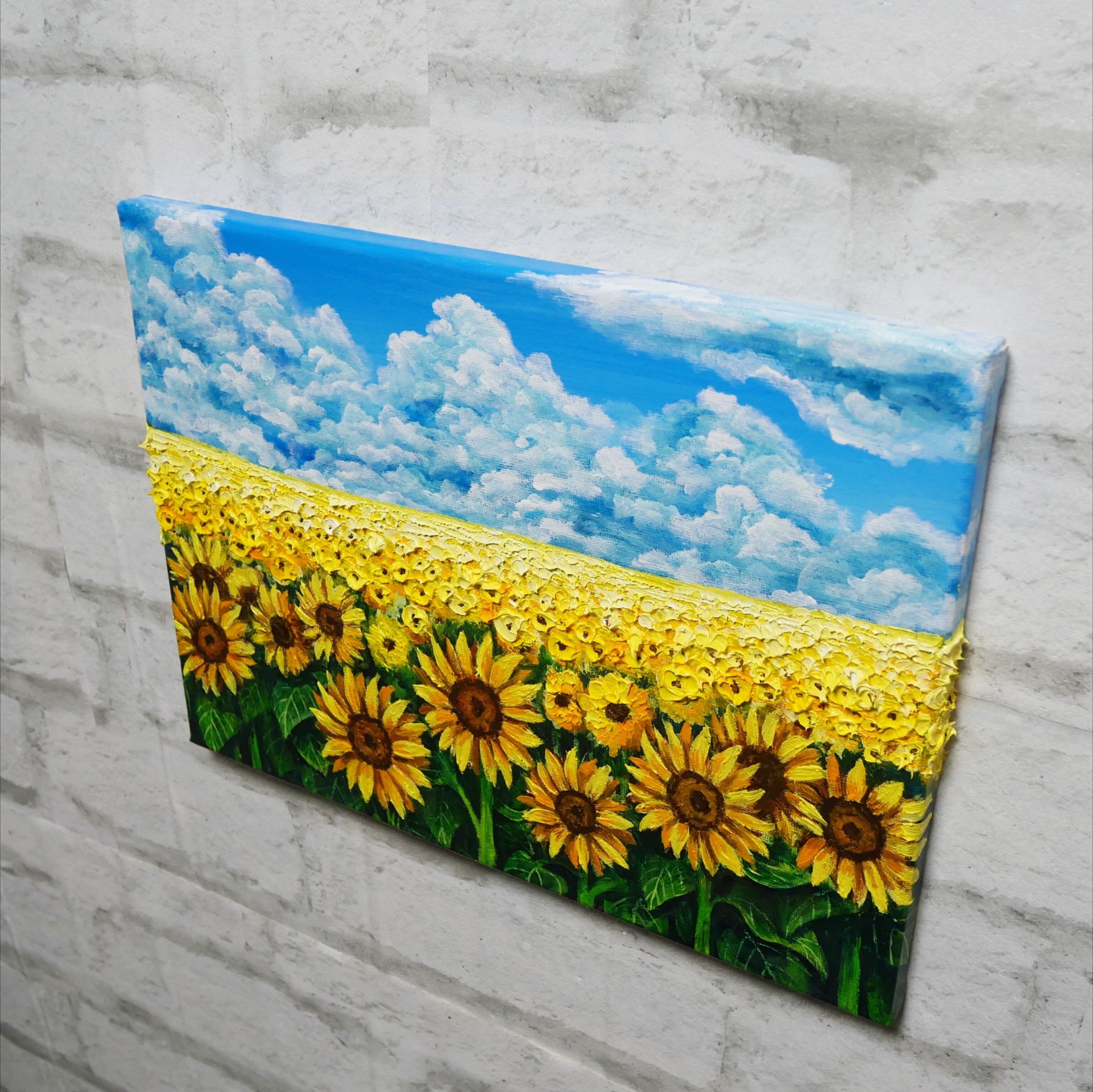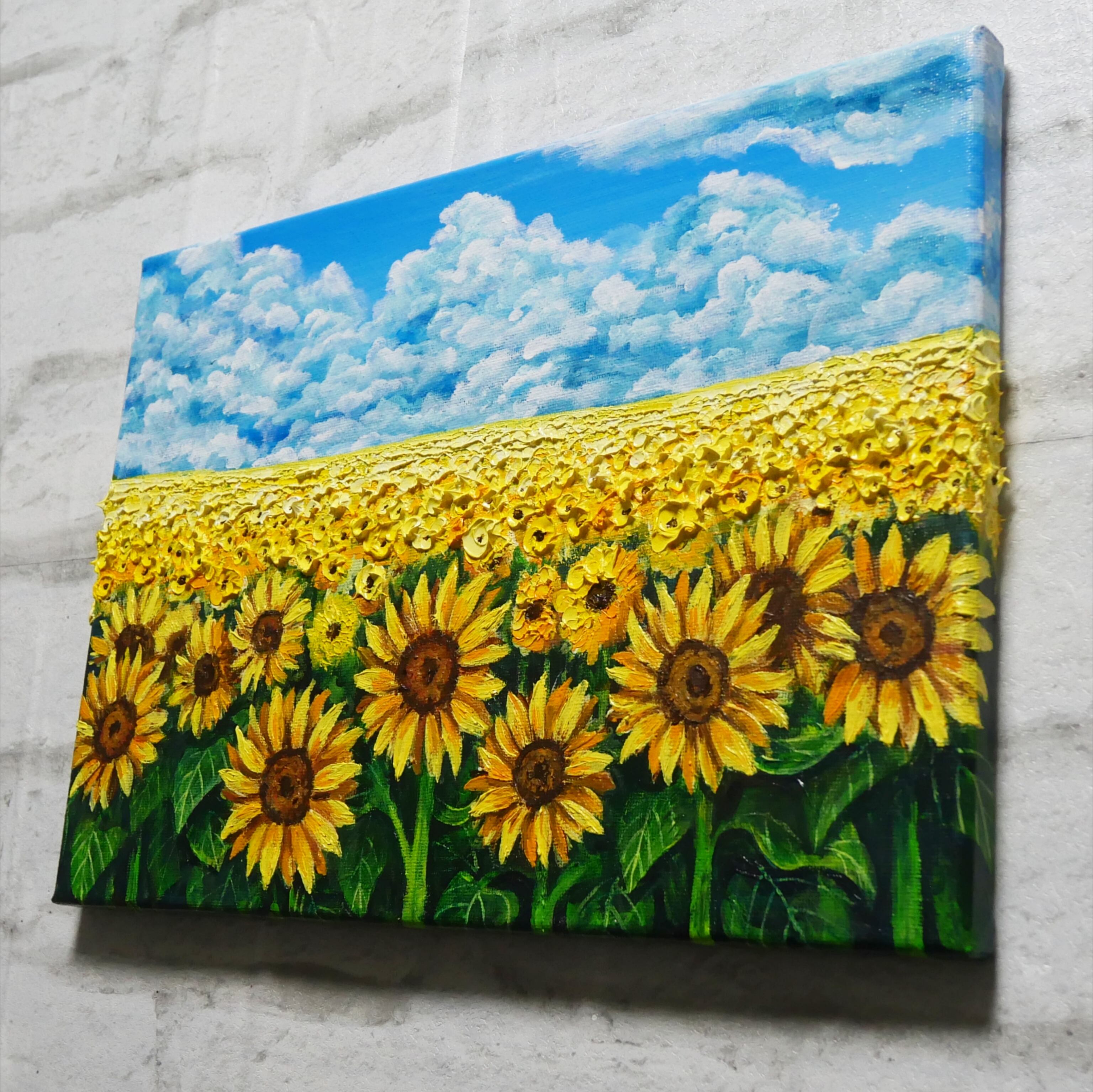 この作品と共に、夏の明るい日差しを感じ、心豊かなひとときをお楽しみいただけることを願っております。ひまわりの美しさを再現したこの油絵で、あなたの日常に癒しと活力を加えてみてはいかがでしょうか。