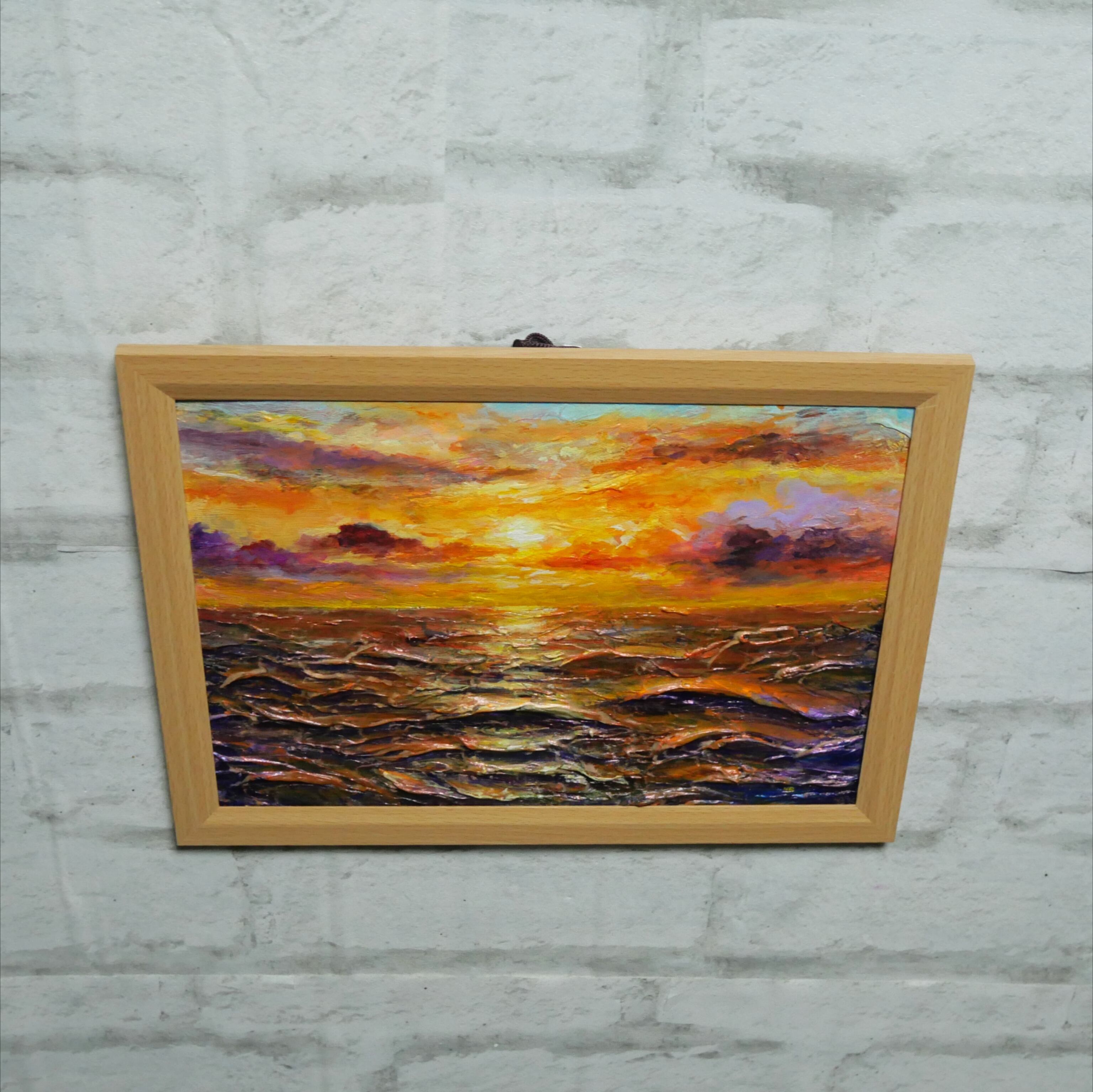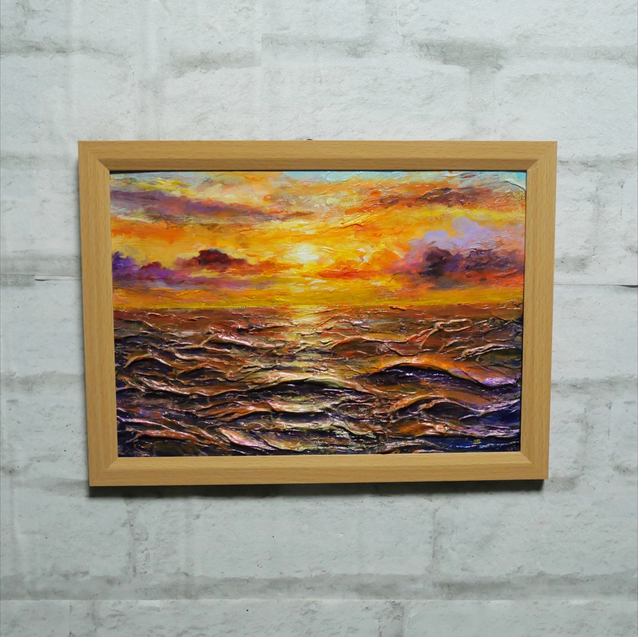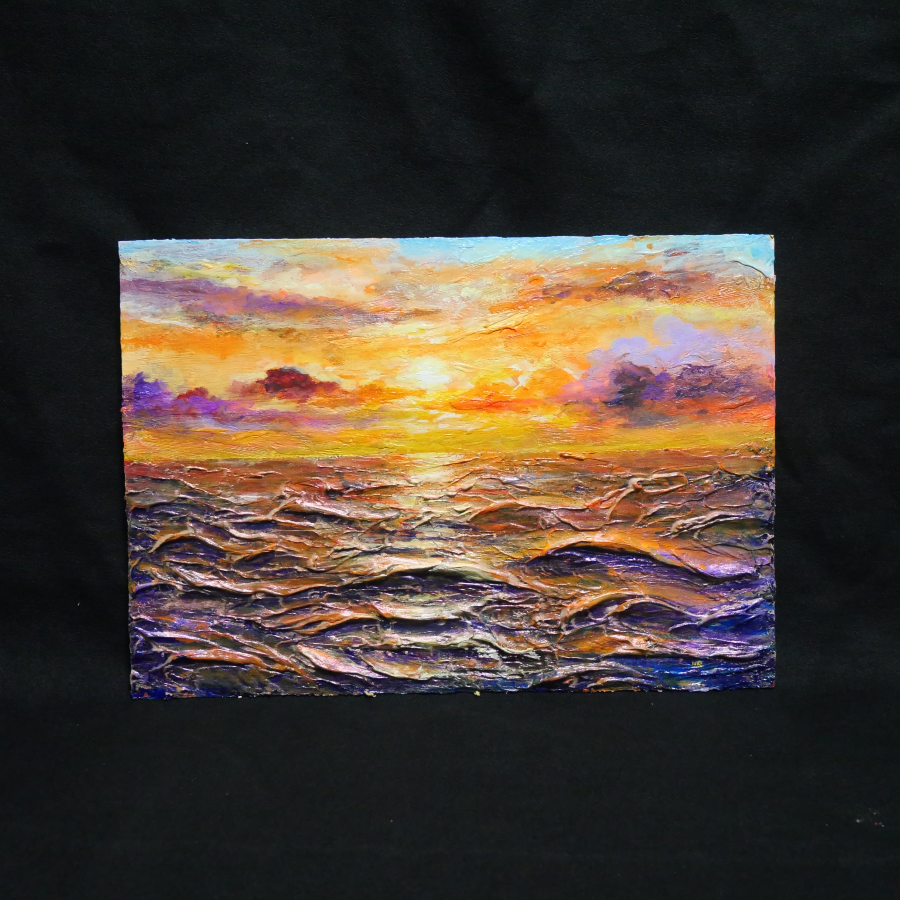 この作品が、お客様の日常に夕焼けの美しさをもたらし、心に残るひとときを楽しむきっかけとなることを願っています。この特別な油絵で、夕焼けと海の魅力を存分にお楽しみください。