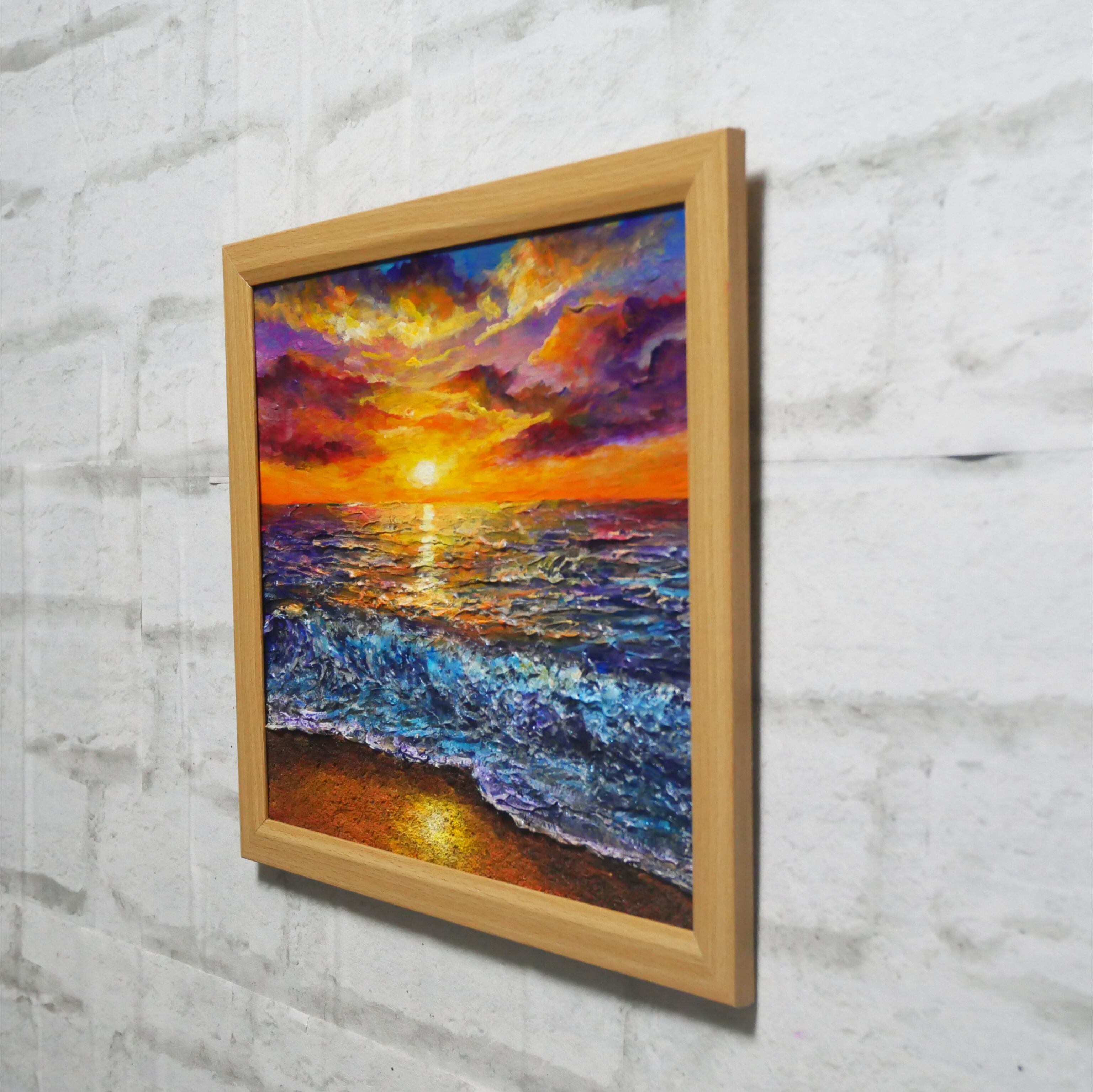 この作品が、お客様の日常に夕日の美しさをもたらし、特別なひとときを楽しむきっかけとなることを願っています。この特別な油絵で、心に残る夕景の魅力をたっぷりとお楽しみください。