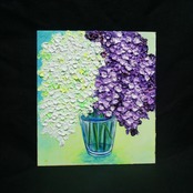 油絵 油彩 油彩画 絵 絵画 【白と紫のライラック】
