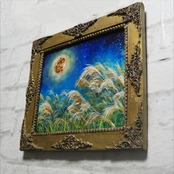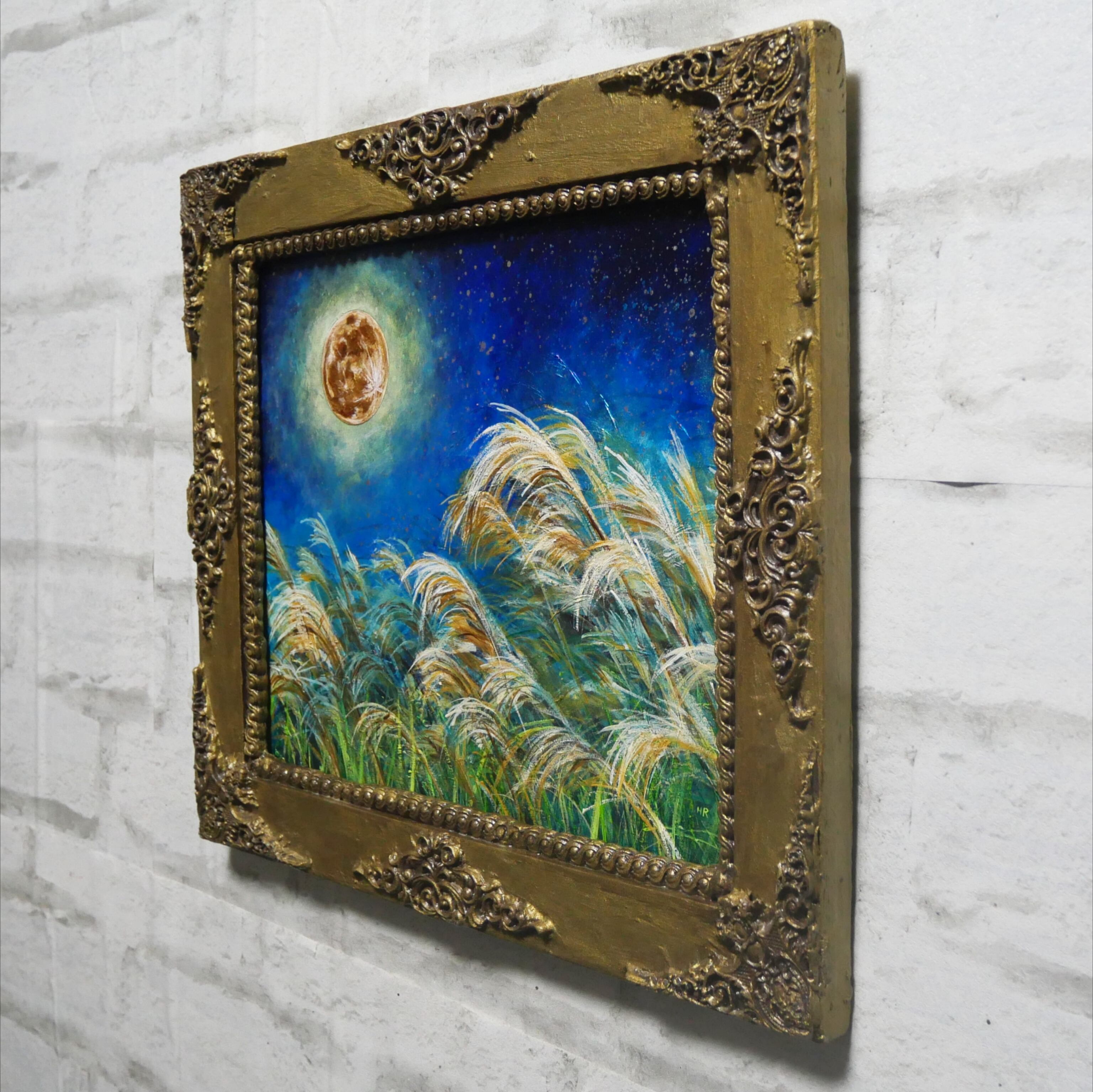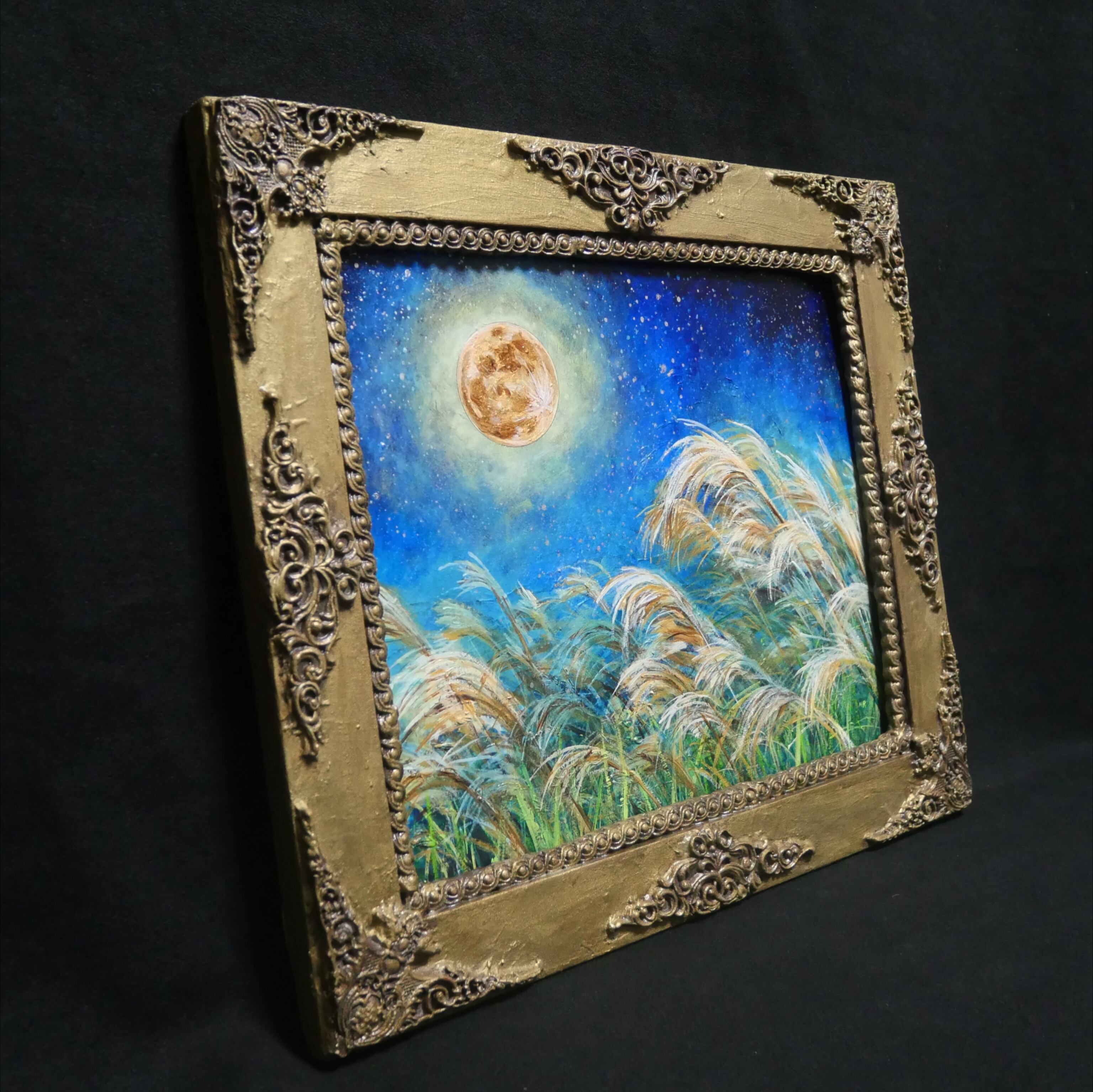 「十五夜」は、夜空に浮かぶ銀色の星々と、優雅に輝く黄金の満月、そして月の下に広がるススキ田んぼの美しい風景を描いた特別な油絵作品です。この作品は、お月見の日や十五夜の日にぴったりのアイテムで、見る人に特別なひとときをもたらし、心に温もりを感じさせてくれます。インテリアに季節感あふれる秋の情景を添え、お部屋を華やかに演出します。