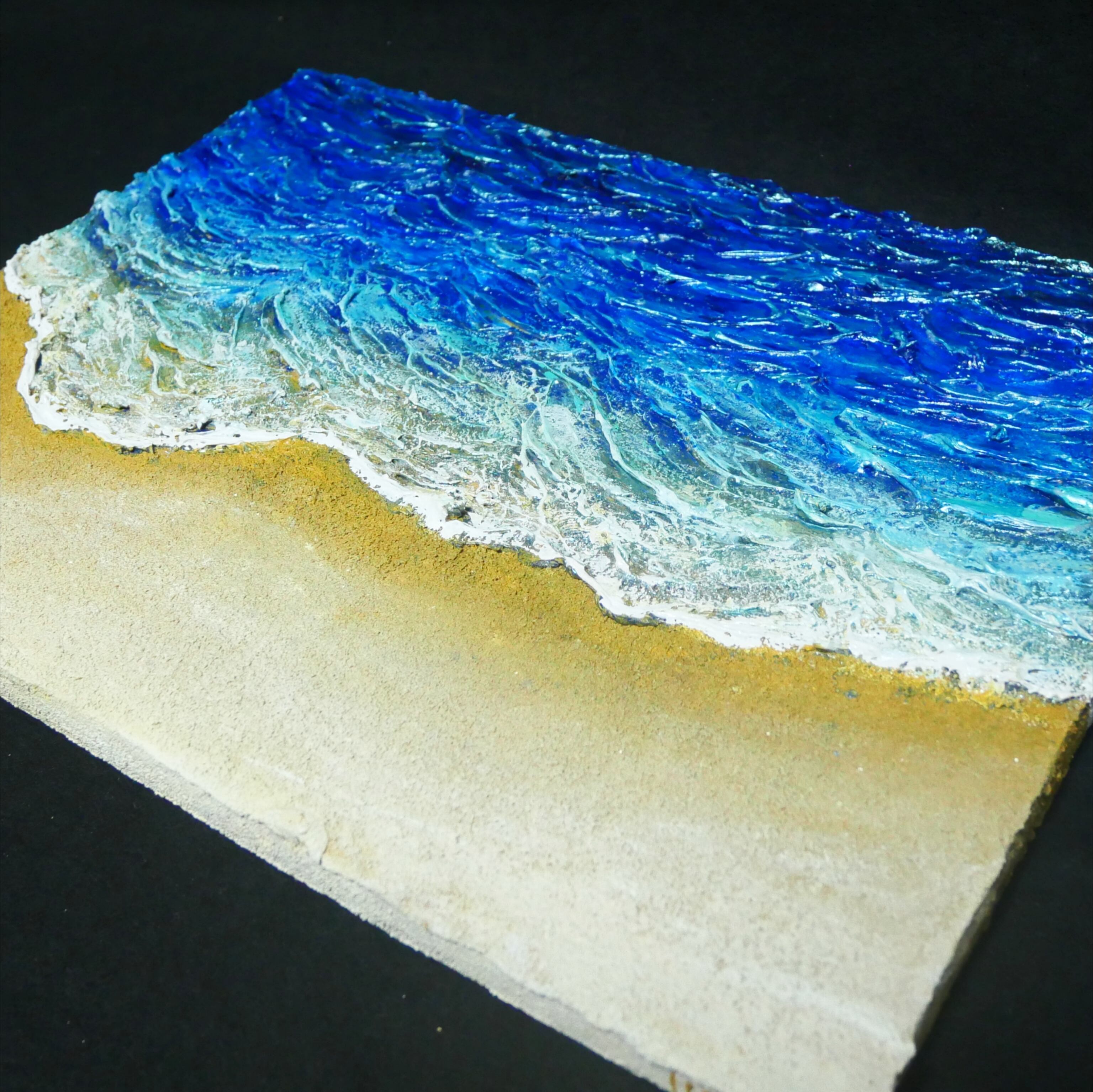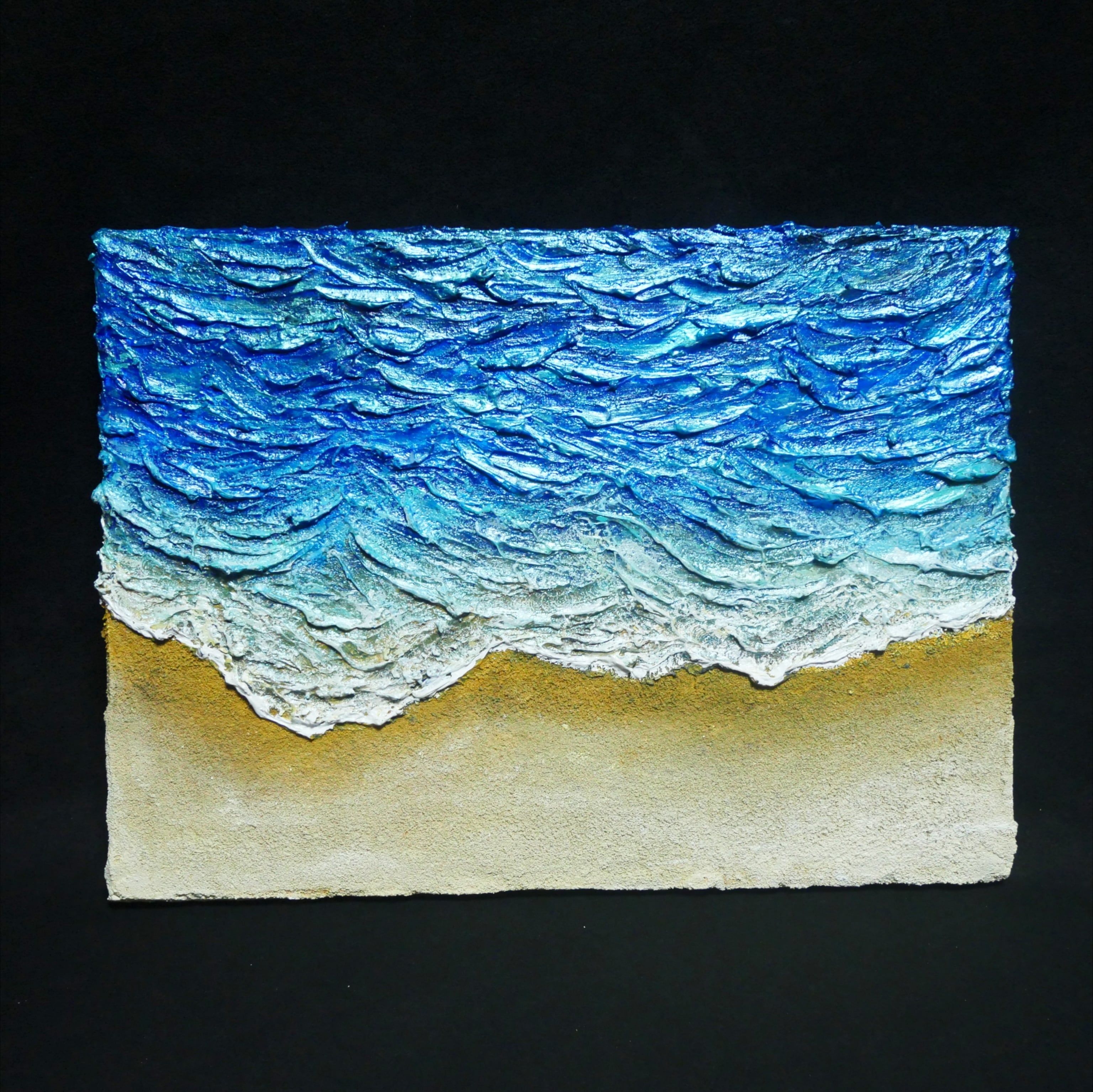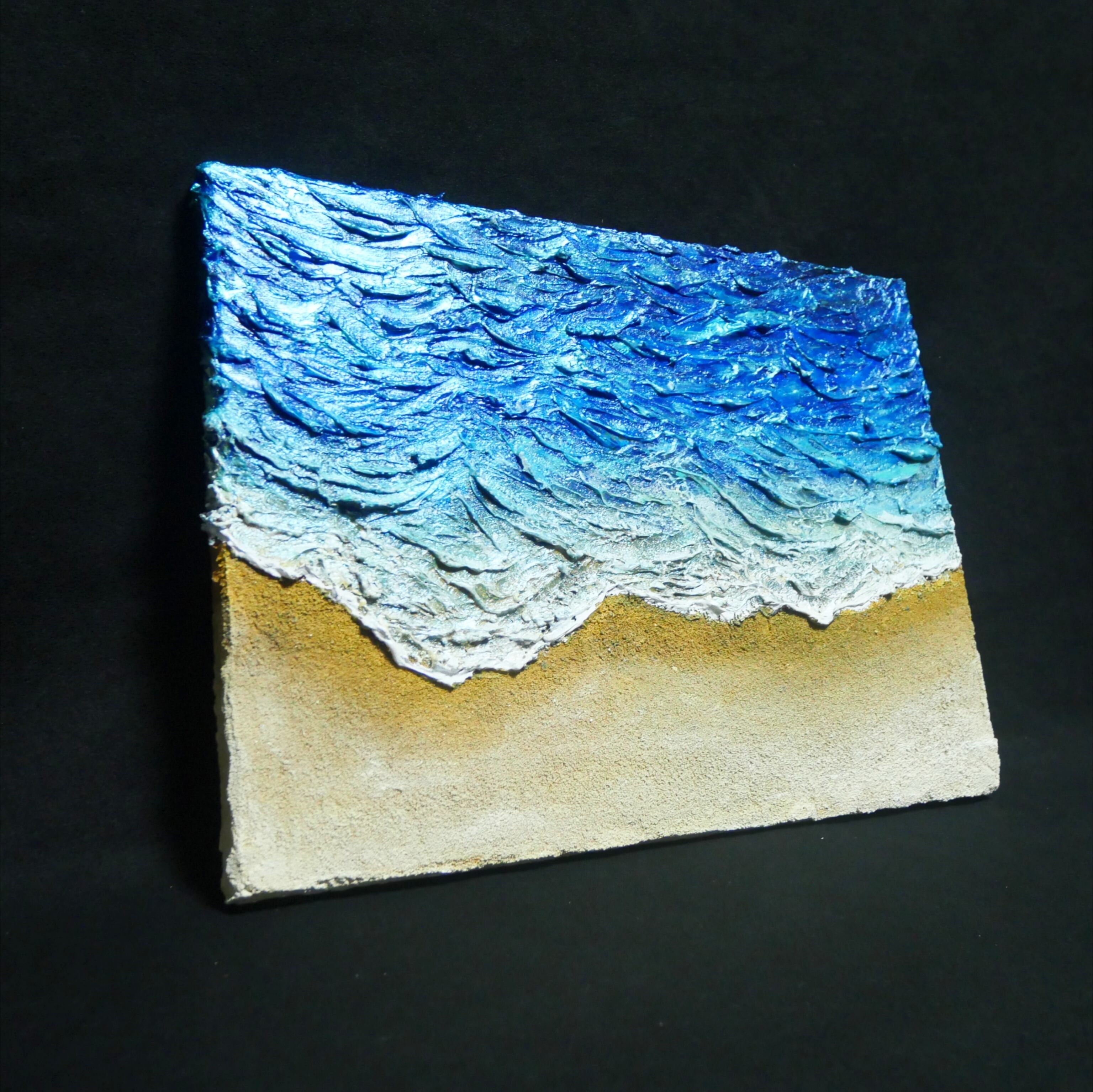 こちらの油絵は、F4号キャンバスを使用し、サイズは横333mm × 縦242mmで制作されています。高品質な油絵具【ホルベイン】や偏光顔料を用いており、10年後、100年後もその色合いが美しさを保ち続けることができます。「波と砂浜」は、大切な方への心温まる贈り物としても最適で、特別な瞬間を祝うための一品です。無料のラッピングサービスもご用意しておりますので、心を込めた贈り物としてもご満足いただけることでしょう。