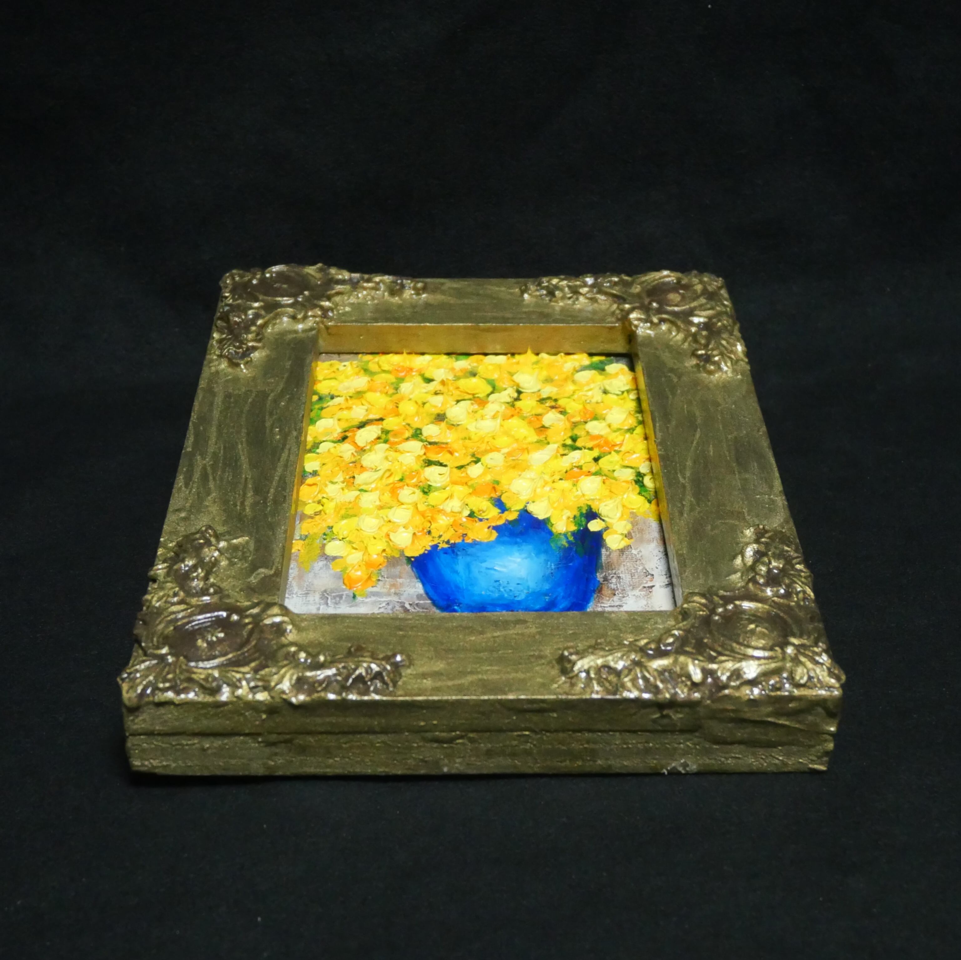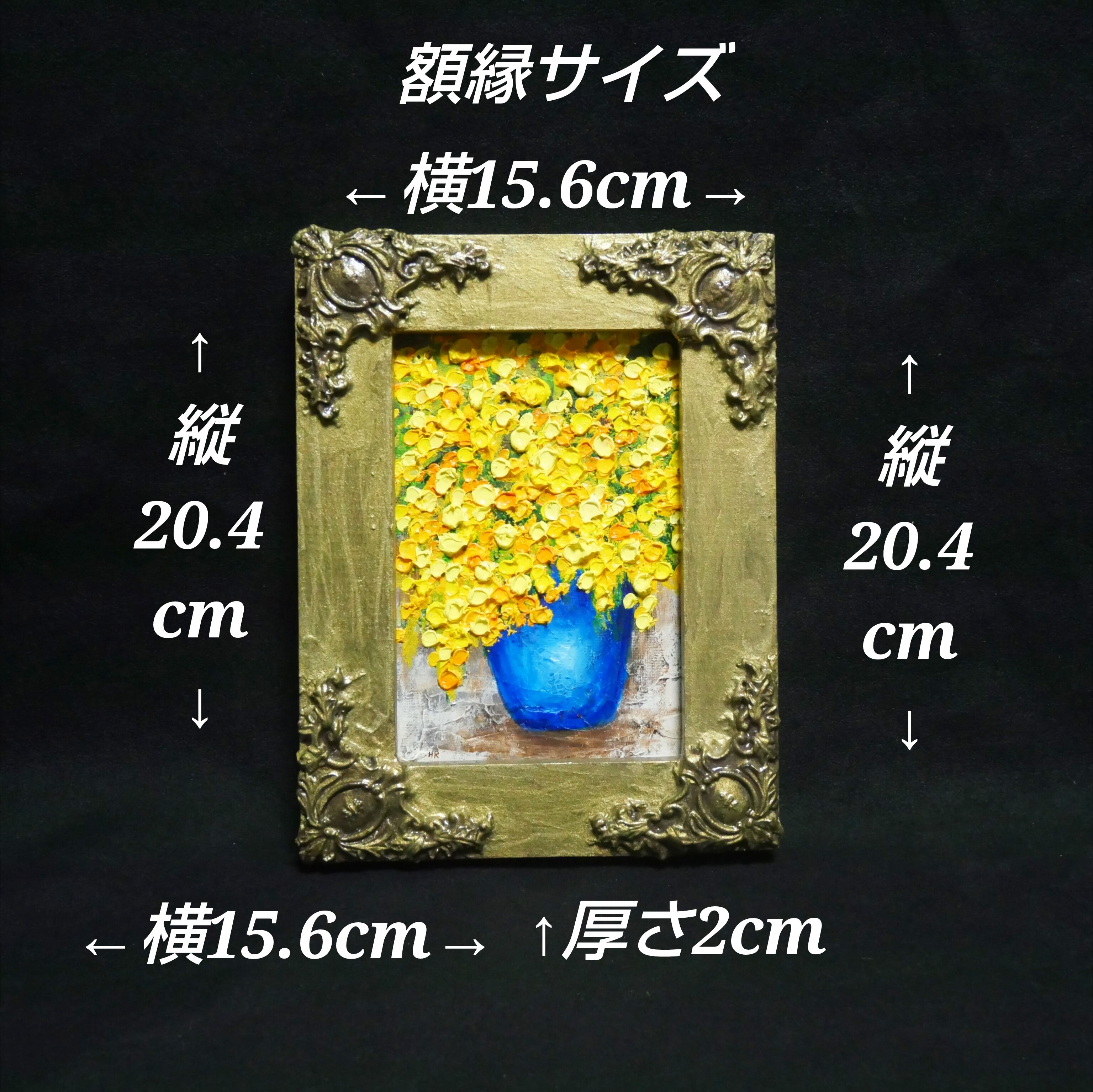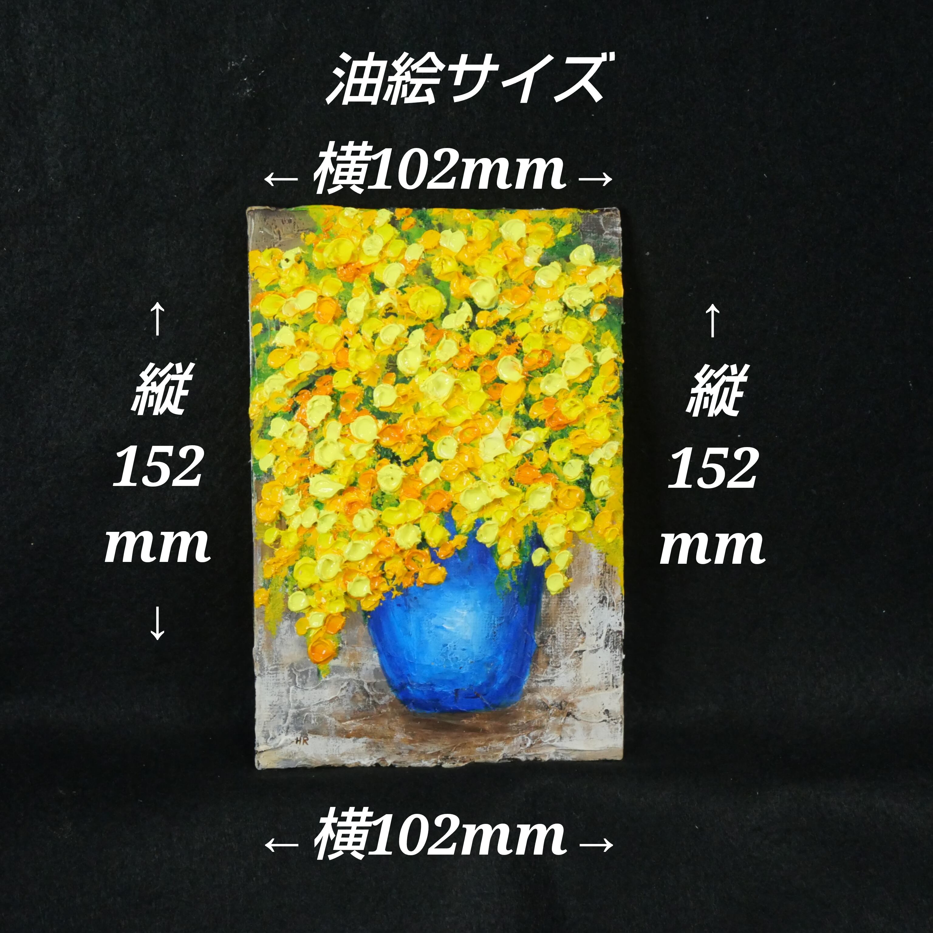 こちらの油絵は、縦152mm×横102mmのキャンバスパネルに、高級な油絵具【ホルベイン】を使用して描かれており、色合いは10年後、100年後もその美しさを保つことでしょう。「ミモザ」は、大切な方への贈り物にも最適で、特別な瞬間を祝うためのアイテムとしてきっと喜ばれることでしょう。心のこもった贈り物としてもご満足いただけるよう、無料のラッピングサービスをご用意しております。