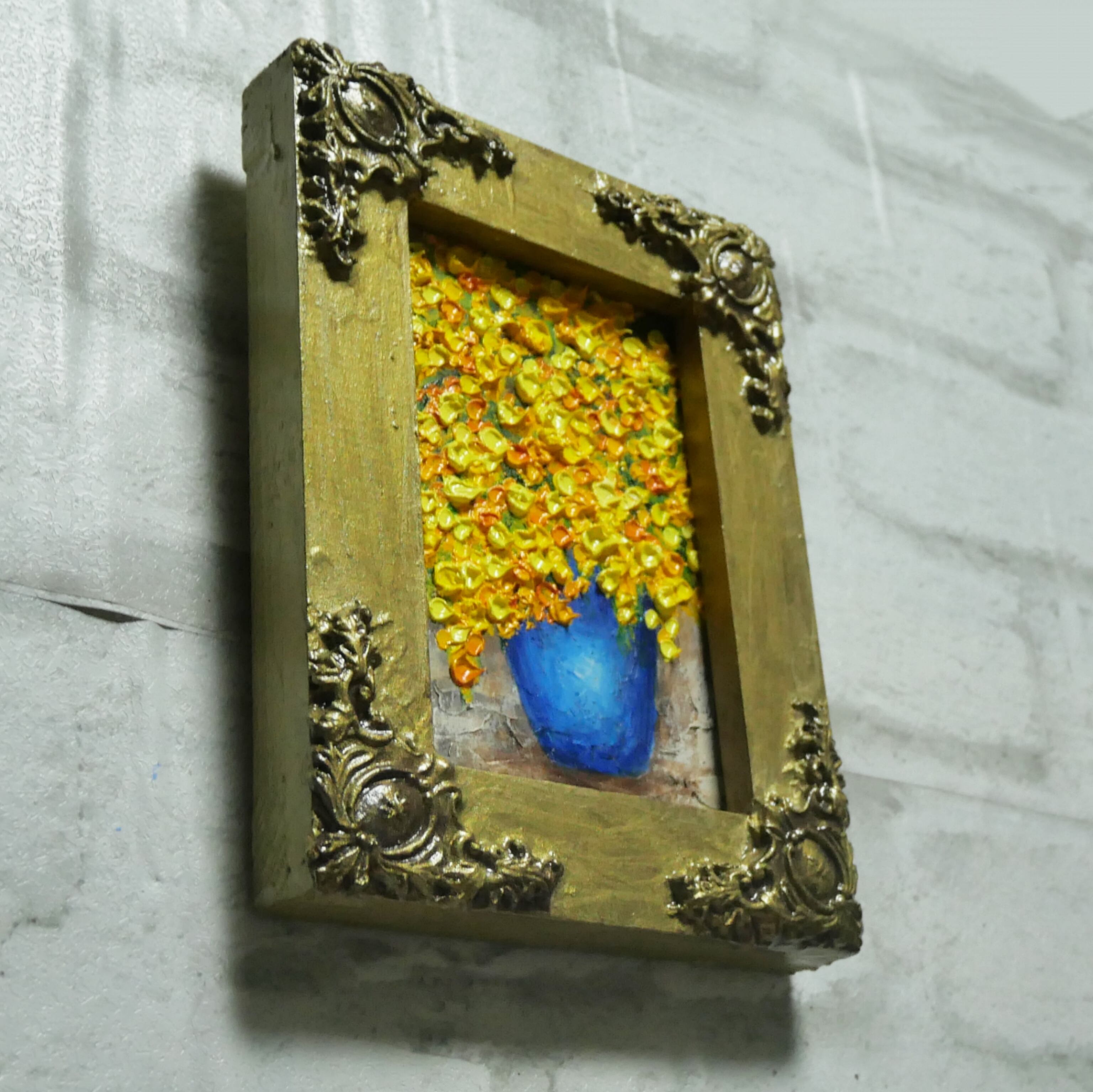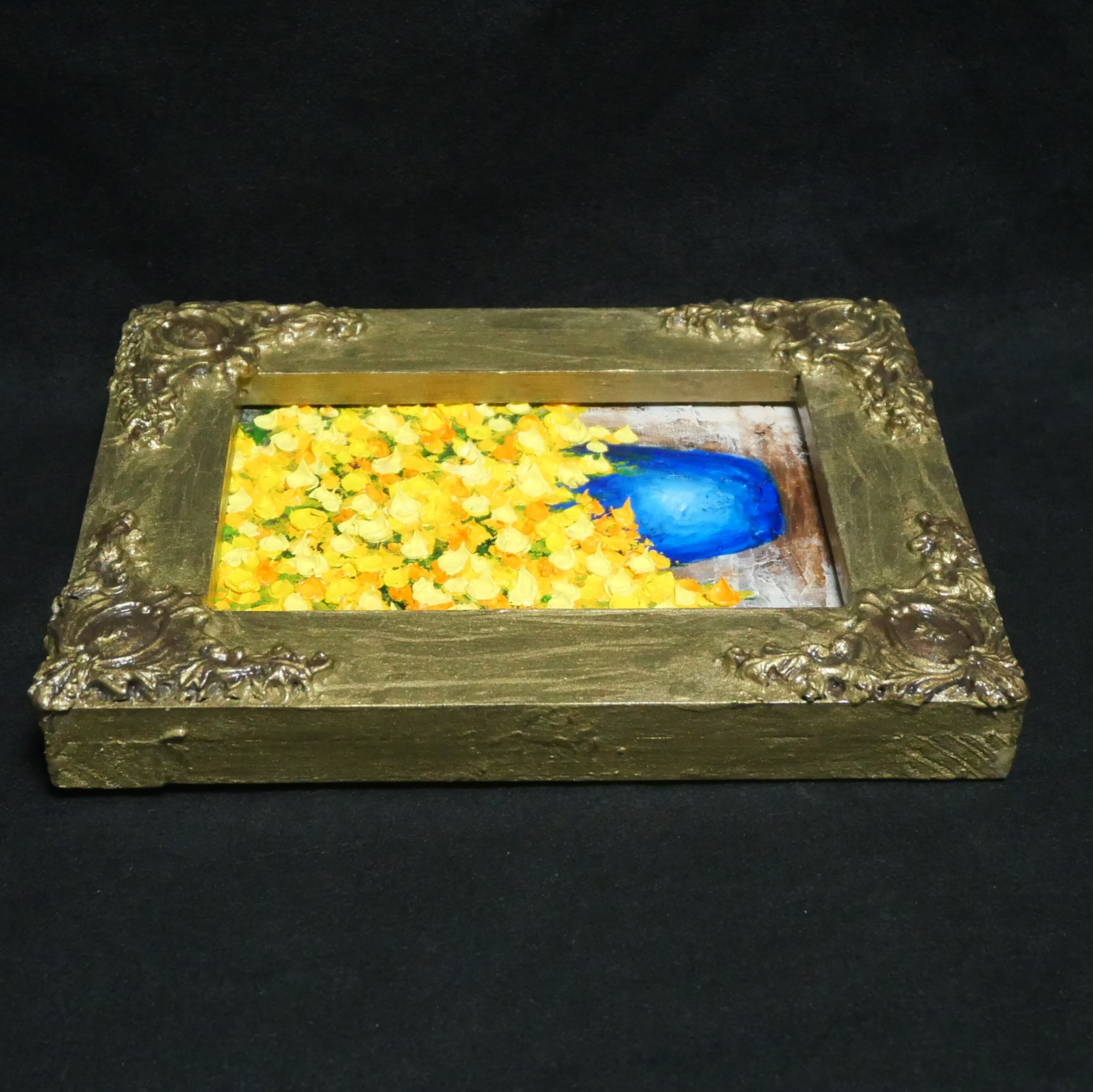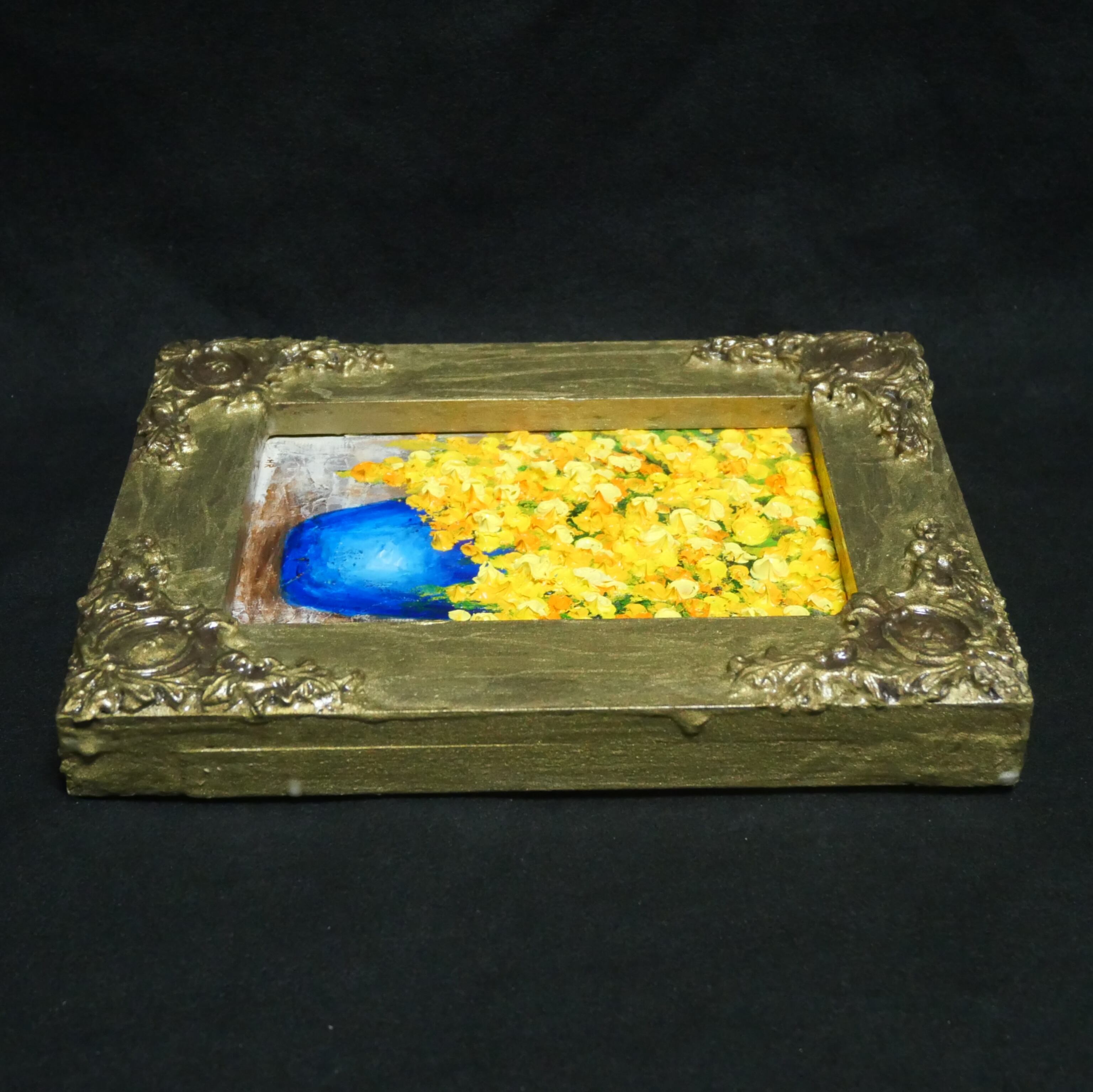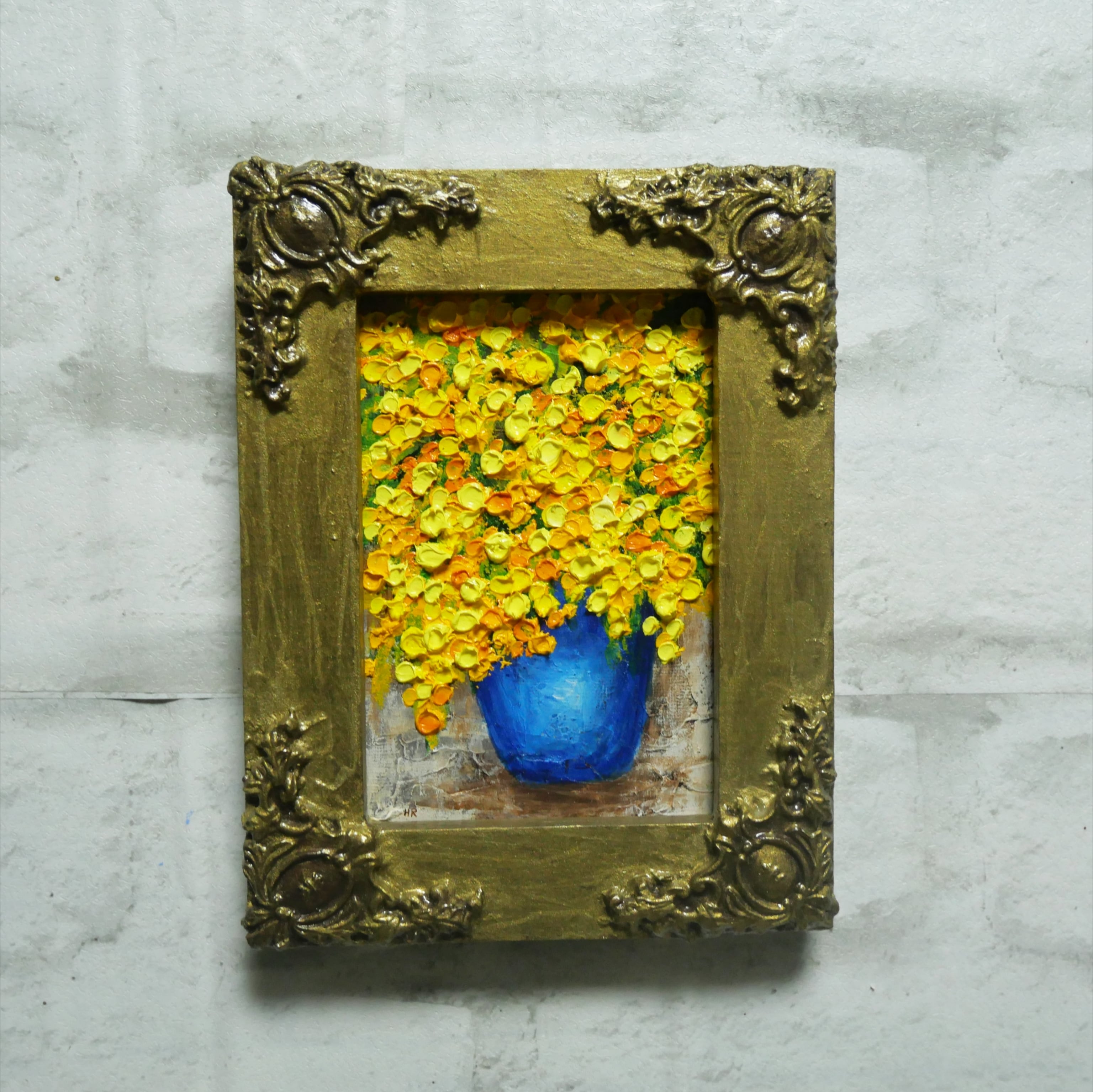 こちらの油絵は、縦152mm×横102mmのキャンバスパネルに、高級な油絵具【ホルベイン】を使用して描かれており、色合いは10年後、100年後もその美しさを保つことでしょう。「ミモザ」は、大切な方への贈り物にも最適で、特別な瞬間を祝うためのアイテムとしてきっと喜ばれることでしょう。心のこもった贈り物としてもご満足いただけるよう、無料のラッピングサービスをご用意しております。