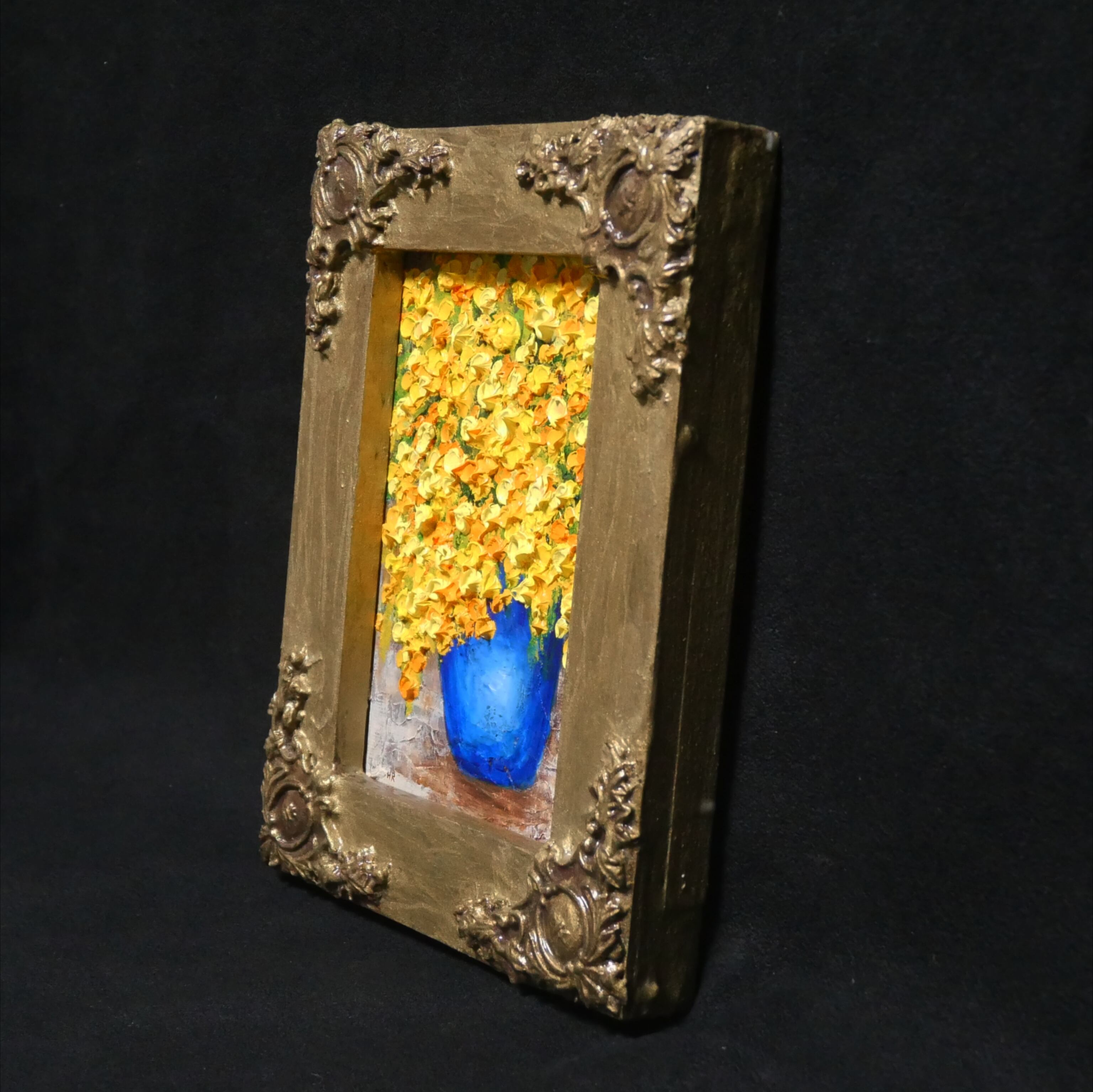 この特別な油絵が、お客様の日常に春の訪れと温もりを届け、心に残る特別なひとときを創出できることを願っております。ぜひ、この美しい「ミモザ」を手に取ってお楽しみください。