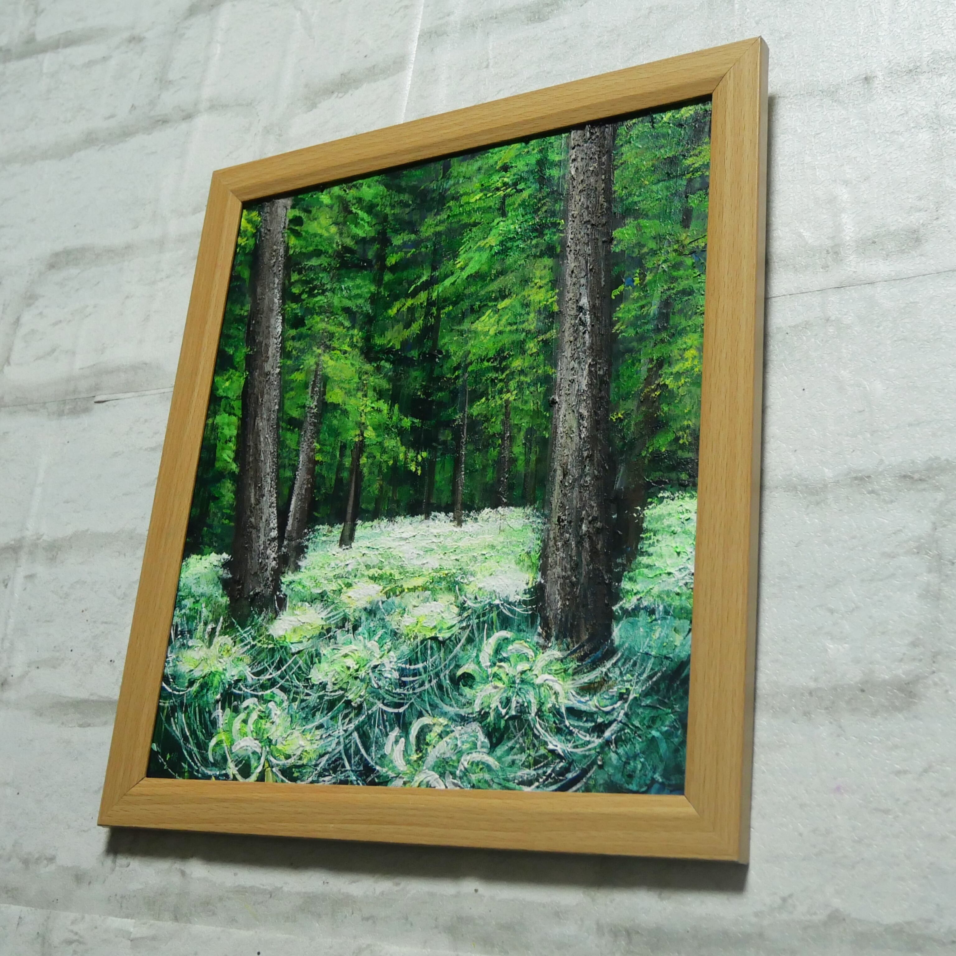 「白い彼岸花の森」は、静寂に包まれた森と木々、そして美しく咲く白い彼岸花の畑を描いた特別な油絵作品です。この作品は、彼岸花を愛する方々にぴったりで、見るたびに心が穏やかになり、お部屋に優雅で落ち着いた雰囲気を添えます。