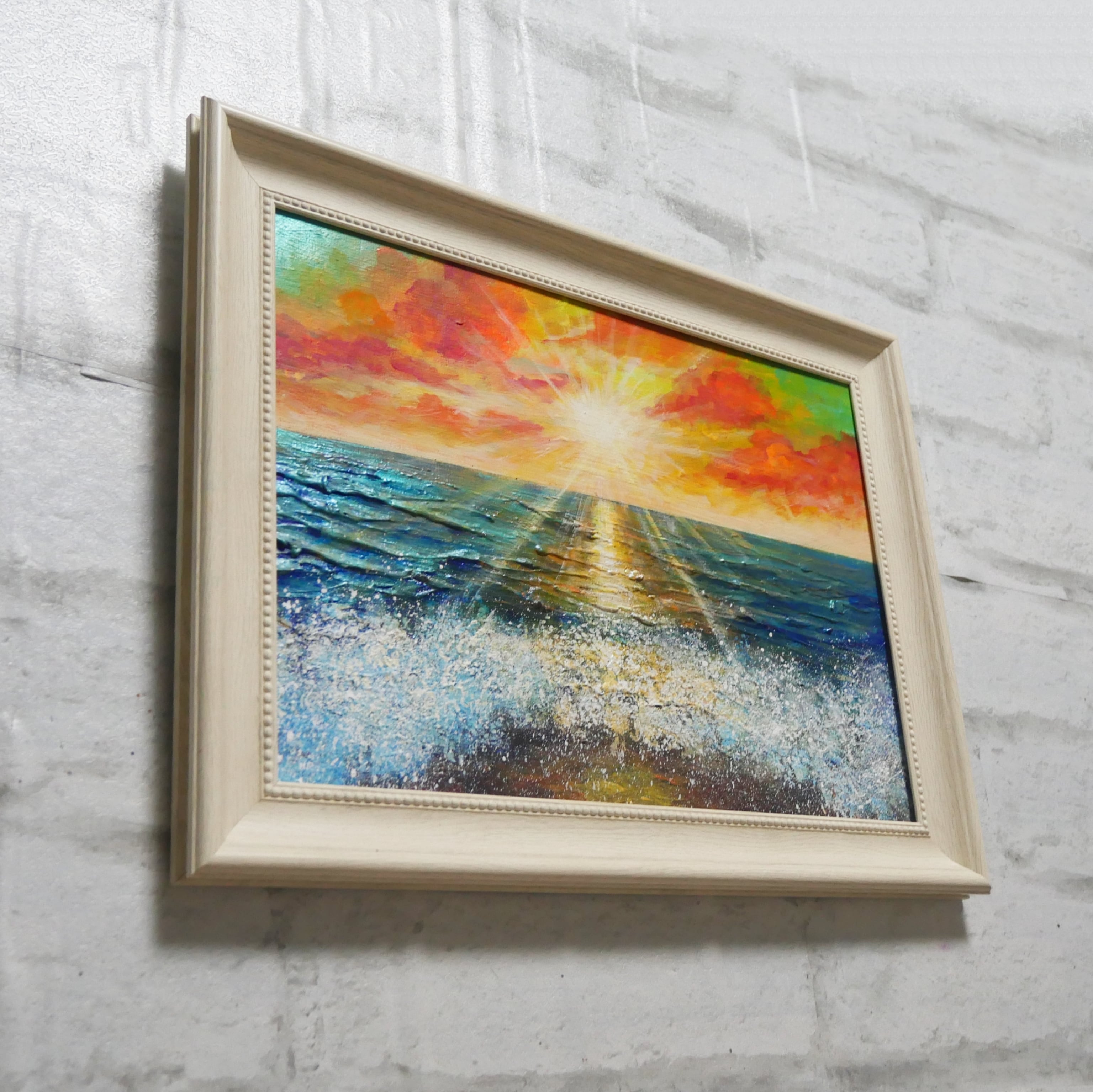 この特別な油絵が、お客様の日常に美しい風景をもたらし、心に残る特別なひとときを創出できることを願っております。ぜひ、この「癒しの朝焼けの海」を手に取ってお楽しみください。