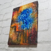 「夢幻の彼岸花」は、F4号キャンバスを用いた縦構図の作品で、現実には存在しない幻想的な青い彼岸花を描いた美しい油絵です。この作品は、青い彼岸花が好きな方に特におすすめで、見るたびに心が癒され、お部屋に独特の神秘的な雰囲気を醸し出します。