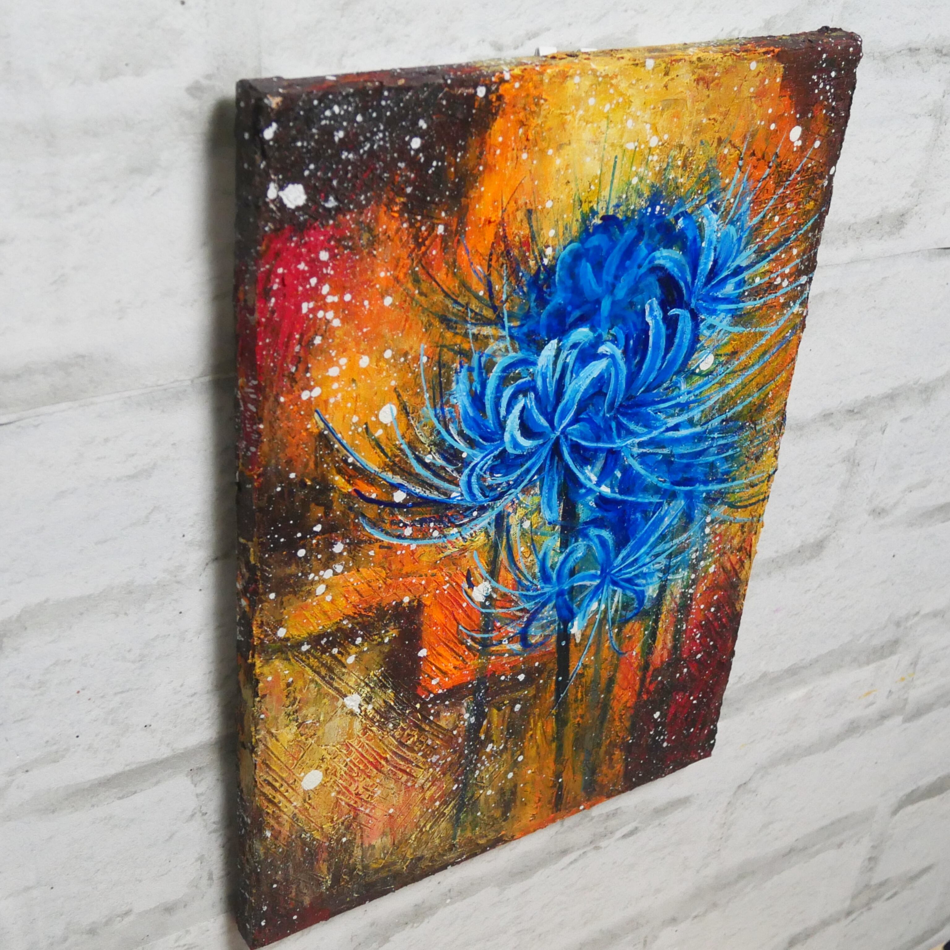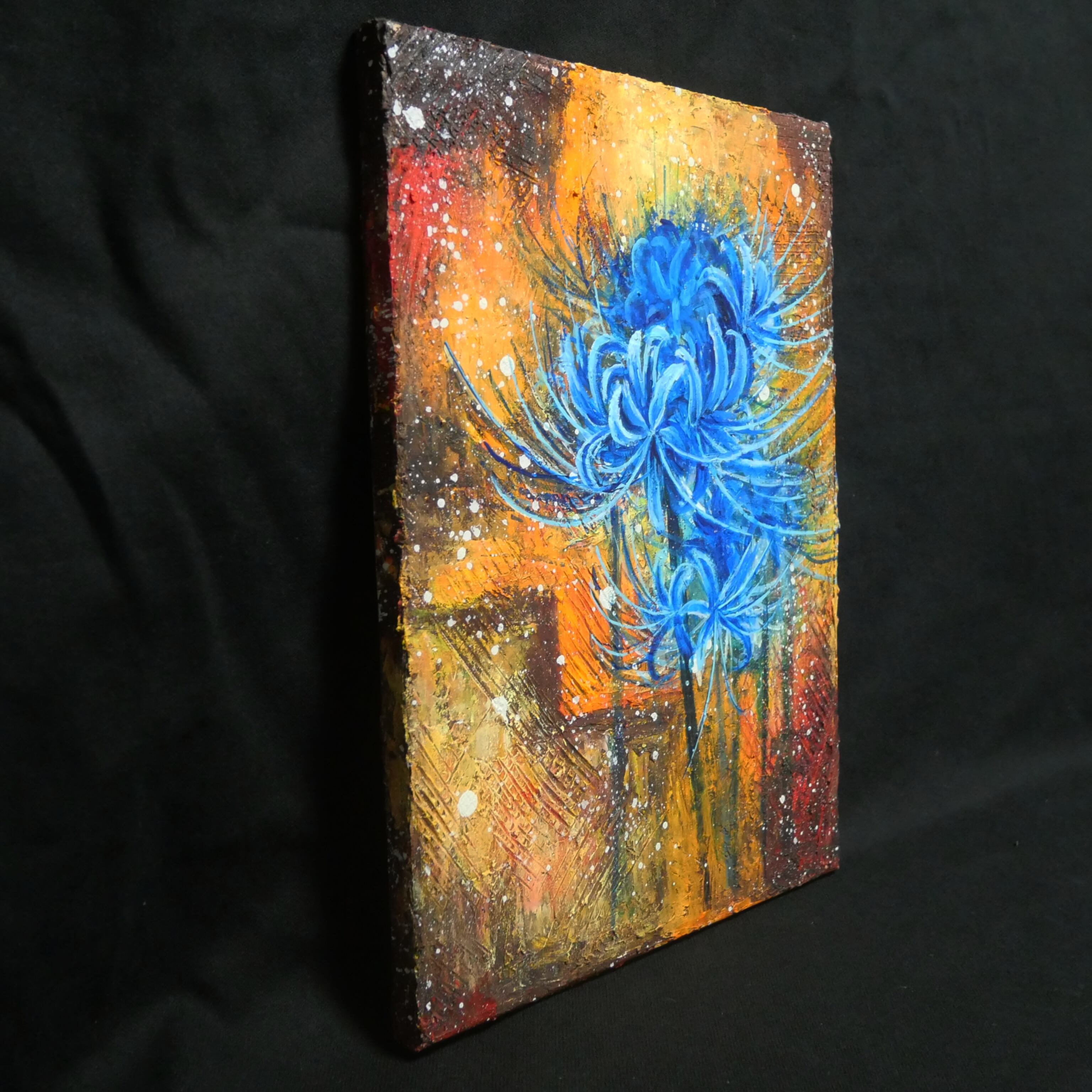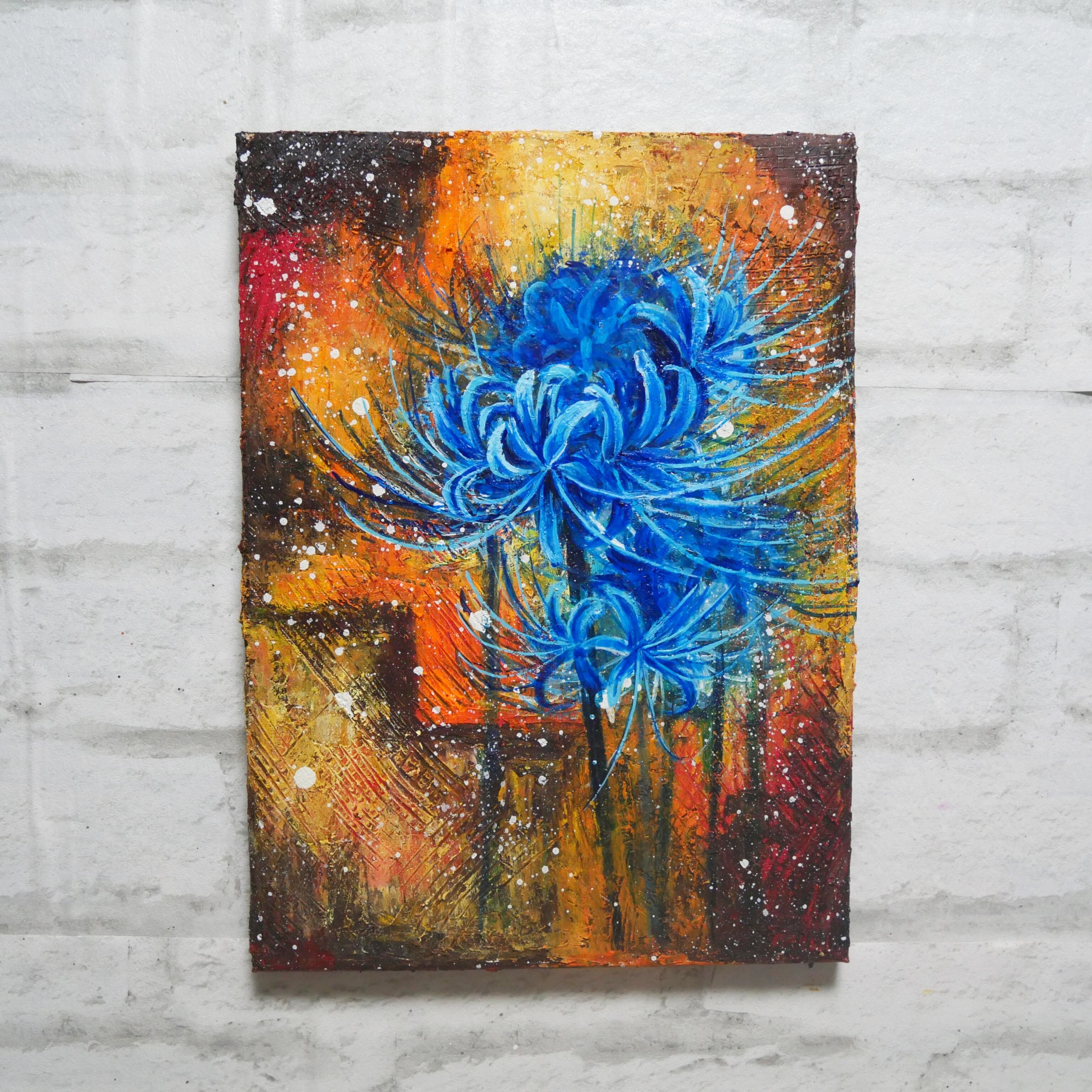 こちらの油絵は、縦333mm×横242mmのキャンバスに高級油絵具【ホルベイン】を使用しており、その美しい青色は時間が経っても変わることなくお楽しみいただけます。「夢幻の彼岸花」は、大切な方への贈り物や特別な瞬間を祝うアイテムとしても喜ばれることでしょう。特別なギフトをご希望の方には、無料のラッピングサービスもご用意しておりますので、心を込めた贈り物としてもご満足いただけます。