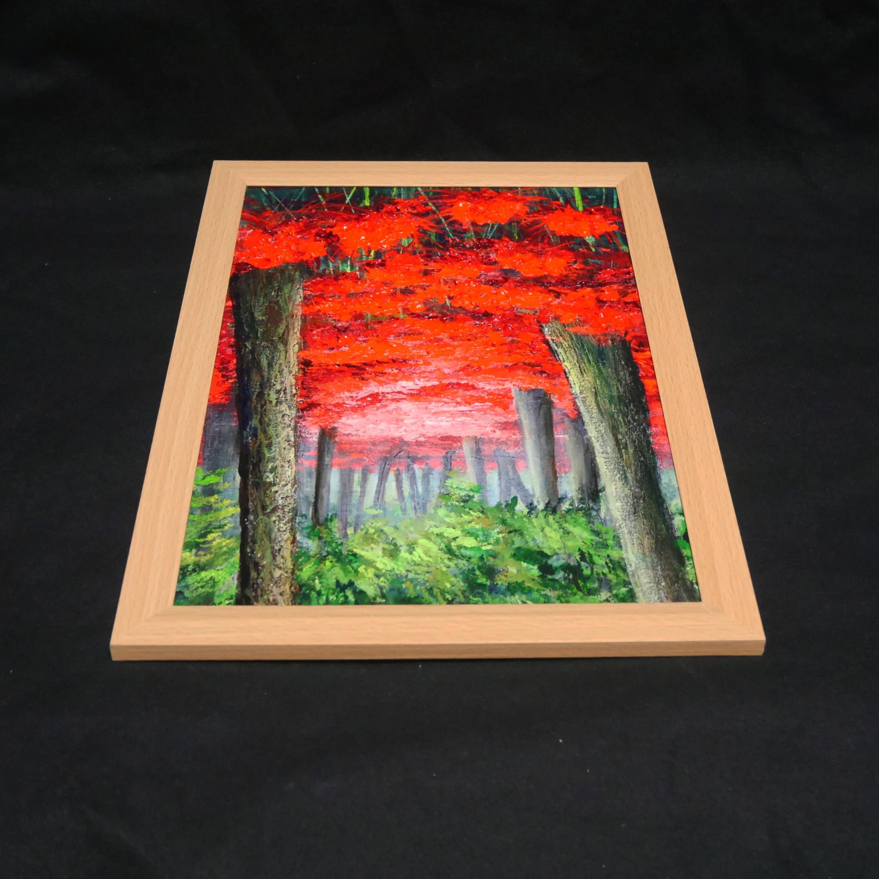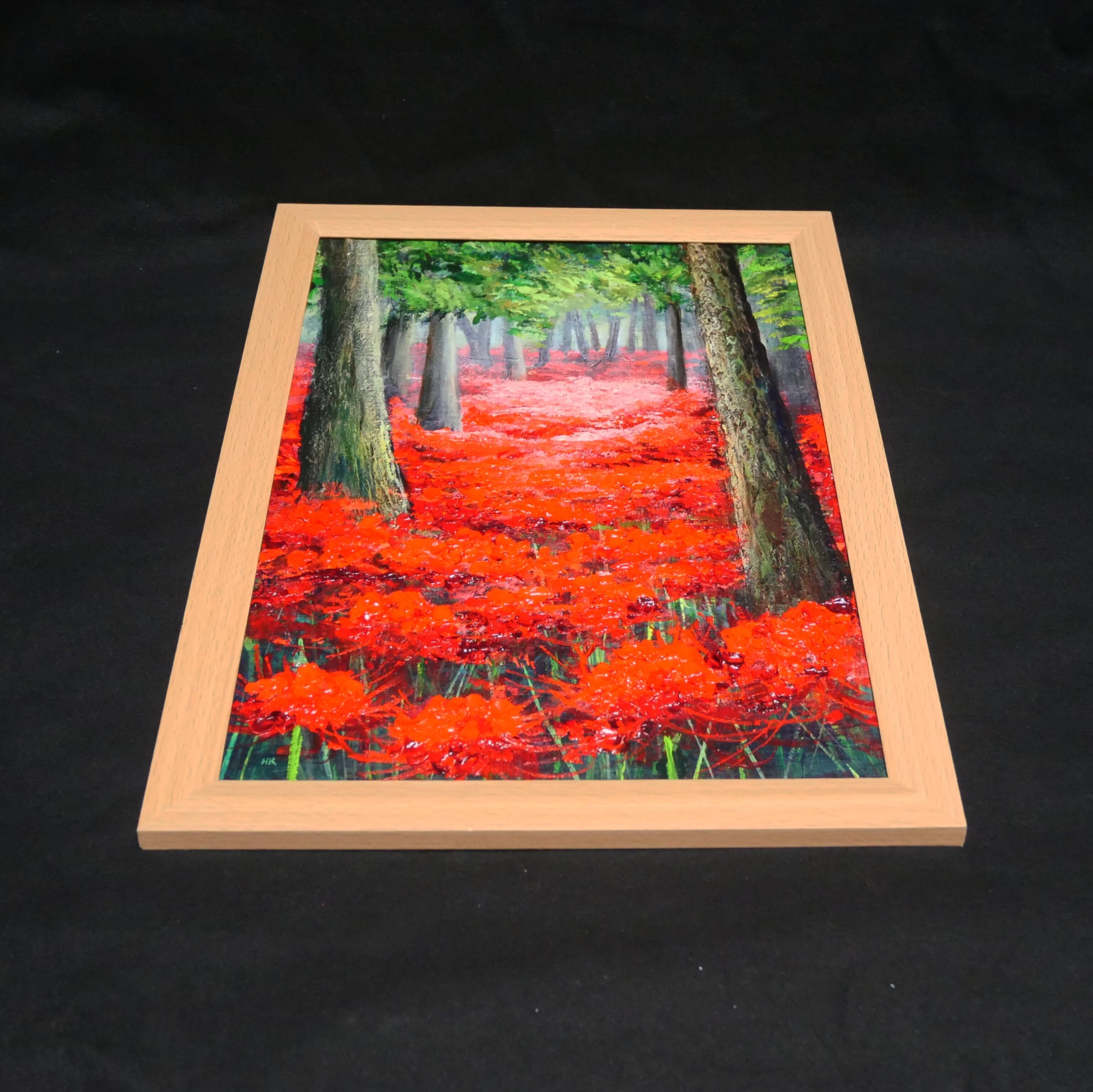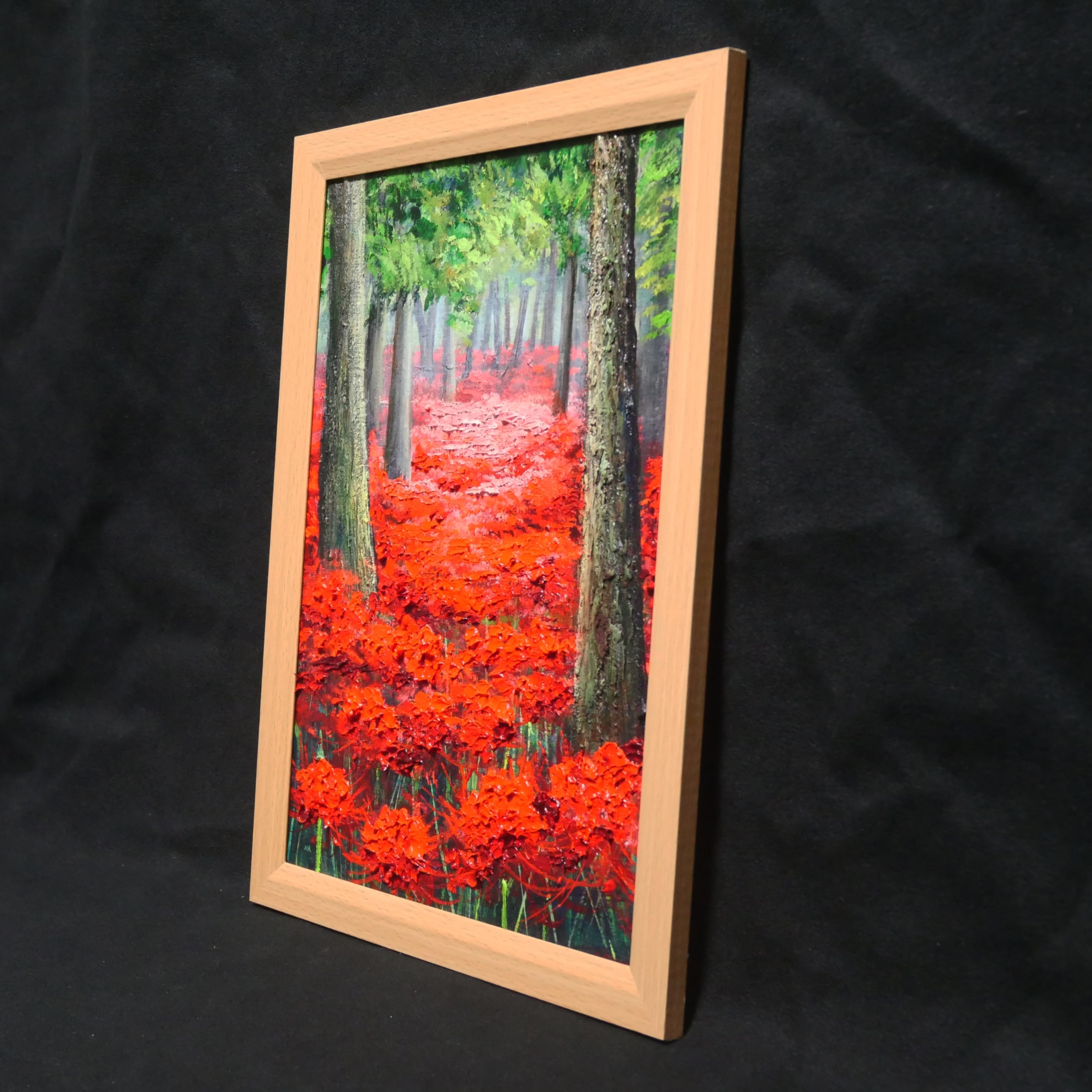 この特別な油絵が、お客様の日常に美しい情景をもたらし、心に残る特別なひとときを創出できることを願っております。ぜひ、この美しい「赤き曼珠沙華の記憶」を手に取ってお楽しみください。