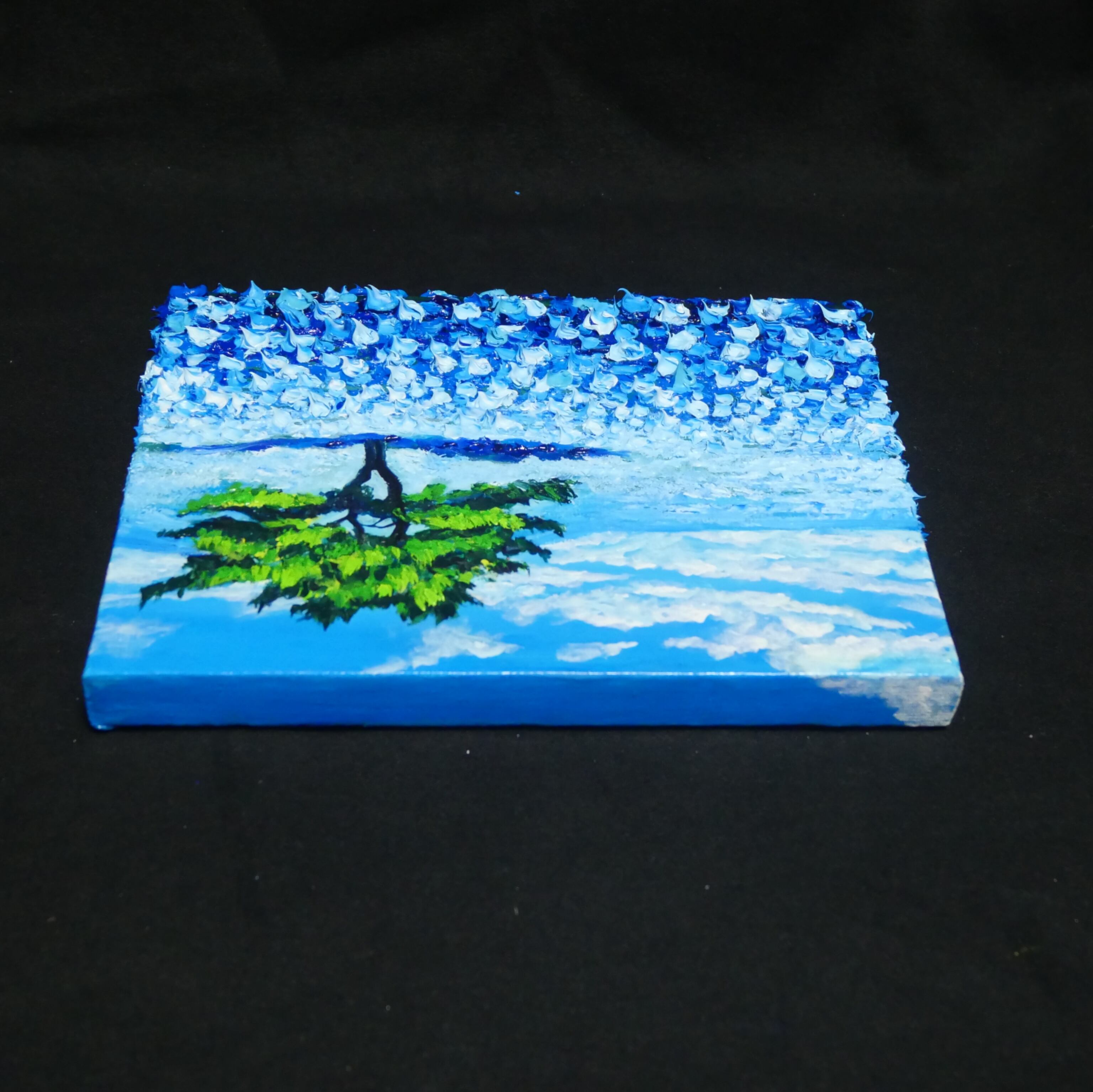 こちらの油絵は、F0号キャンバス(180mm×140mm)に高級油絵具【ホルベイン】を使用し、繊細な筆致で描かれています。「ネモフィラの丘」は、どんなインテリアにも調和し、特別な空間を演出するアイテムとして喜ばれることでしょう。訪れる人々に驚きと感動を与えつつ、心を癒す特別な作品としてお楽しみいただけます。
