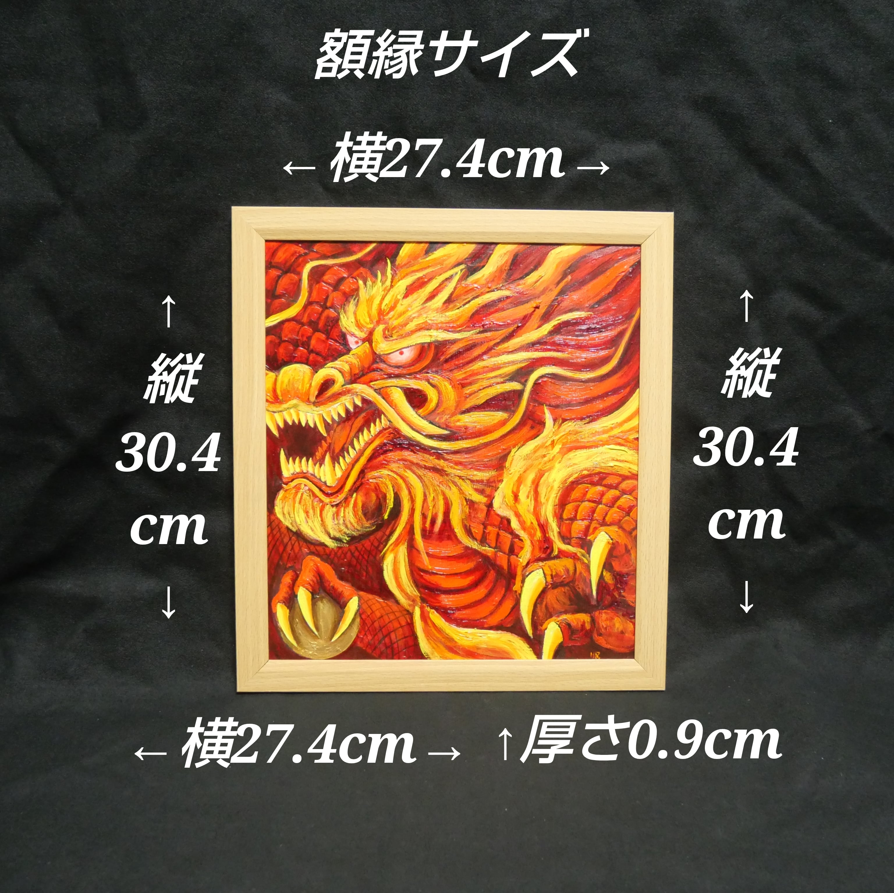 こちらの油絵は、縦272mm × 横242mm色紙に高級油絵具【ホルベイン】を使用し、細部に至るまで丁寧な筆致で描かれています。「紅炎の龍」は、その象徴的なモチーフが特別な空間を創出するアートとして適しています。お部屋のインテリアとして、また大切な人への贈り物としても喜ばれる一品です。