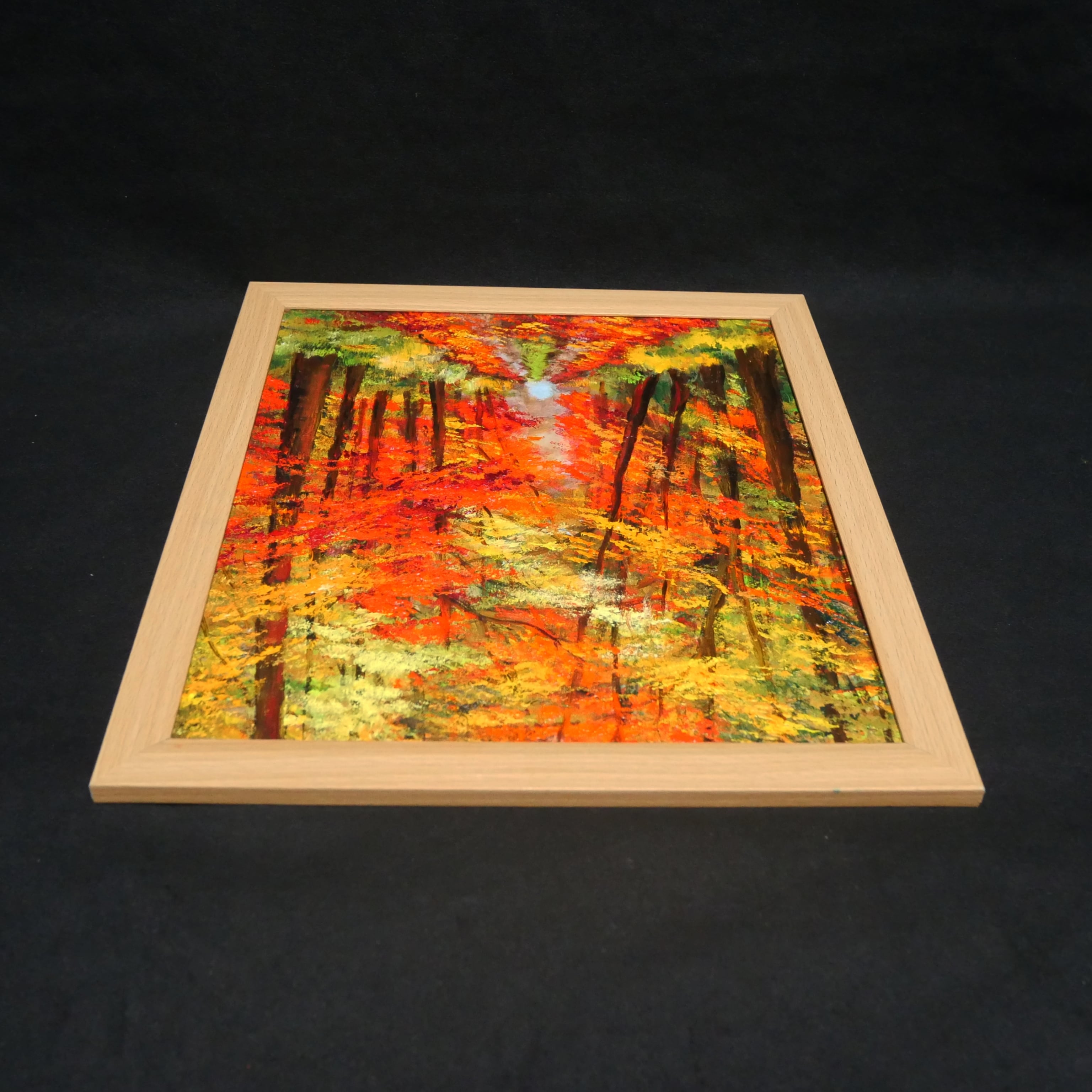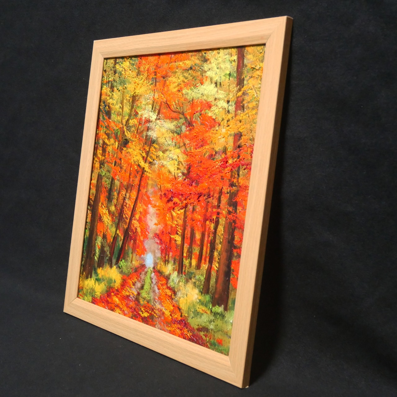 こちらの油絵は、縦272mm × 横242mmの色紙に高級油絵具【ホルベイン】を使用し、心を込めて描かれています。「紅葉の回廊」は、秋の芸術を通じて、特別な瞬間を彩る一品として、大切な方への贈り物にも最適です。この美しい作品が、お客様の生活空間に特別なひとときをもたらすことを願っています。