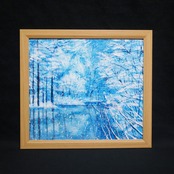 「白銀の世界」は、北海道・美瑛町にある幻想的な観光名所「青い池」をテーマにした特別な油絵作品です。冬の季節、雪に覆われた木々と白い池が織りなす光景は、まるで夢の中にいるかのような静寂と神秘に満ちています。この場所は人工的に作られた池で、白金地区の発電所の冷却水をためるために設けられました。白銀の世界では、雪化粧をまとった枯れ木が水面に優雅に映り込み、時間の流れが止まったかのような瞬間を体験できます。特に空気が澄み渡る朝には、霧が水面に立ち込め、思わず息をのむほどの美しい幻想的な雰囲気を醸し出します。