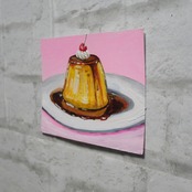 「プリン」は、甘美なデザートであるプリンをテーマにした特別な油絵作品です。ピンク色の背景に、白い皿の上でさくらんぼとホイップクリームと共に描かれたプリンは、優雅でありながら愛らしい雰囲気を醸し出しています。この作品を飾ることで、心温まるひとときや、甘い幸せを感じることができることでしょう。