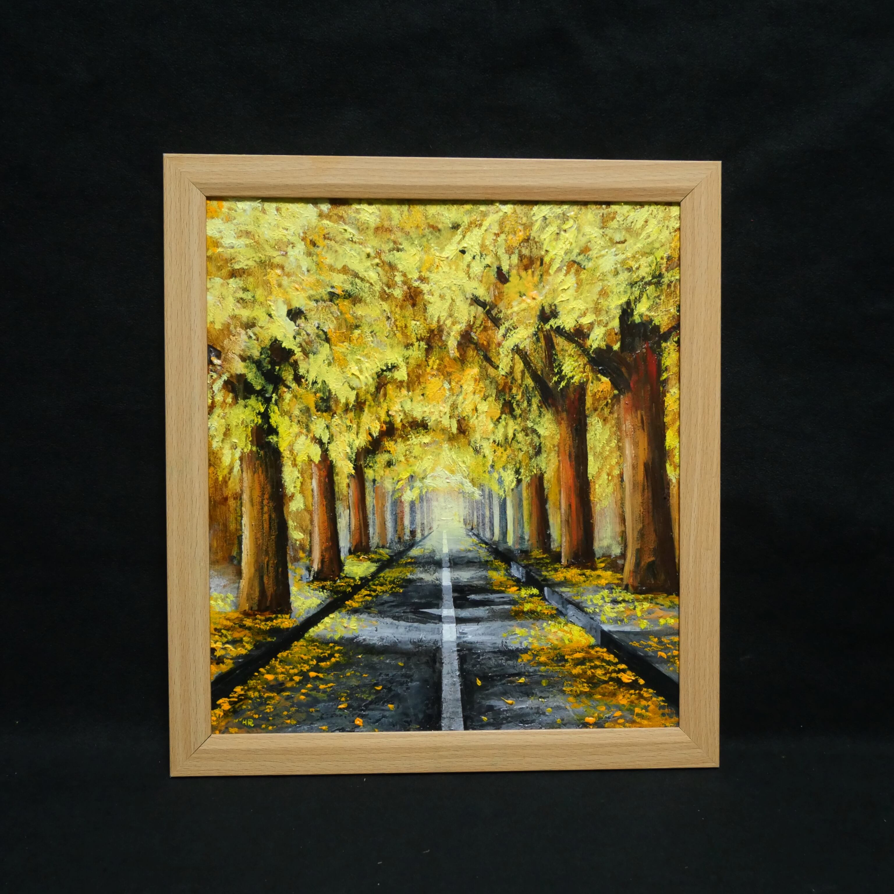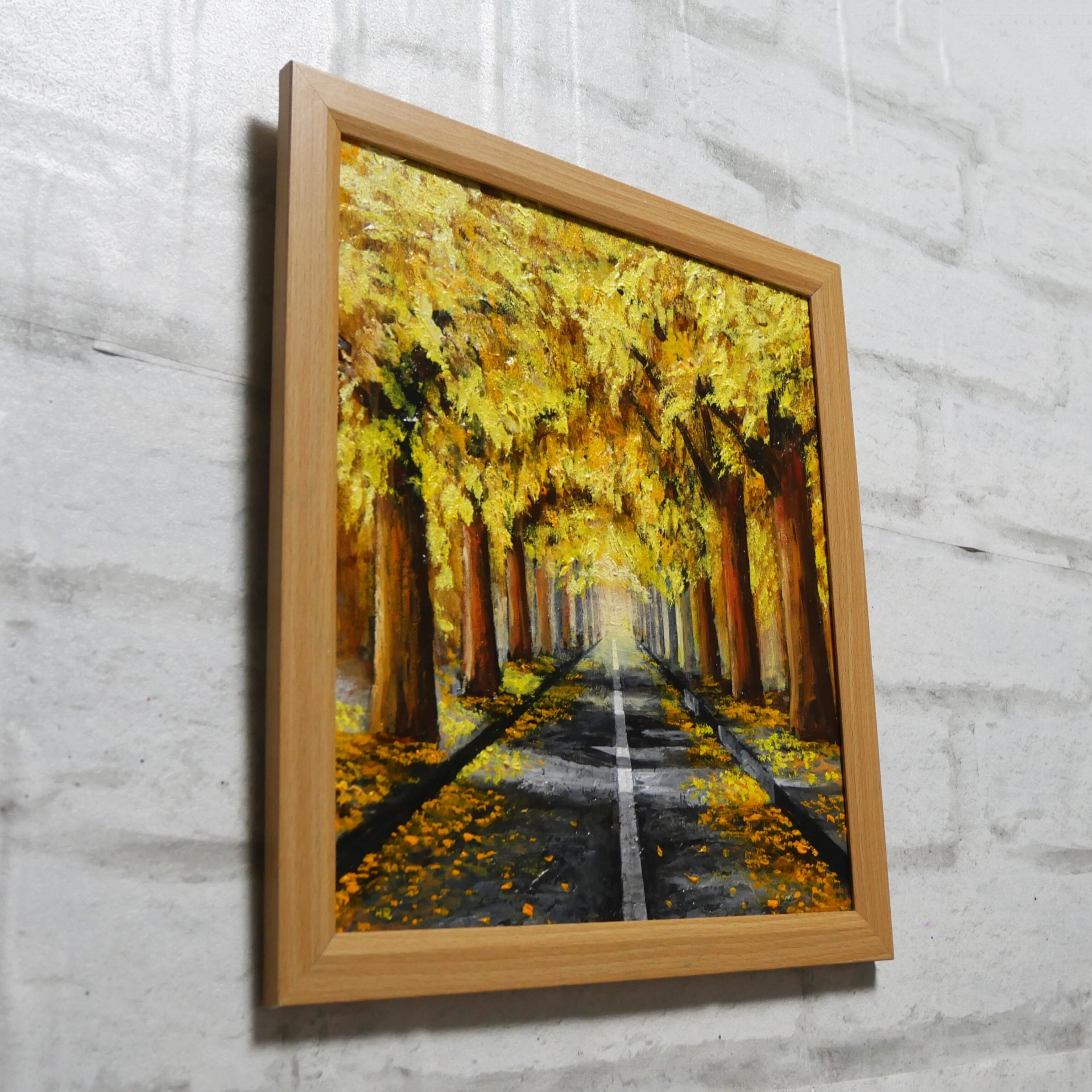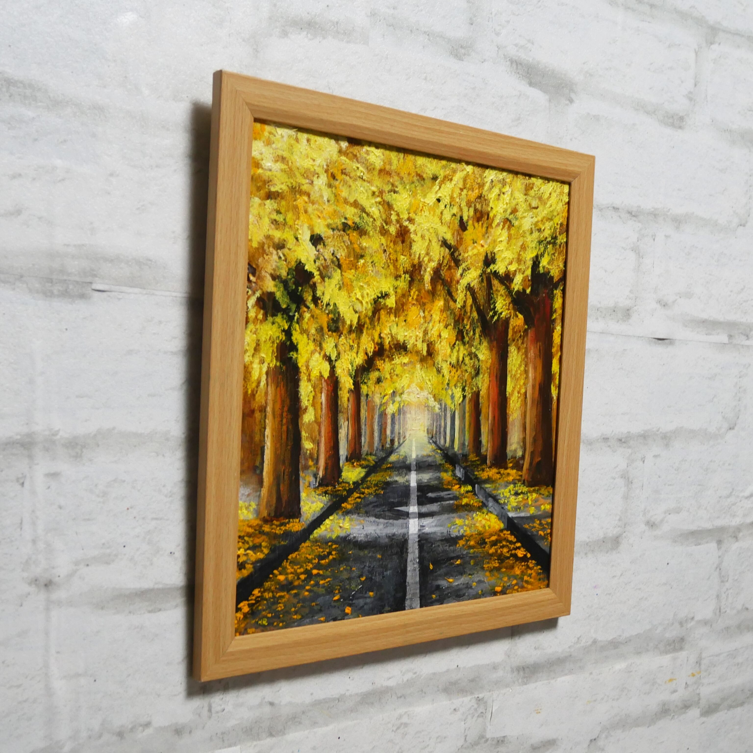 【作品名】:油絵【黄金色の並木道】