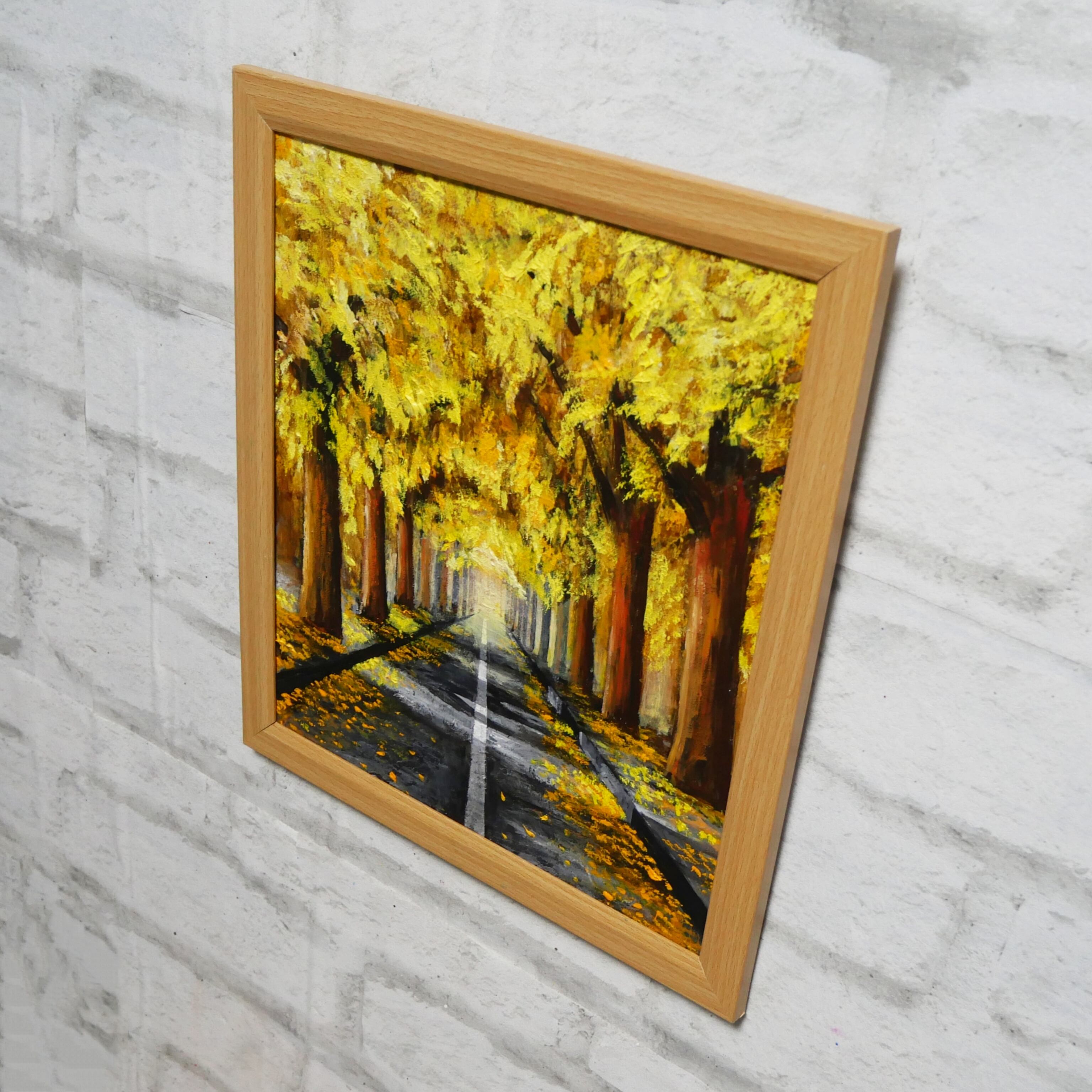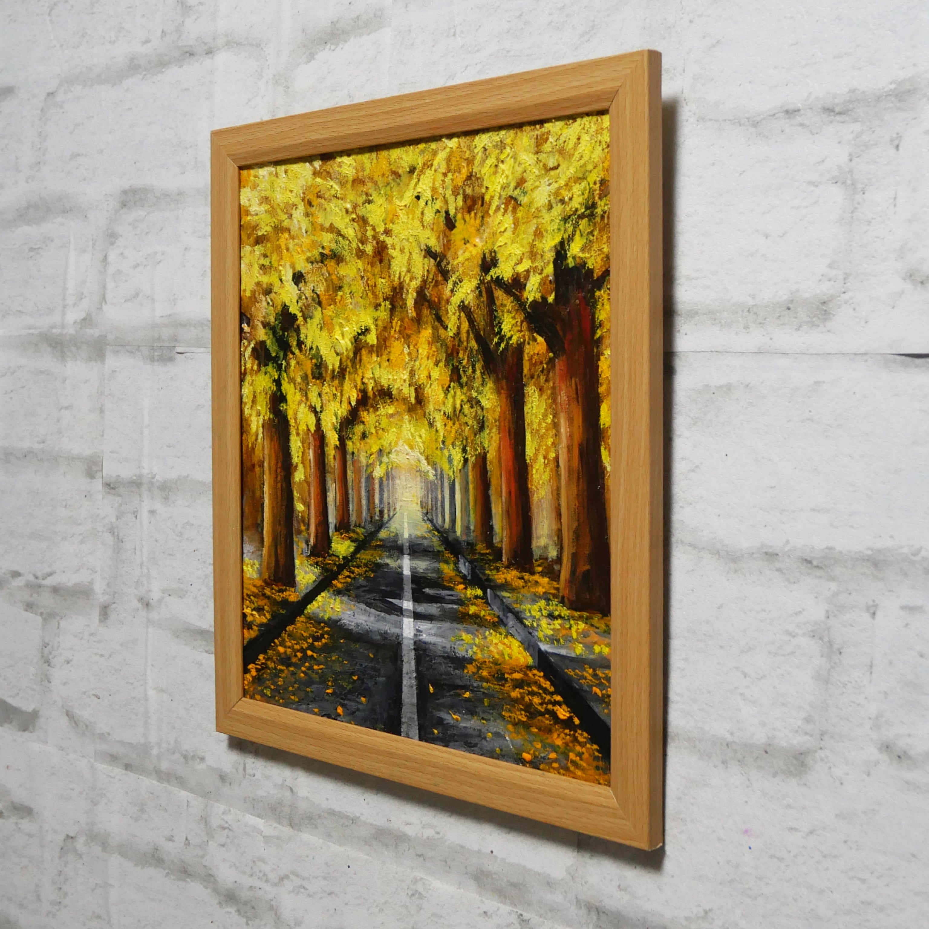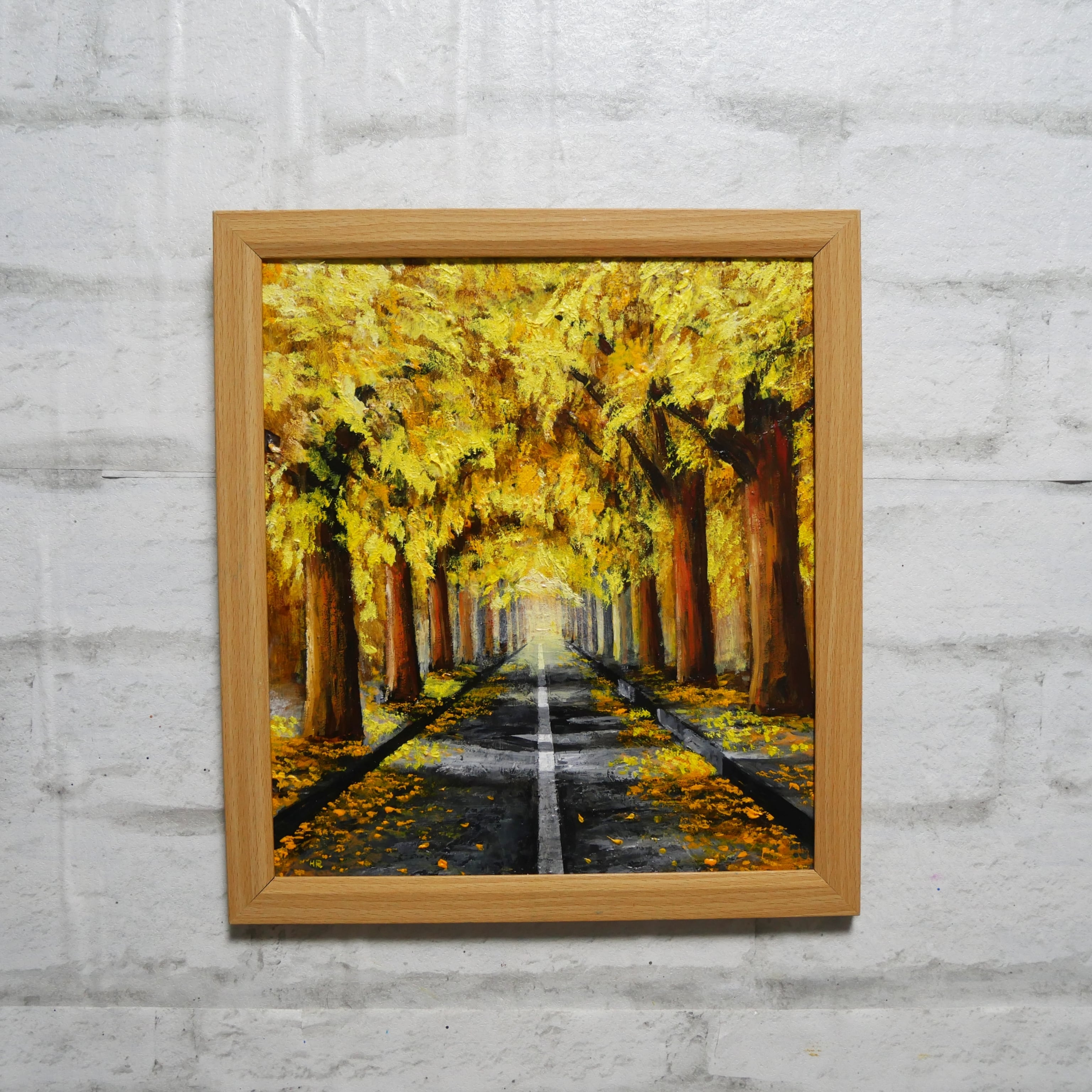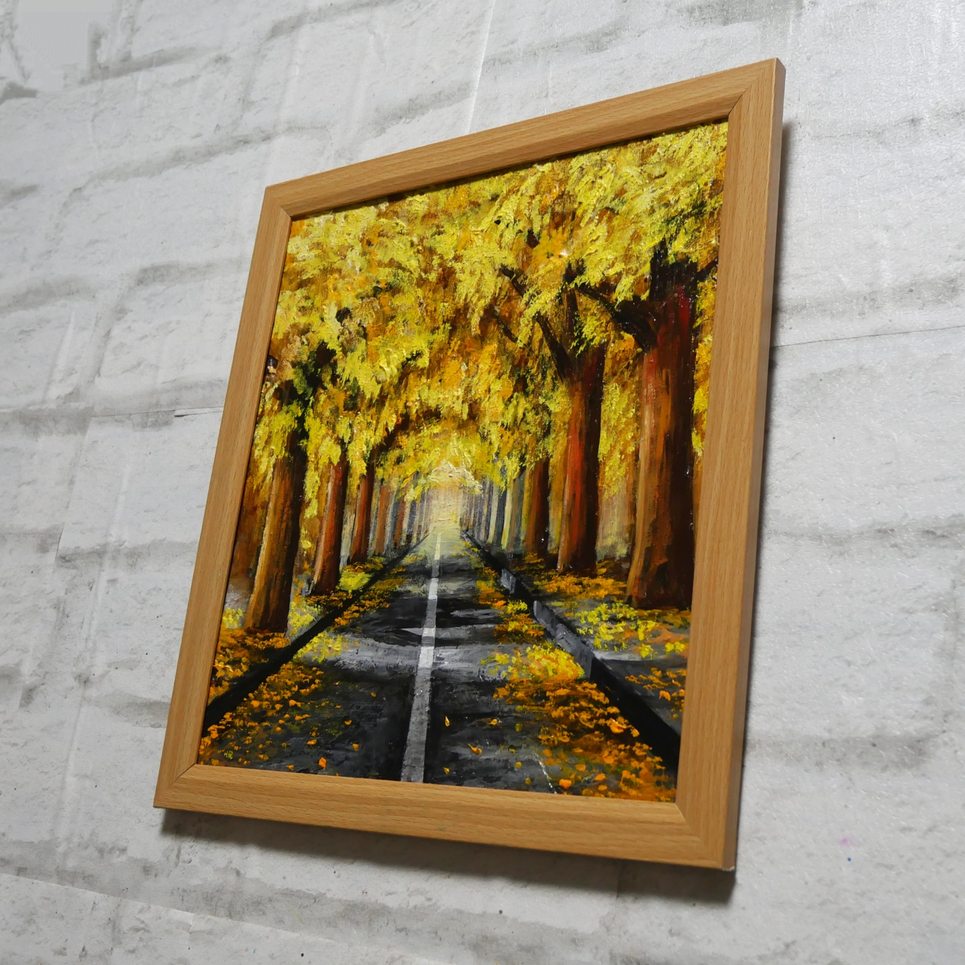 【作品名】:油絵【黄金色の並木道】