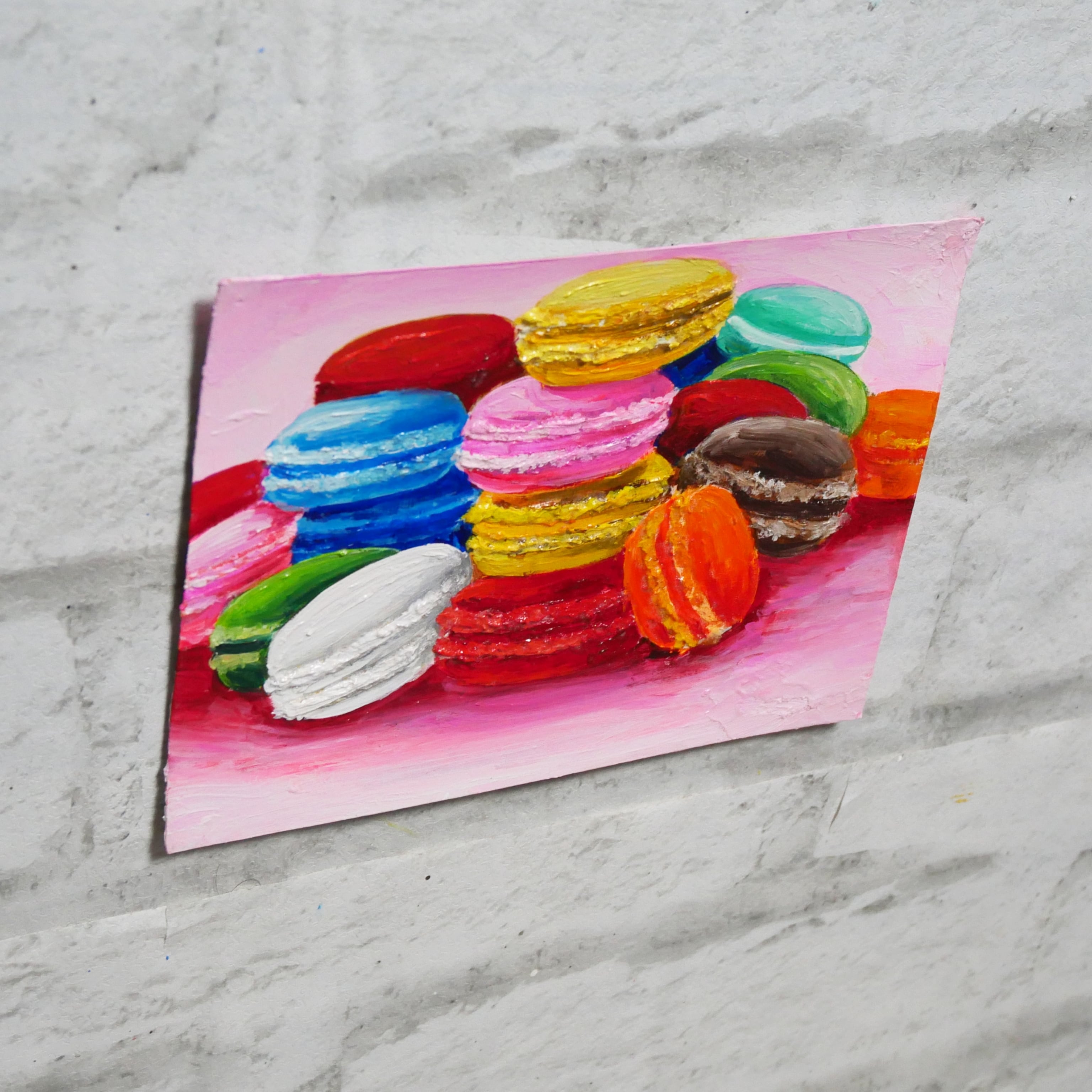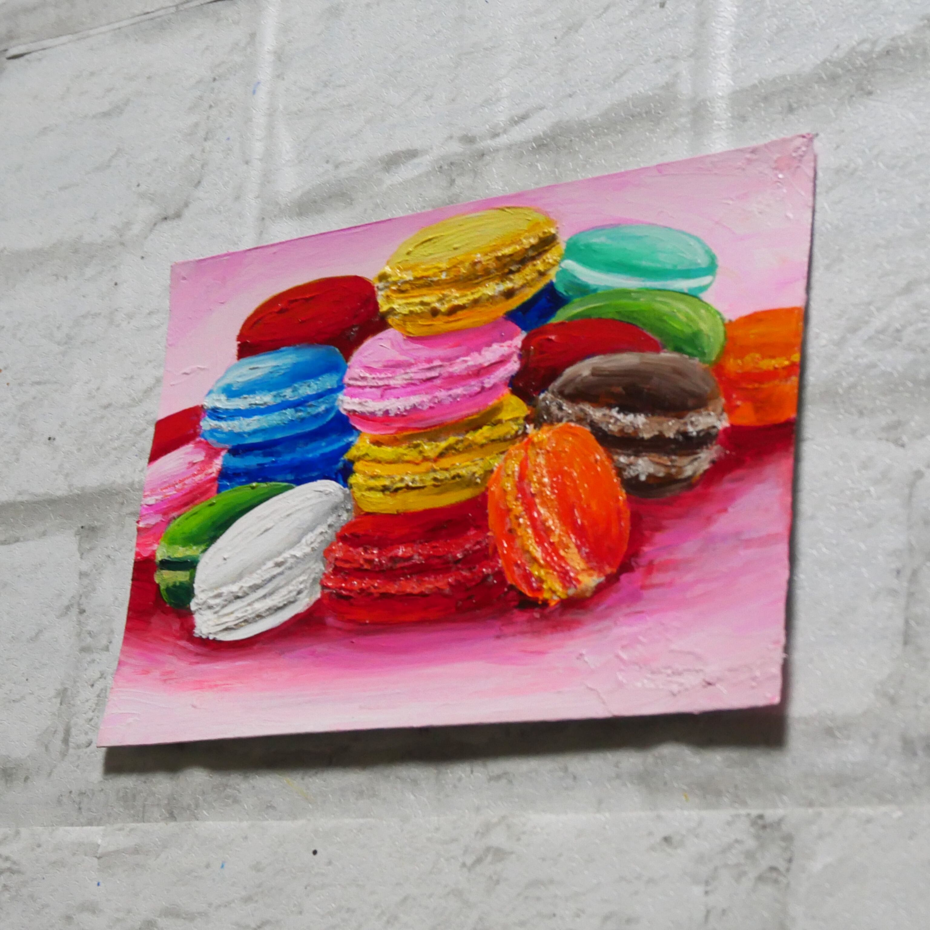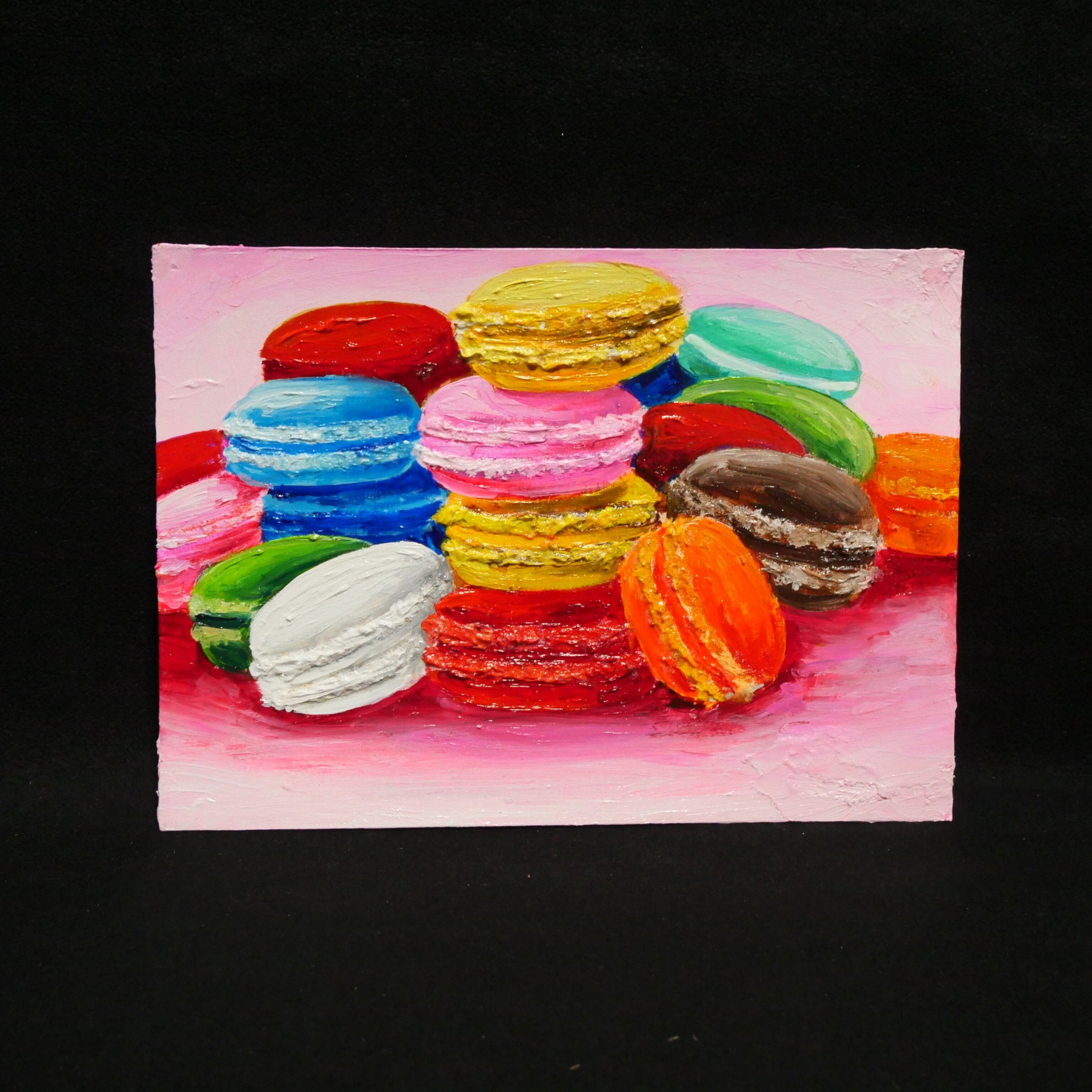 【作品名】:油絵2Lポストカード【カラフルマカロン】