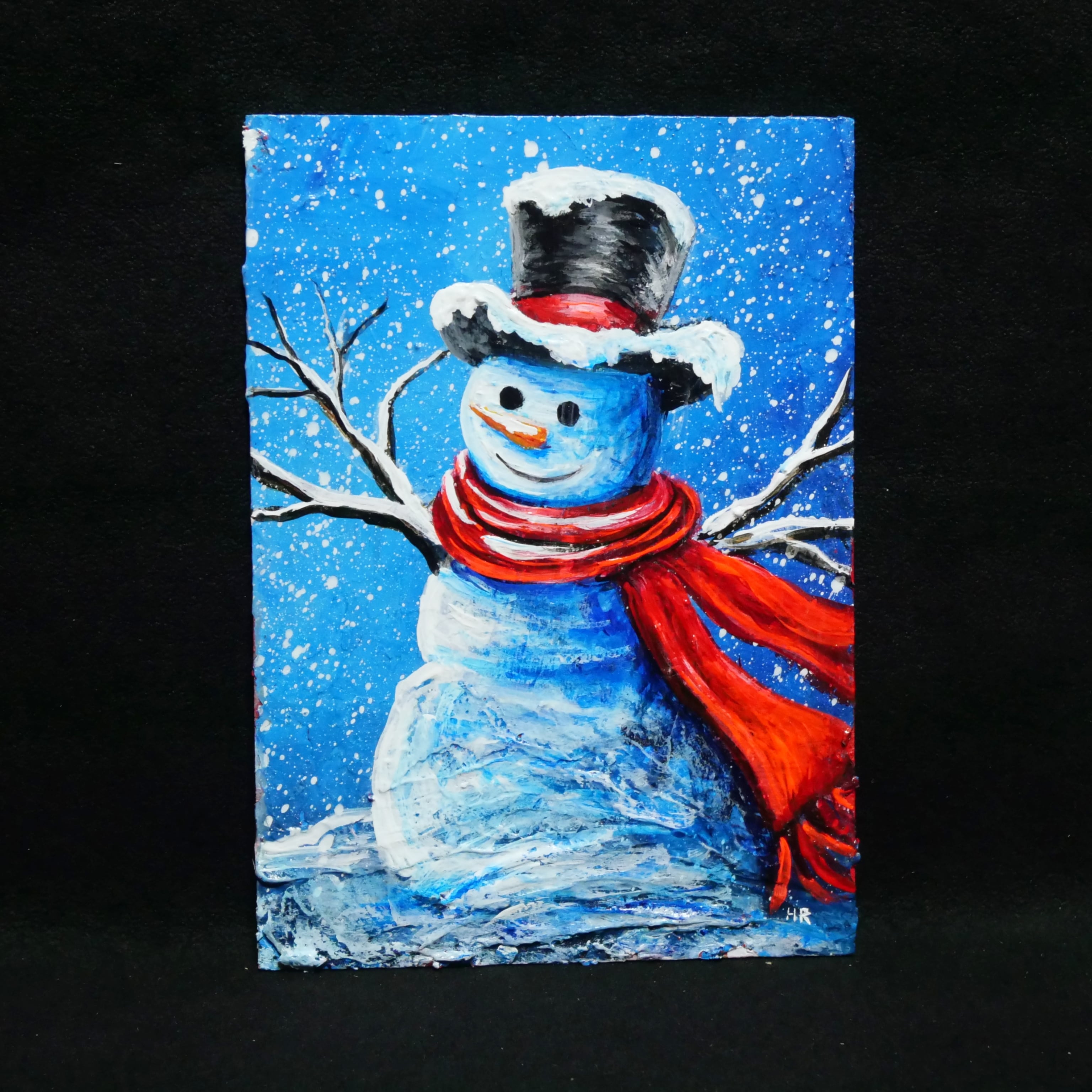 こちらの油絵は、高品質な油絵具【ホルベイン】を使用し、2Lサイズのベニヤ板に丁寧に手描きで仕上げられています。「赤いマフラーの雪だるま」は、クリスマスのディスプレイやギフトにも最適です。この作品が、お客様の生活空間に冬の温もりと楽しさをもたらすことを願っています。