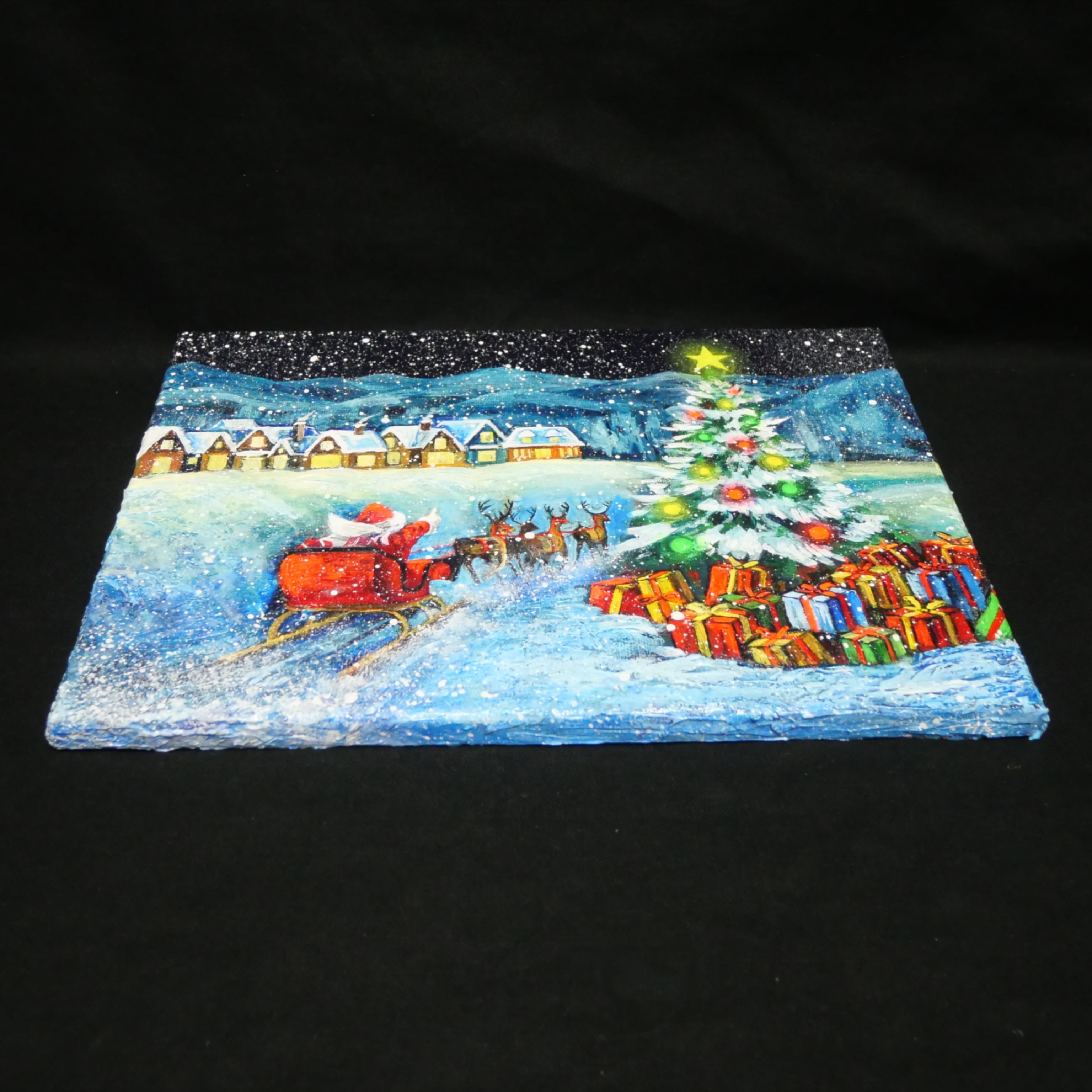 【モチーフ】雪景色・冬景色・クリスマスツリー・小さな町・サンタのソリ・降る雪