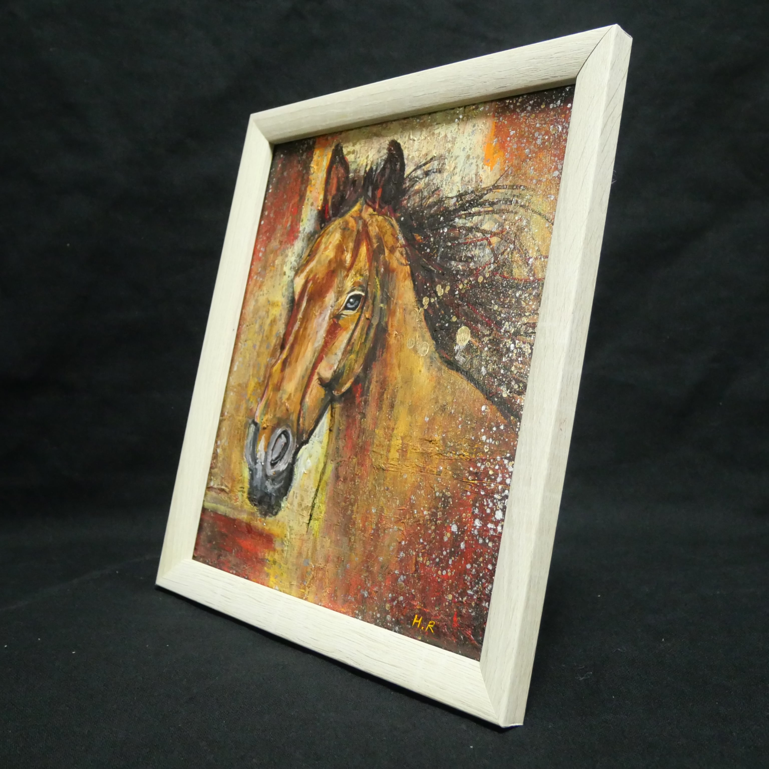 「静かなる王者」は、2026年の午年をテーマにした、馬の肖像画を描いた特別な油絵作品です。この一枚には、力強い躍動感と情熱が表現され、新しいことへの挑戦や大きな飛躍のチャンスがもたらされる縁起の良い年を感じさせます。丙午の「丙」と「午」は「火」の性質を持ち、太陽のように明るくエネルギーに満ちた印象を与え、見る人の心を奮い立たせてくれる特別なアートです。