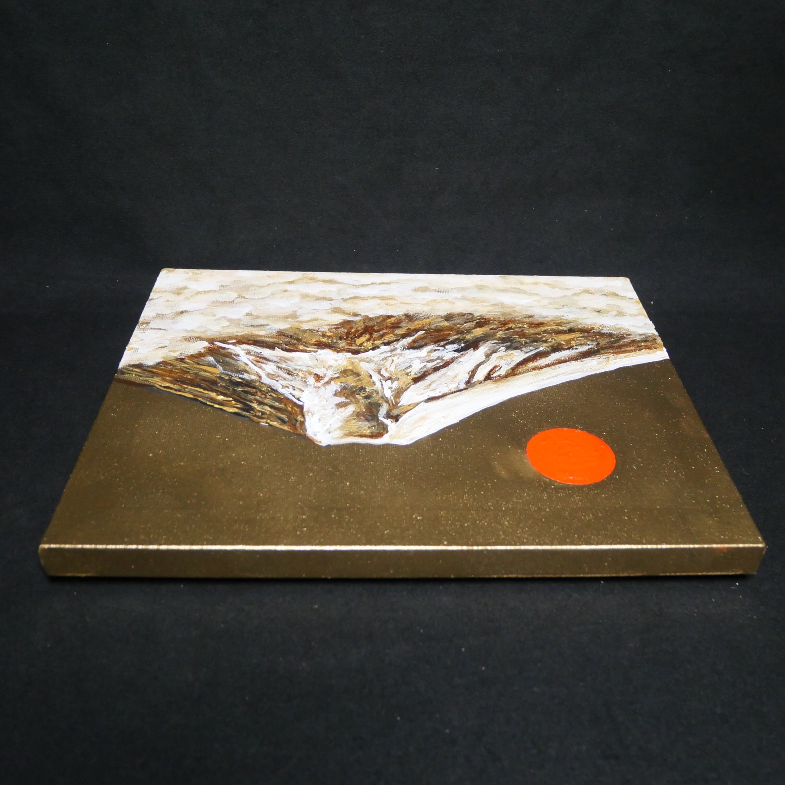 「黄金富士」は、その名の通り富士山を黄金色で描いた特別な作品です。背景全体に施された金色は、力強いエネルギーと神聖さを与え、見る人に深い感動をもたらします。風水で言われる通り、金色や黄色の絵画は金運を呼び寄せるとされ、多くの富裕層が実践している強力な法則が体現された一品です。