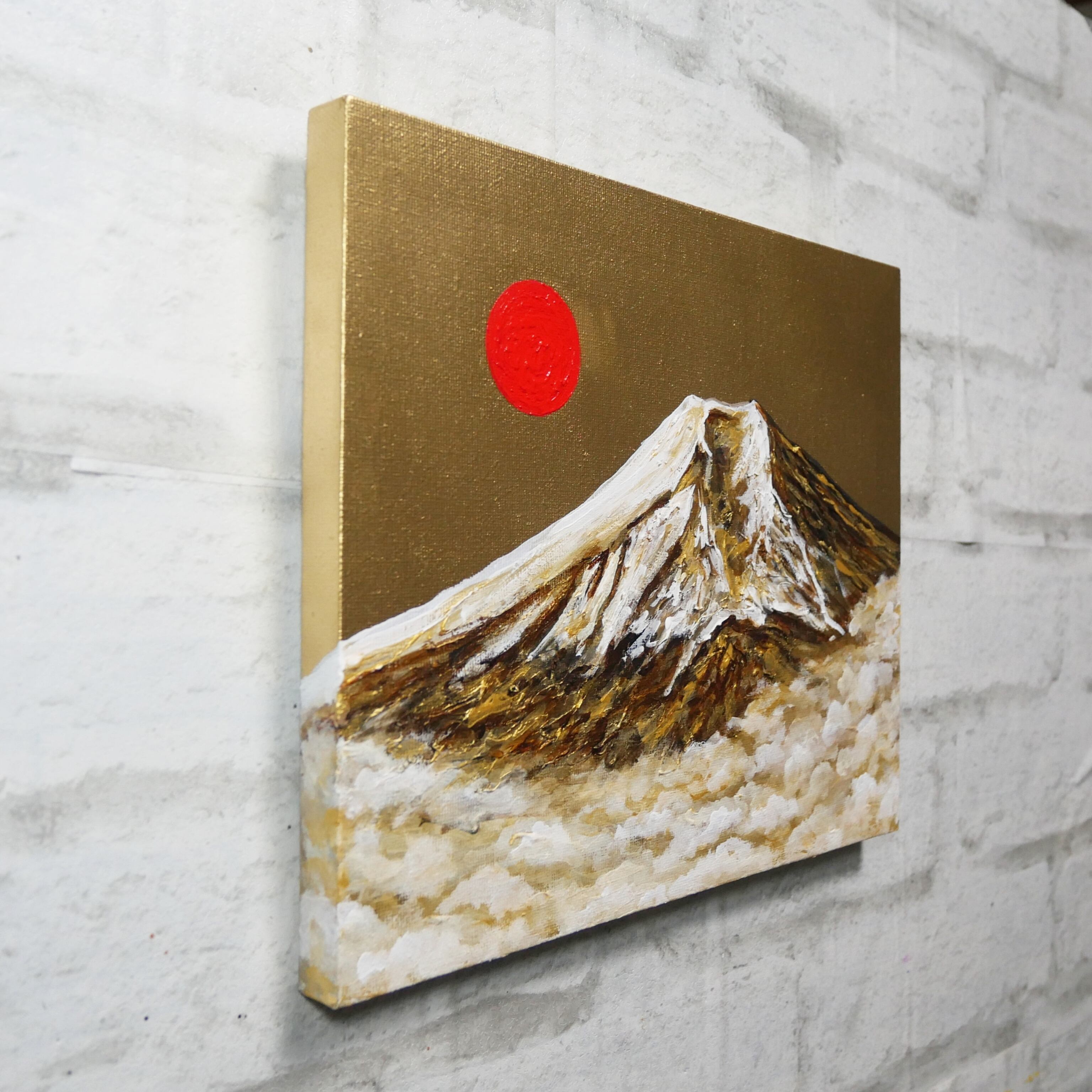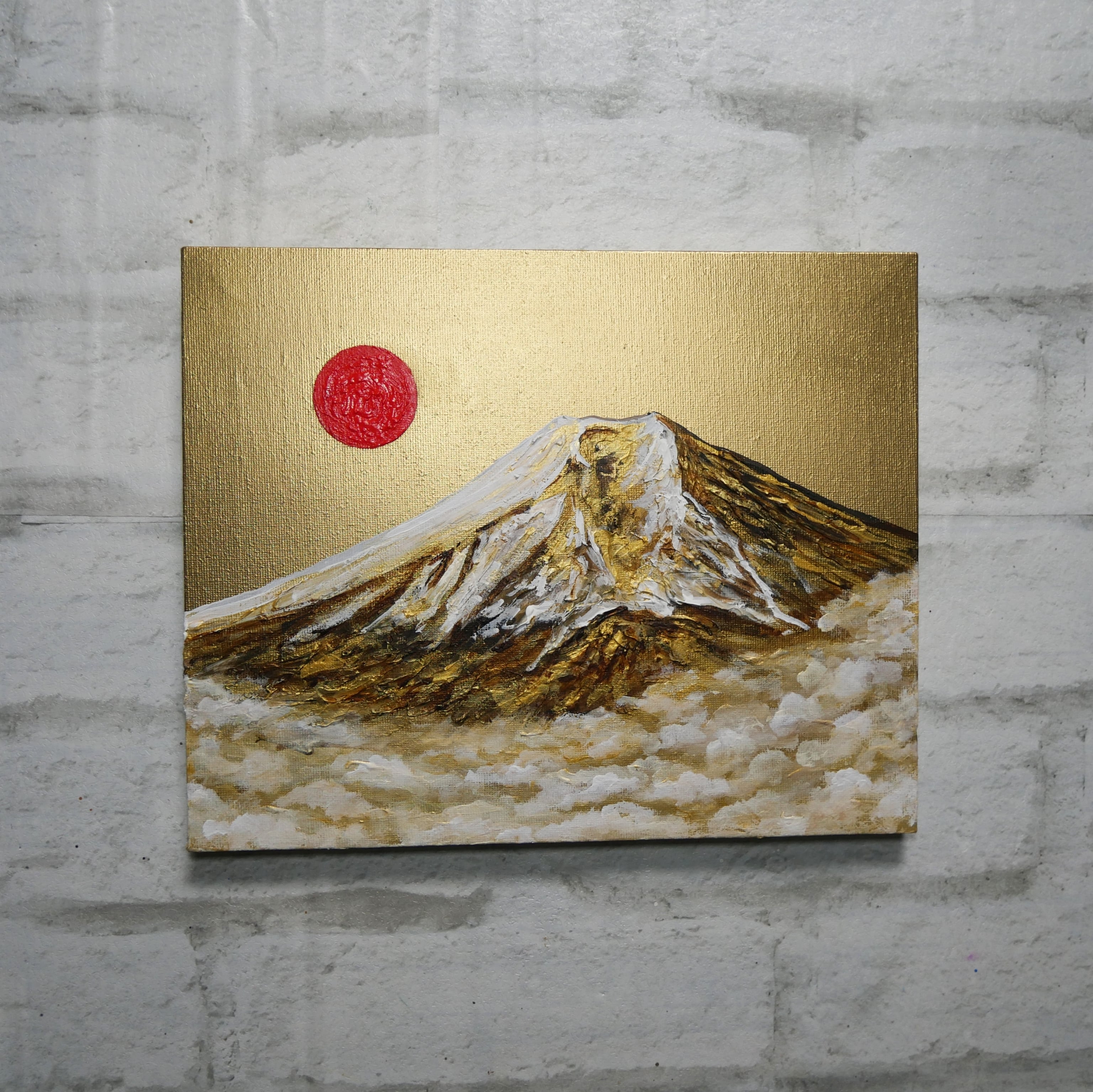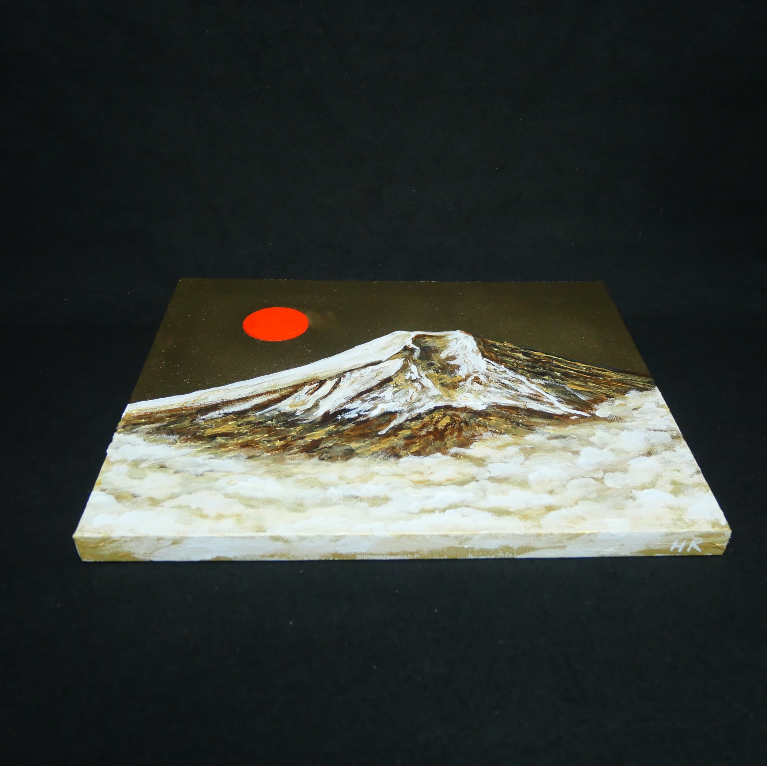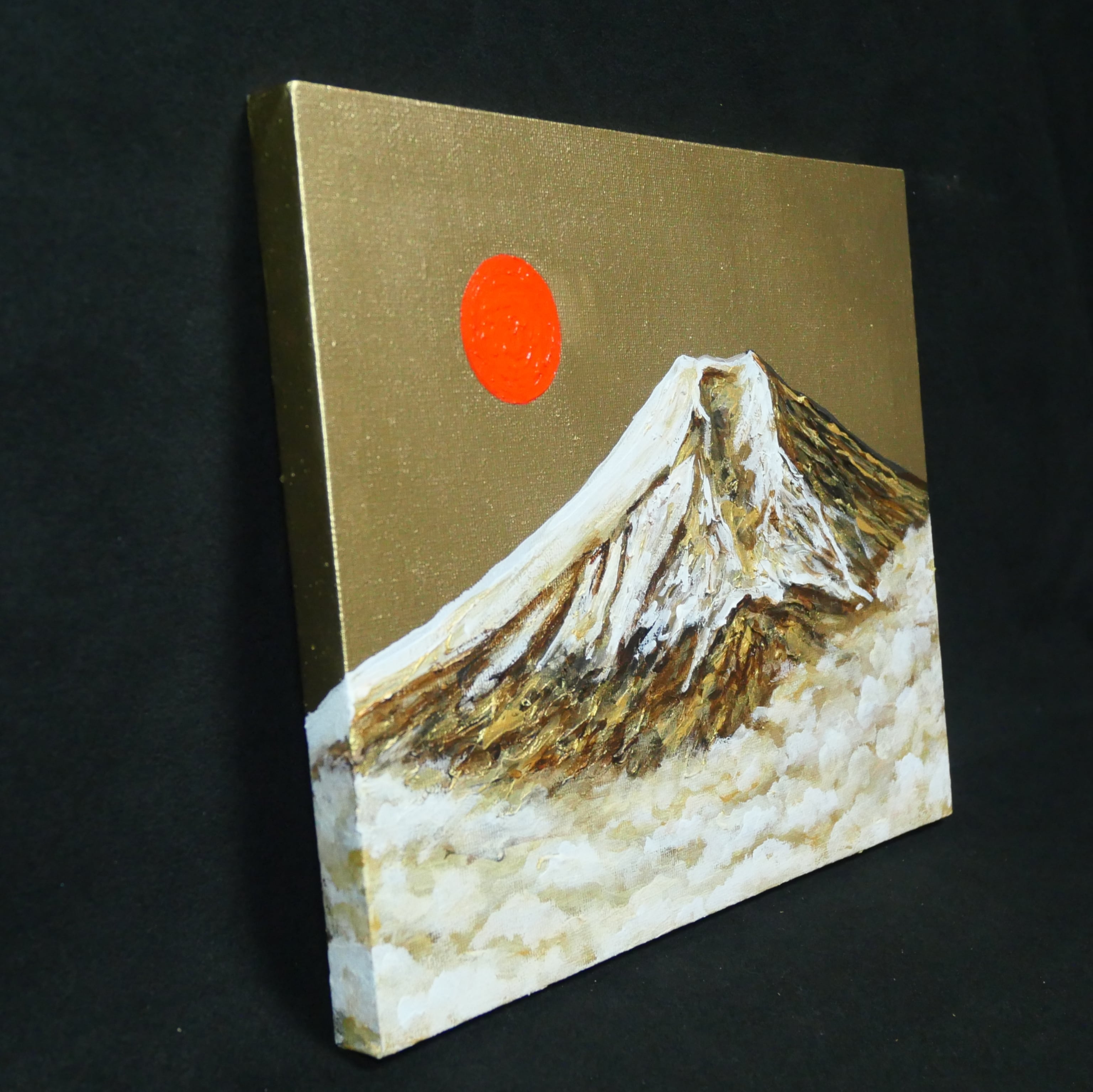 この作品は、油絵具を使用し、重ね塗りの技法(インパスト)によって、重厚な質感や立体感を見事に表現しています。特に雲の巧みな描写や富士山の山肌には、その特徴が際立ちます。写真では味わえない絵画ならではの深みと迫力があり、心を惹きつけることでしょう。