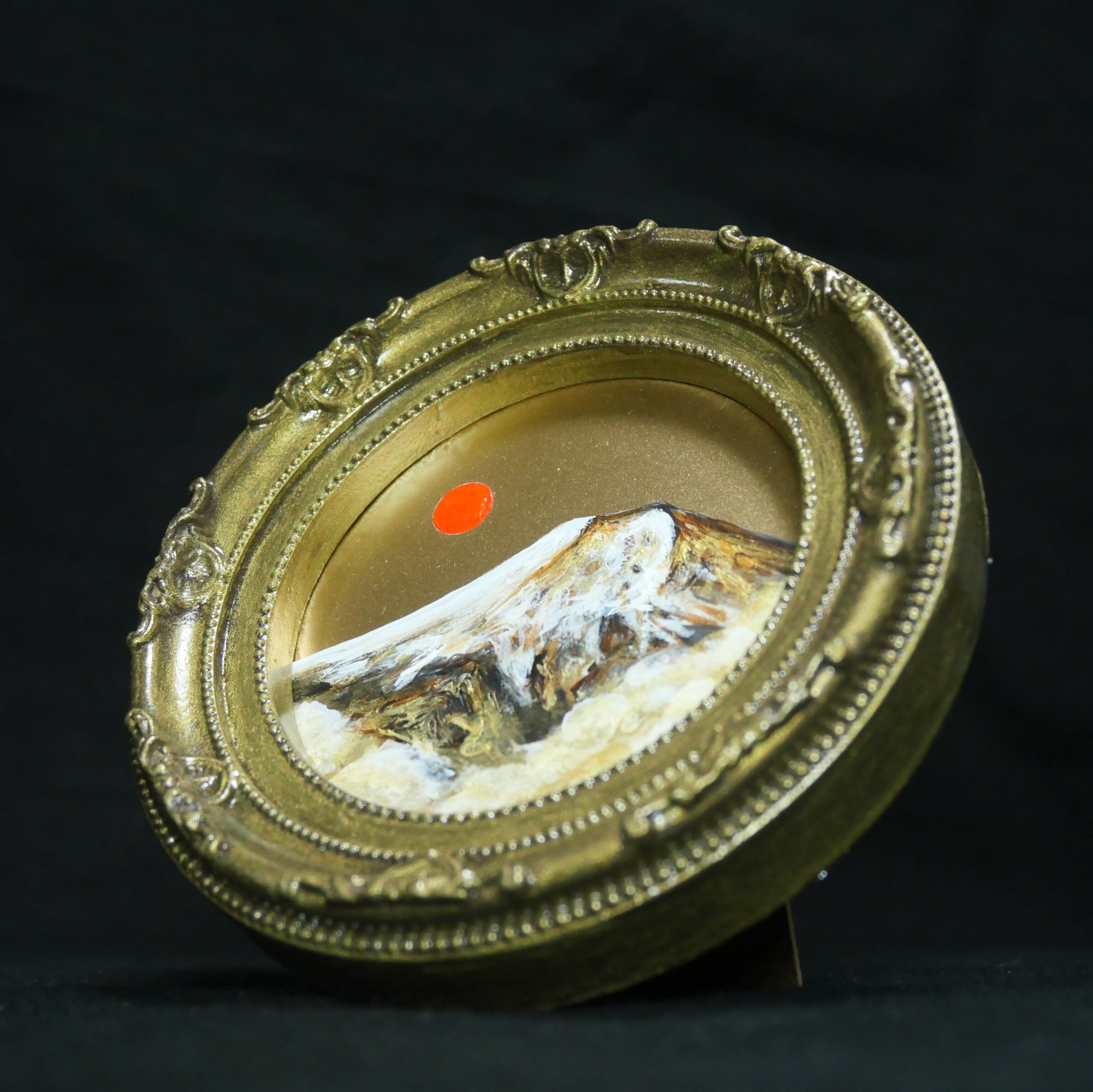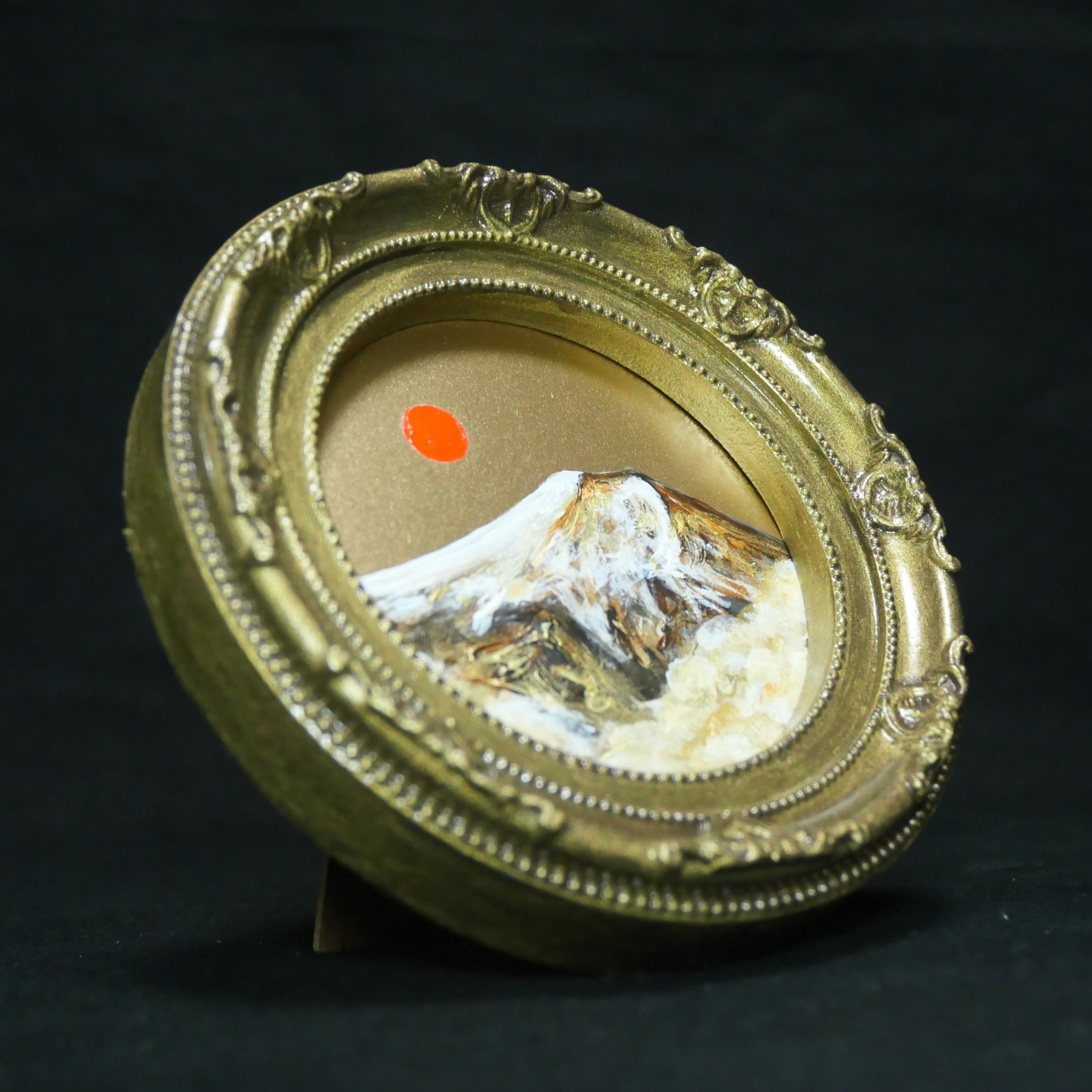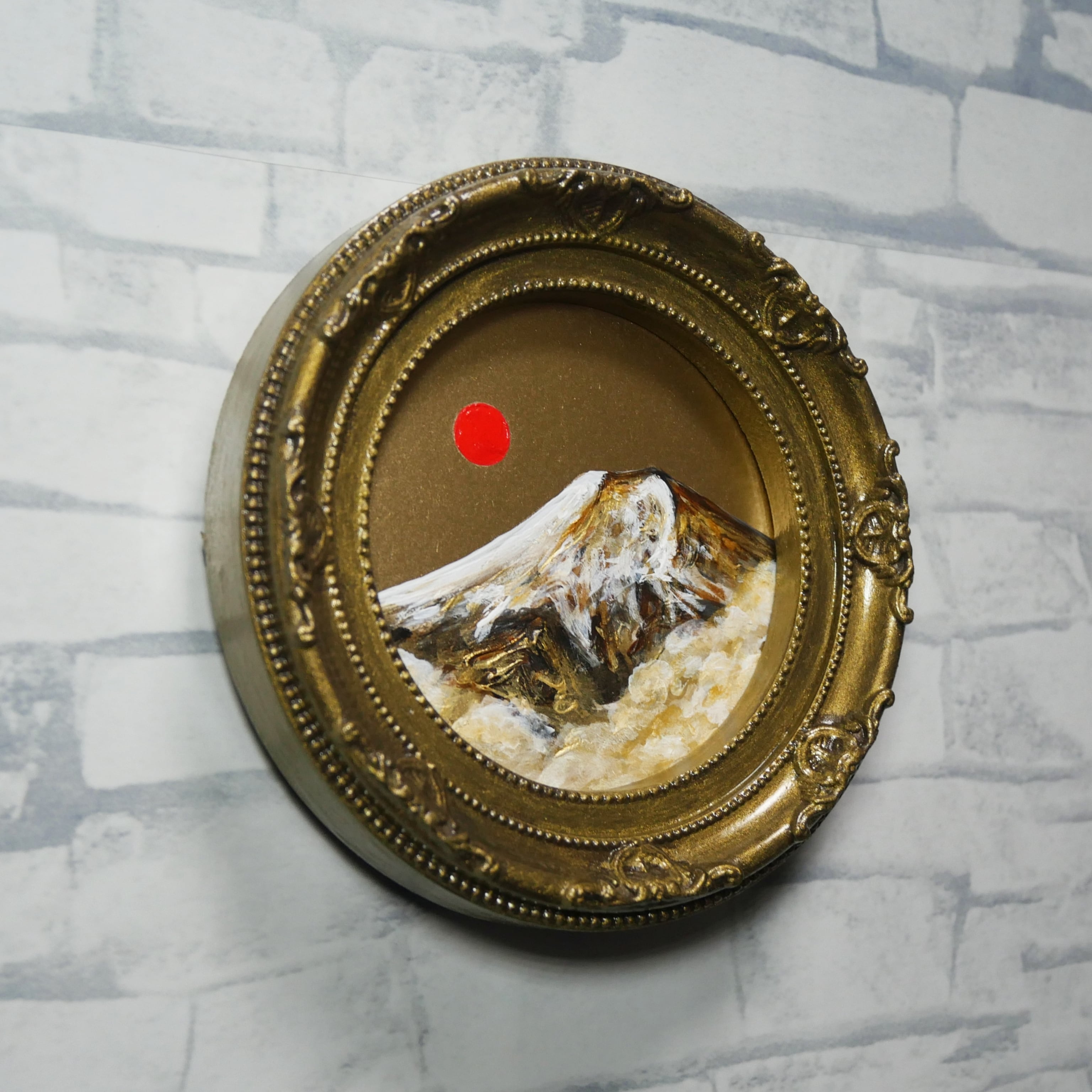 【作品名】 :円形ミニ絵画【黄金富士山】