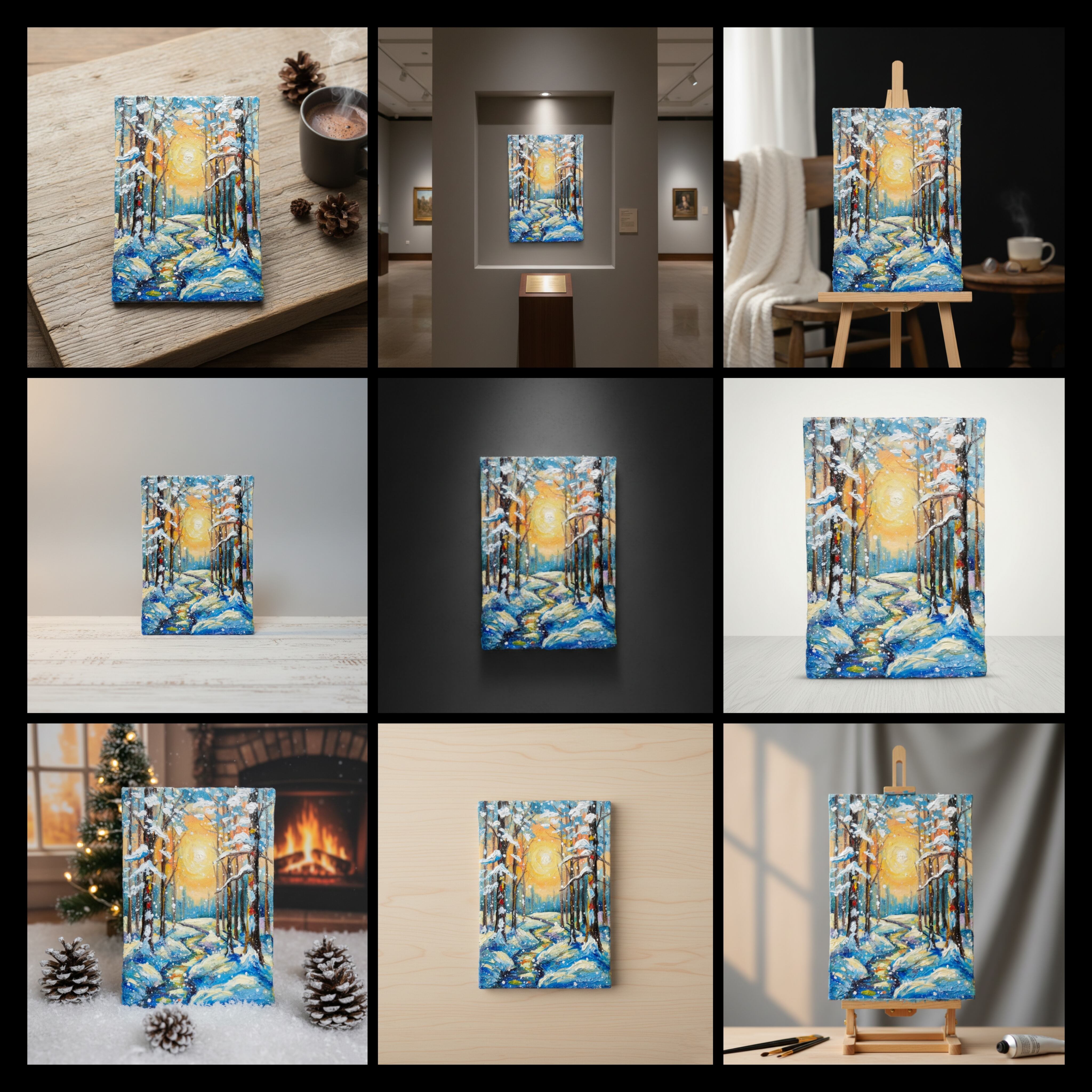 この「黄金色の冬」は、あなたの空間に冬の静けさと温もりをもたらし、特別なひとときを演出する素敵なアート作品です。