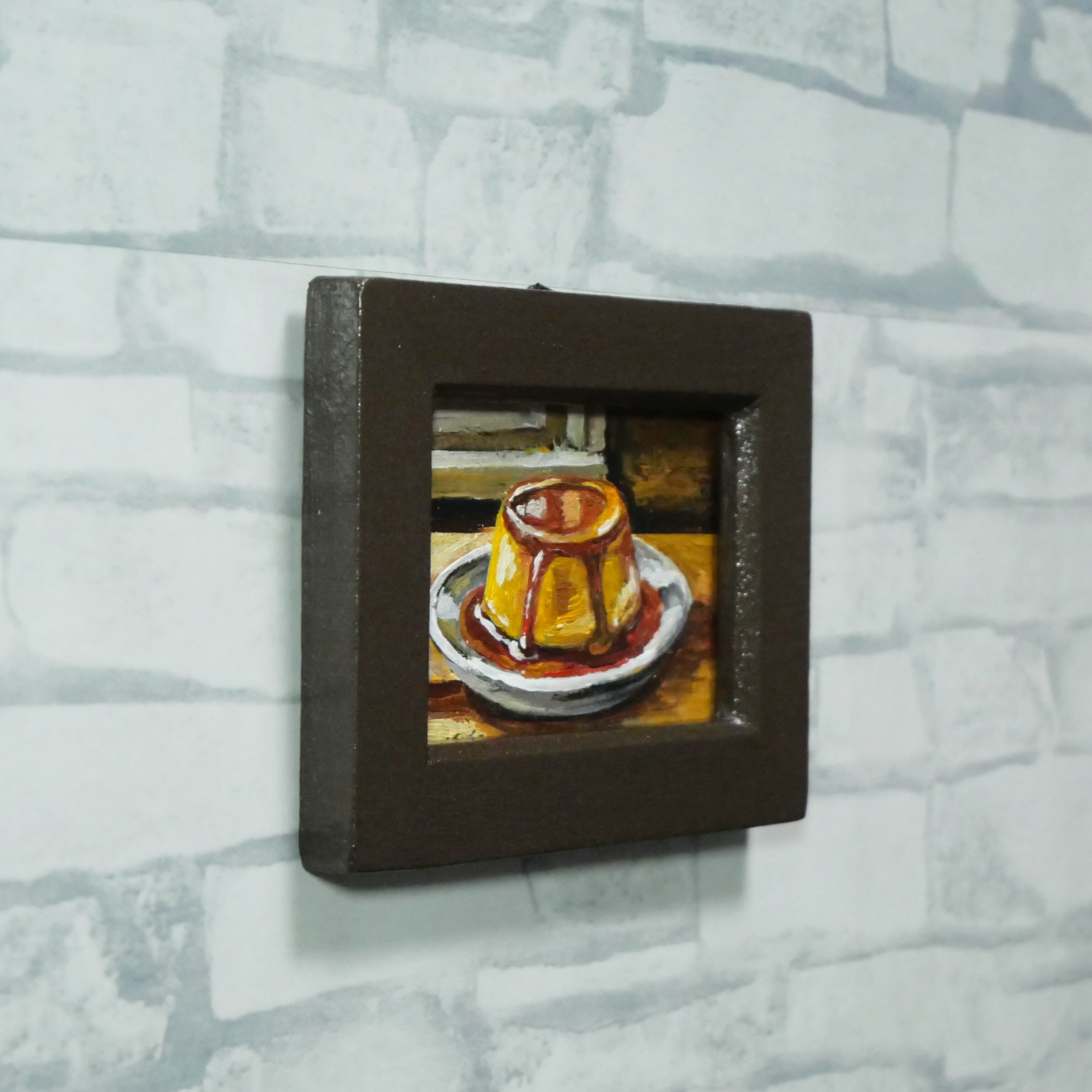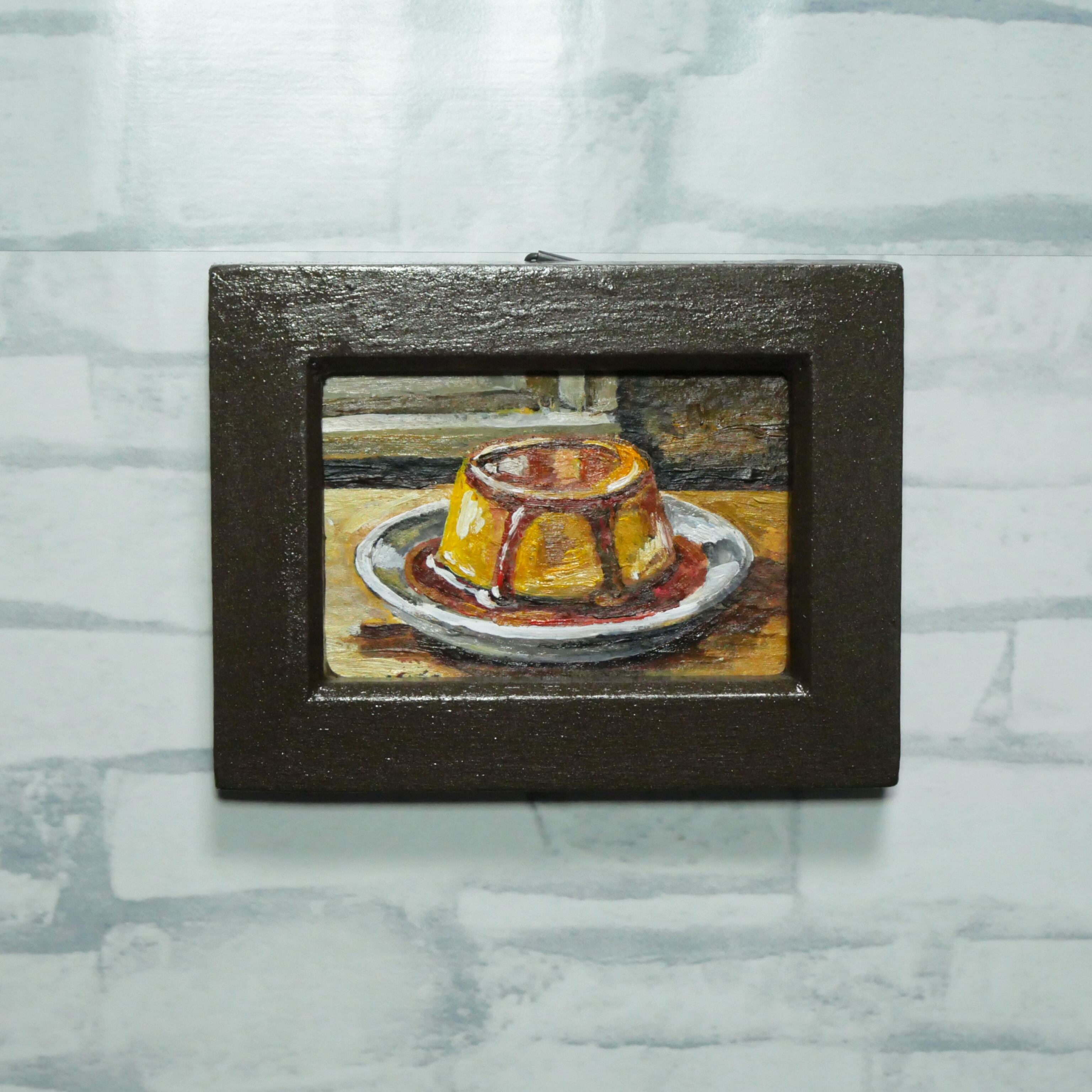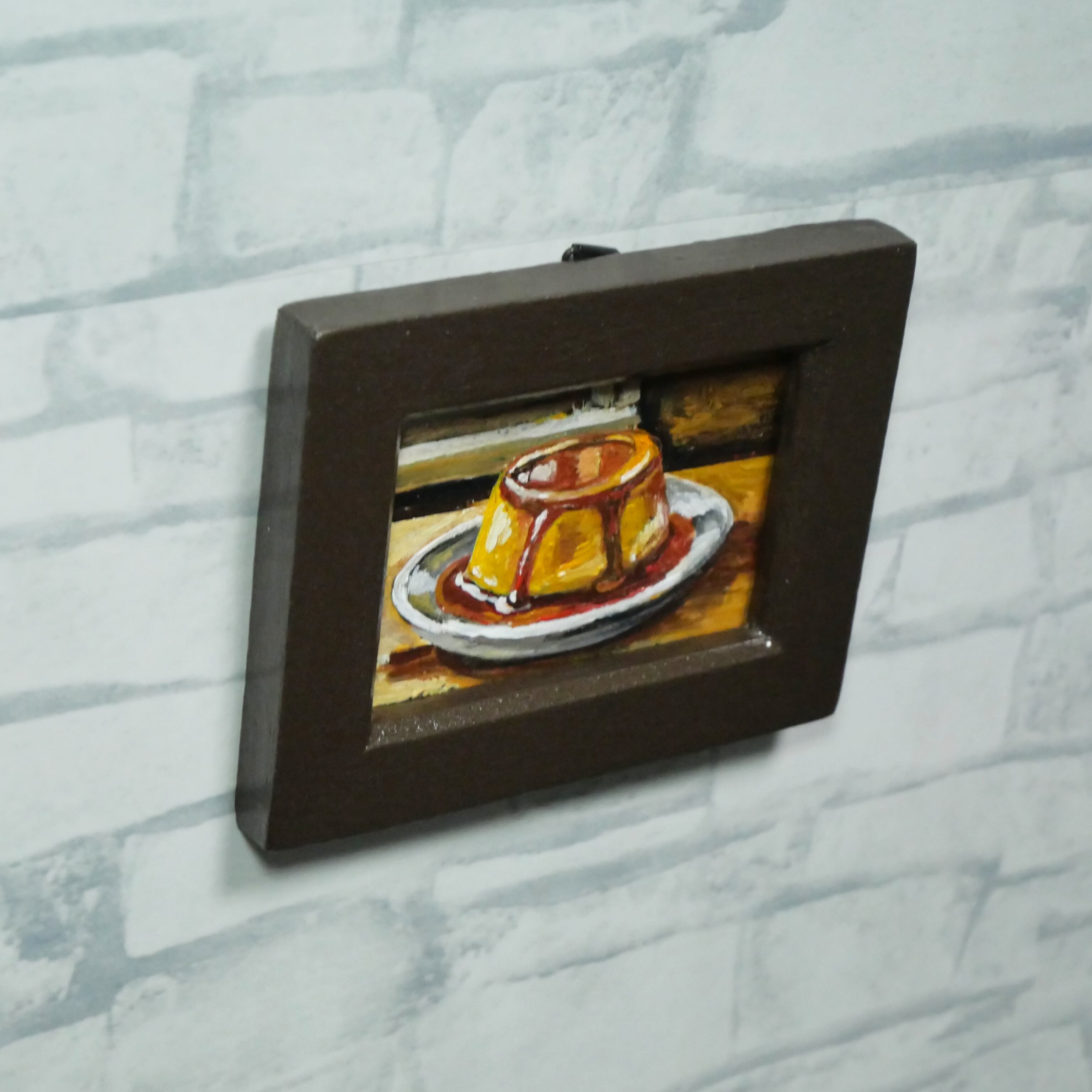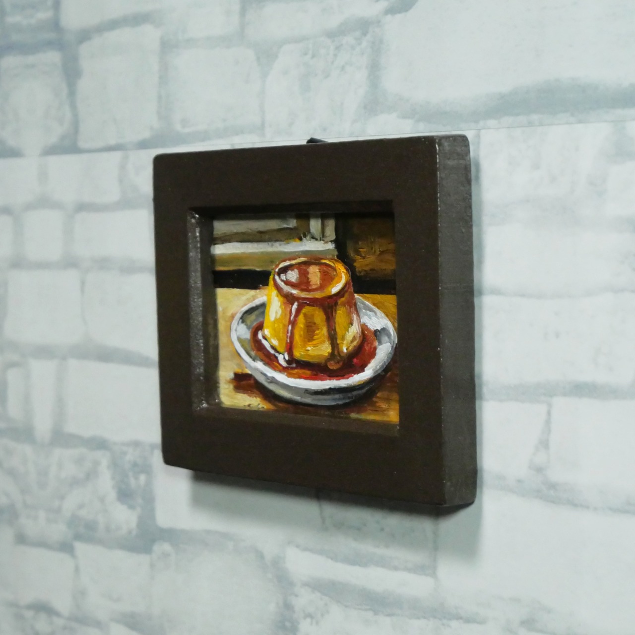 飾れるスイーツ【プリン】手のひらサイズのミニ油絵 原画 / インテリア モダンアート
