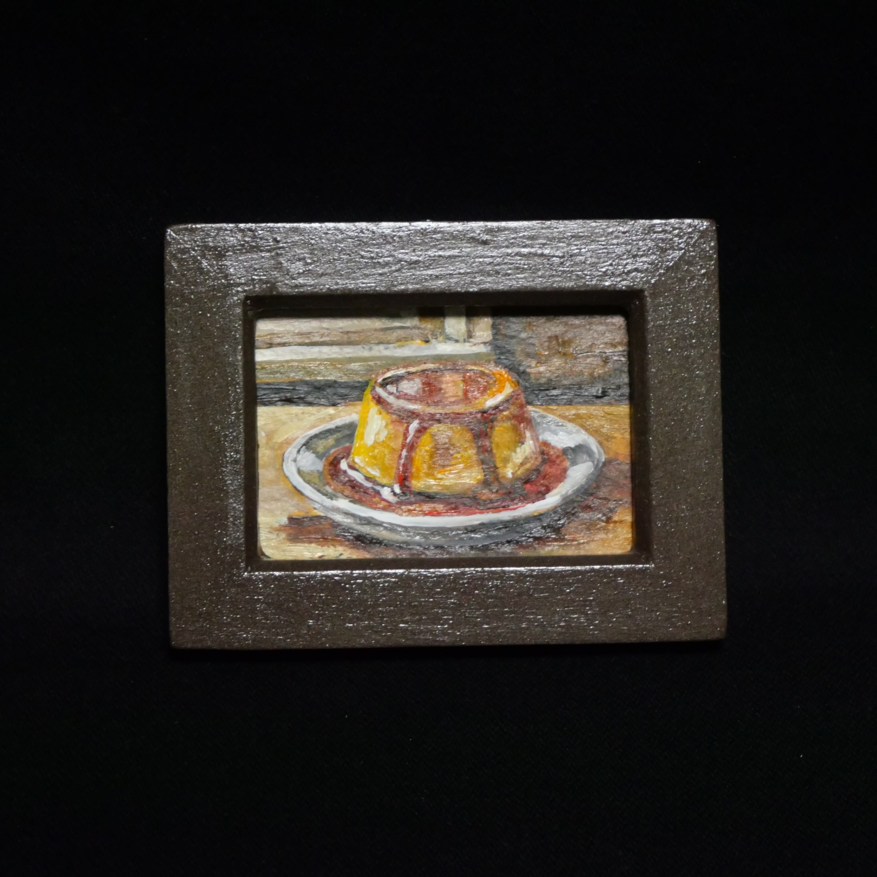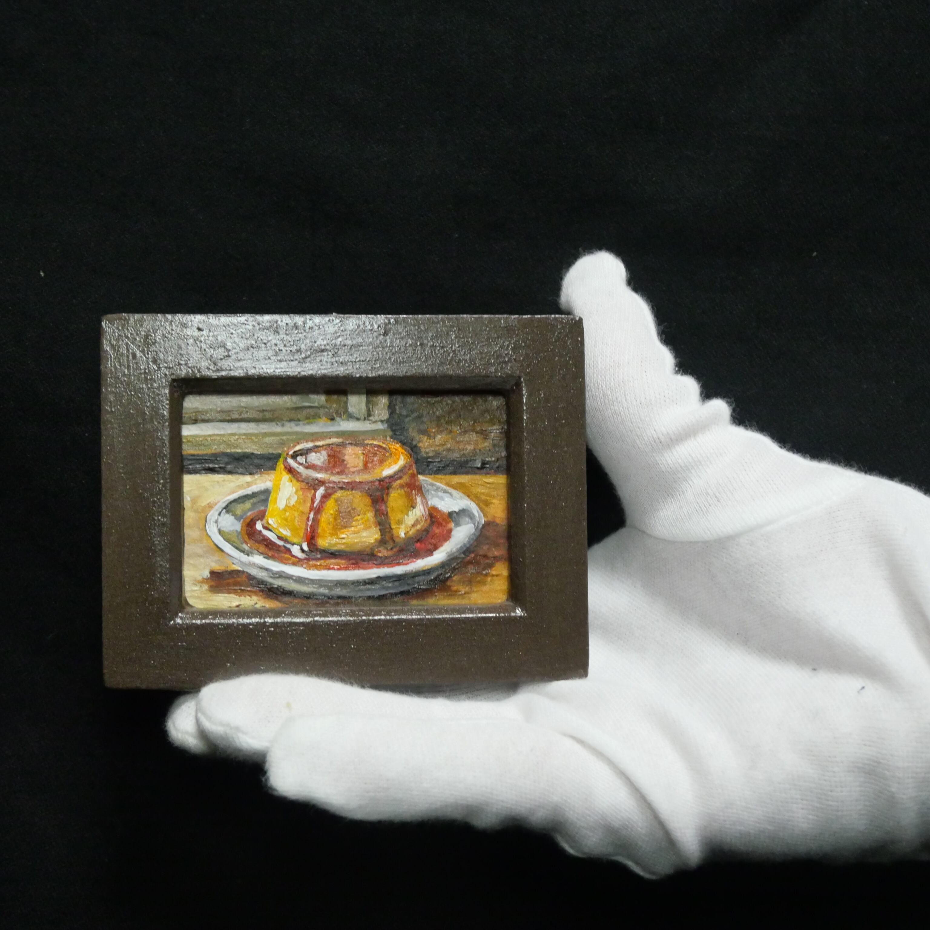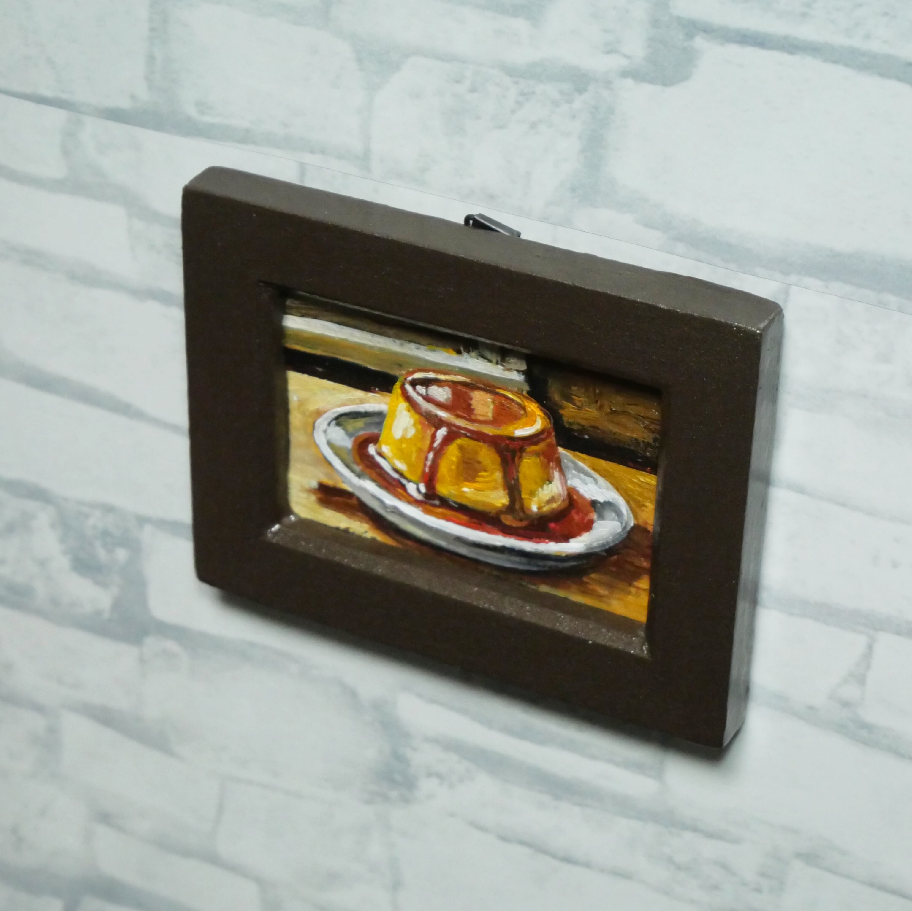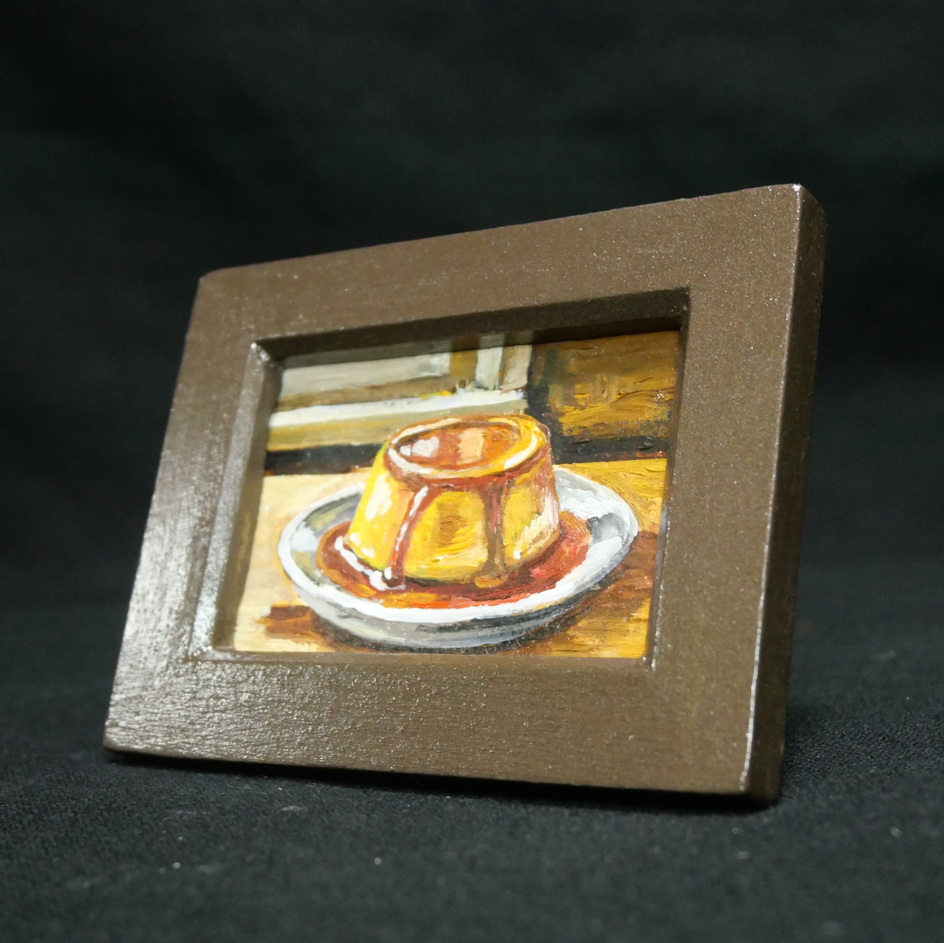 飾れるスイーツ【プリン】手のひらサイズのミニ油絵 原画 / インテリア モダンアート