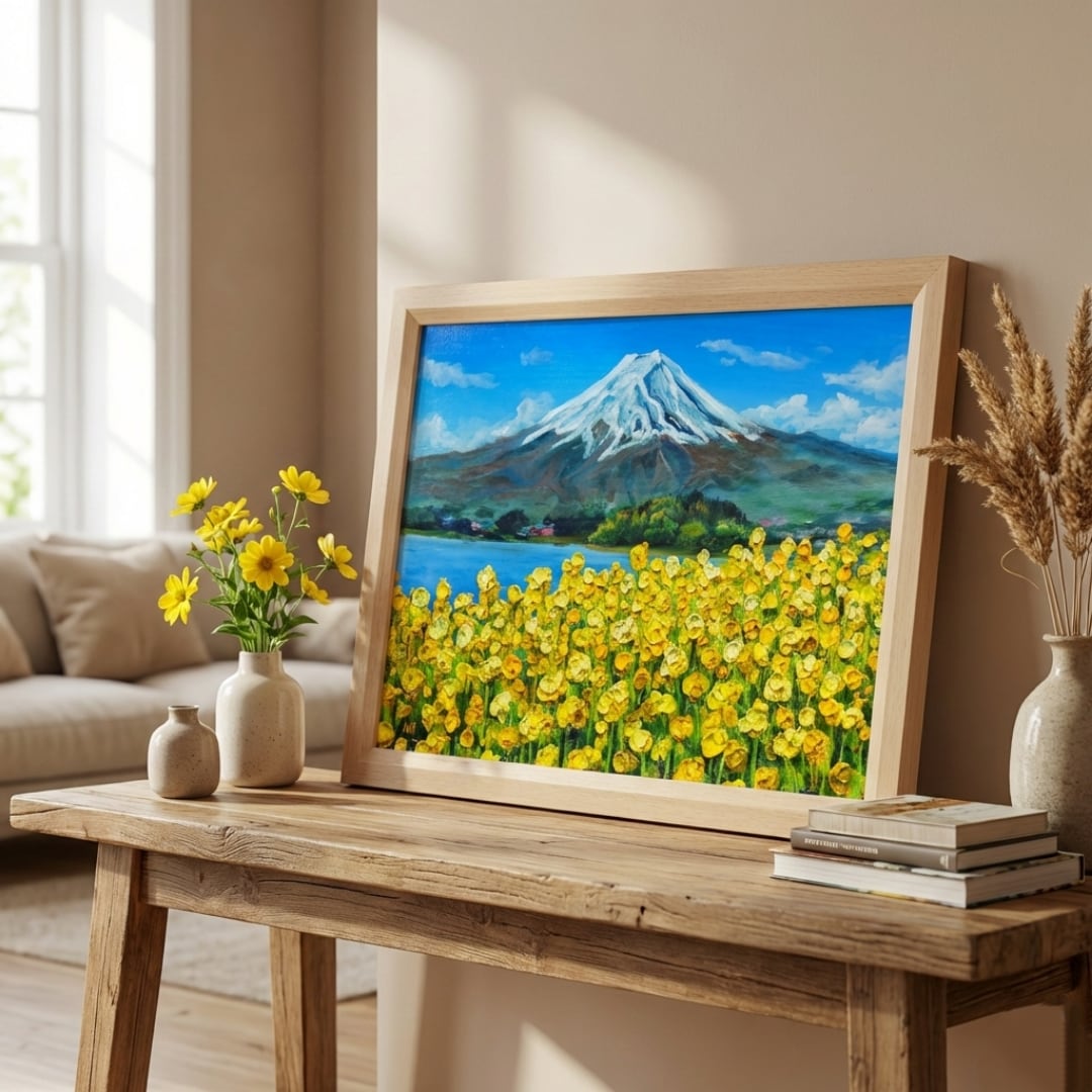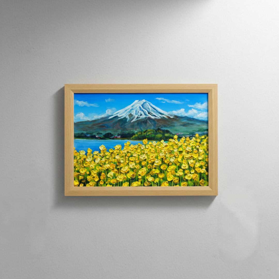 この「春の息吹と、悠久の富士」は、あなたの空間に春の暖かさをもたらし、特別な思い出を演出する魅力あふれるアート作品です。