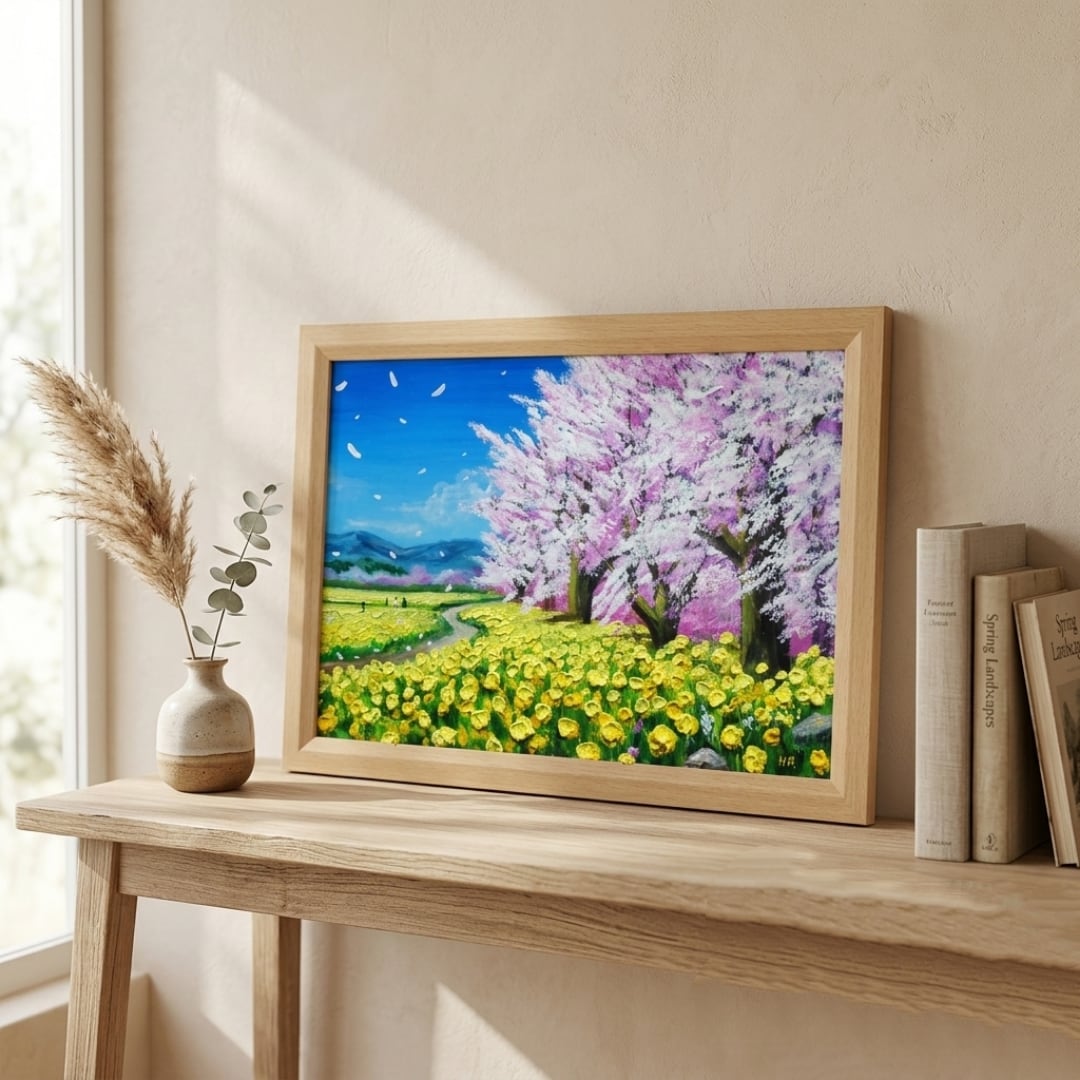 この「希望の花咲く春の日」は、お客様の空間に春の息吹をもたらし、特別な思い出を演出する魅力あふれるアート作品です。