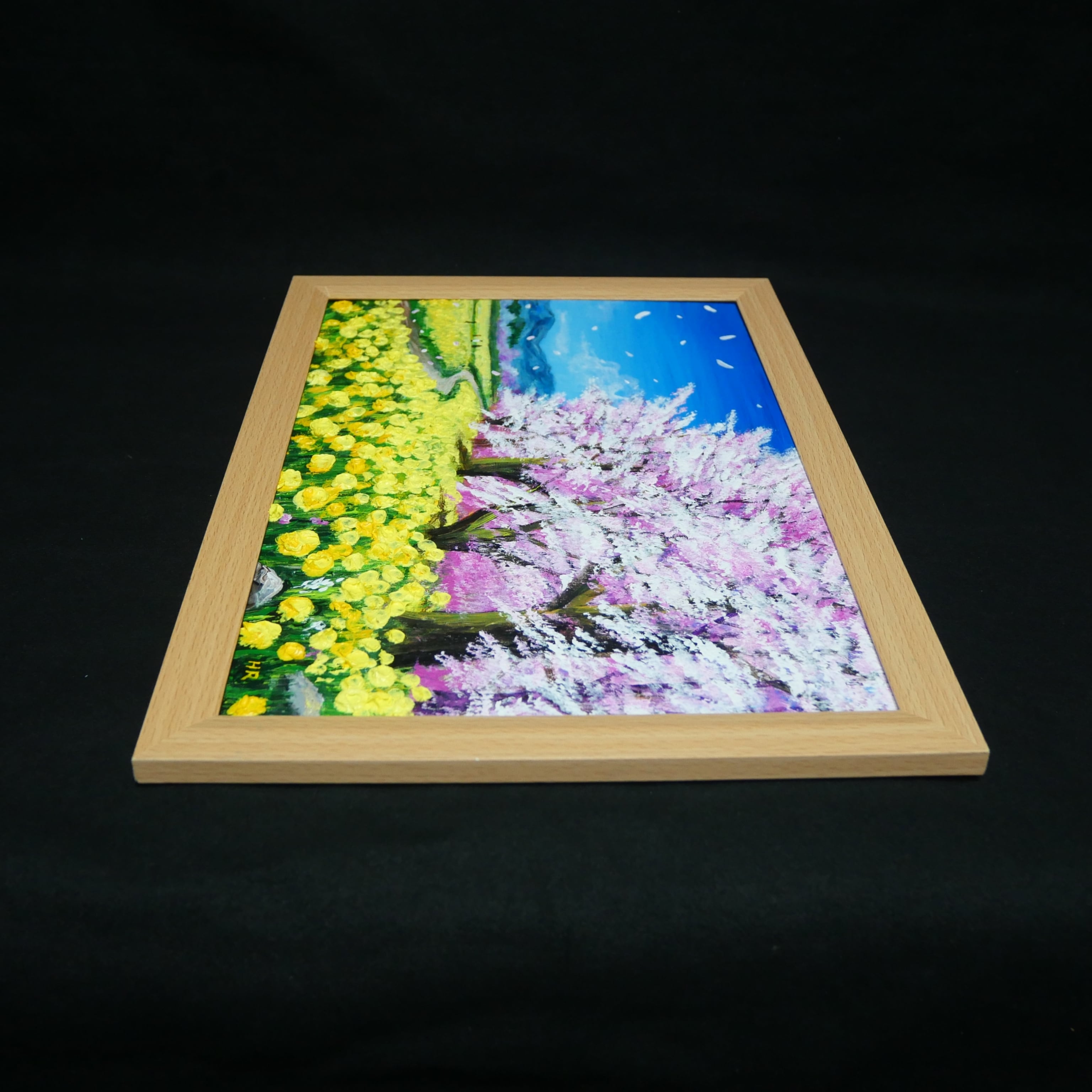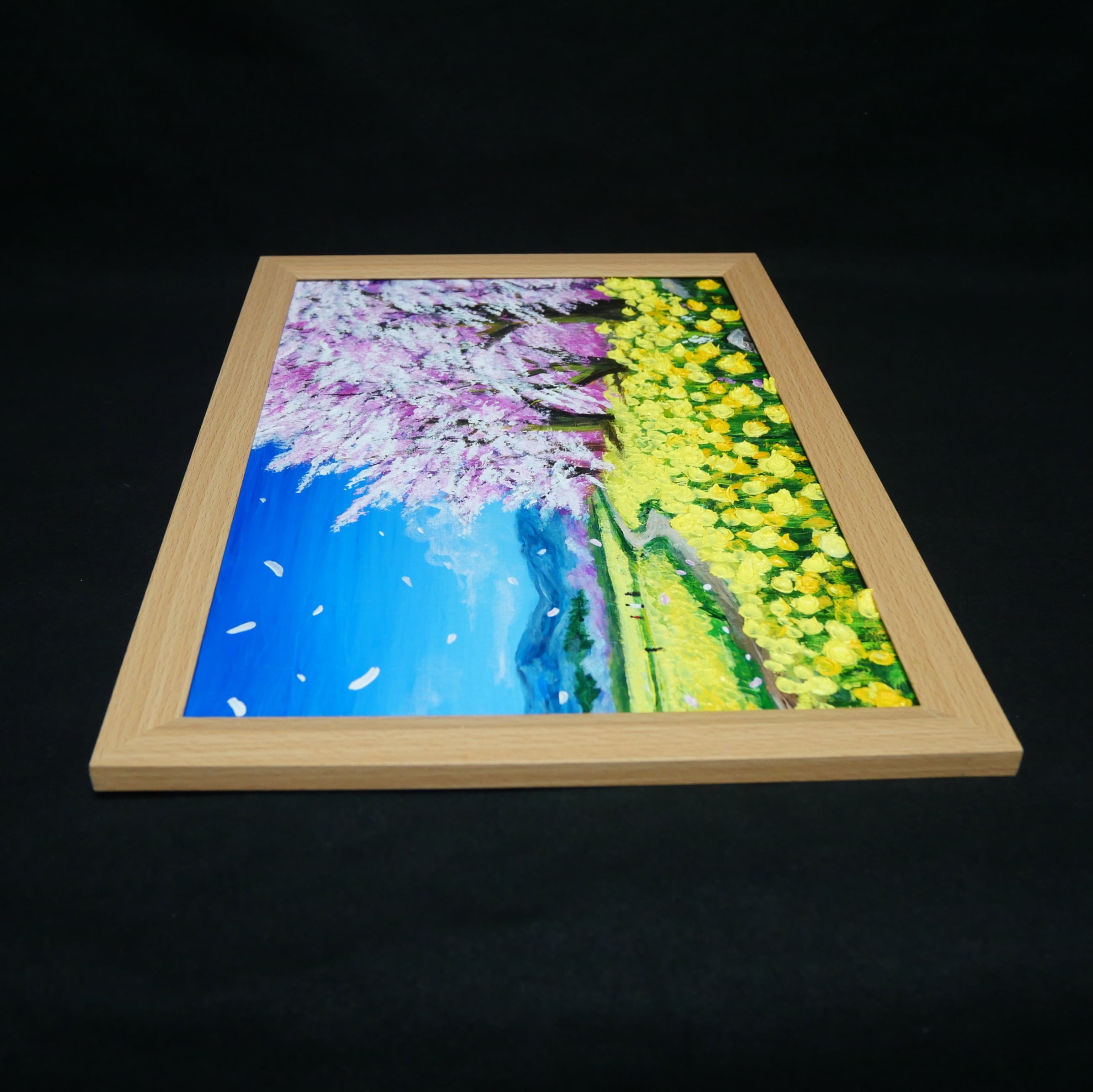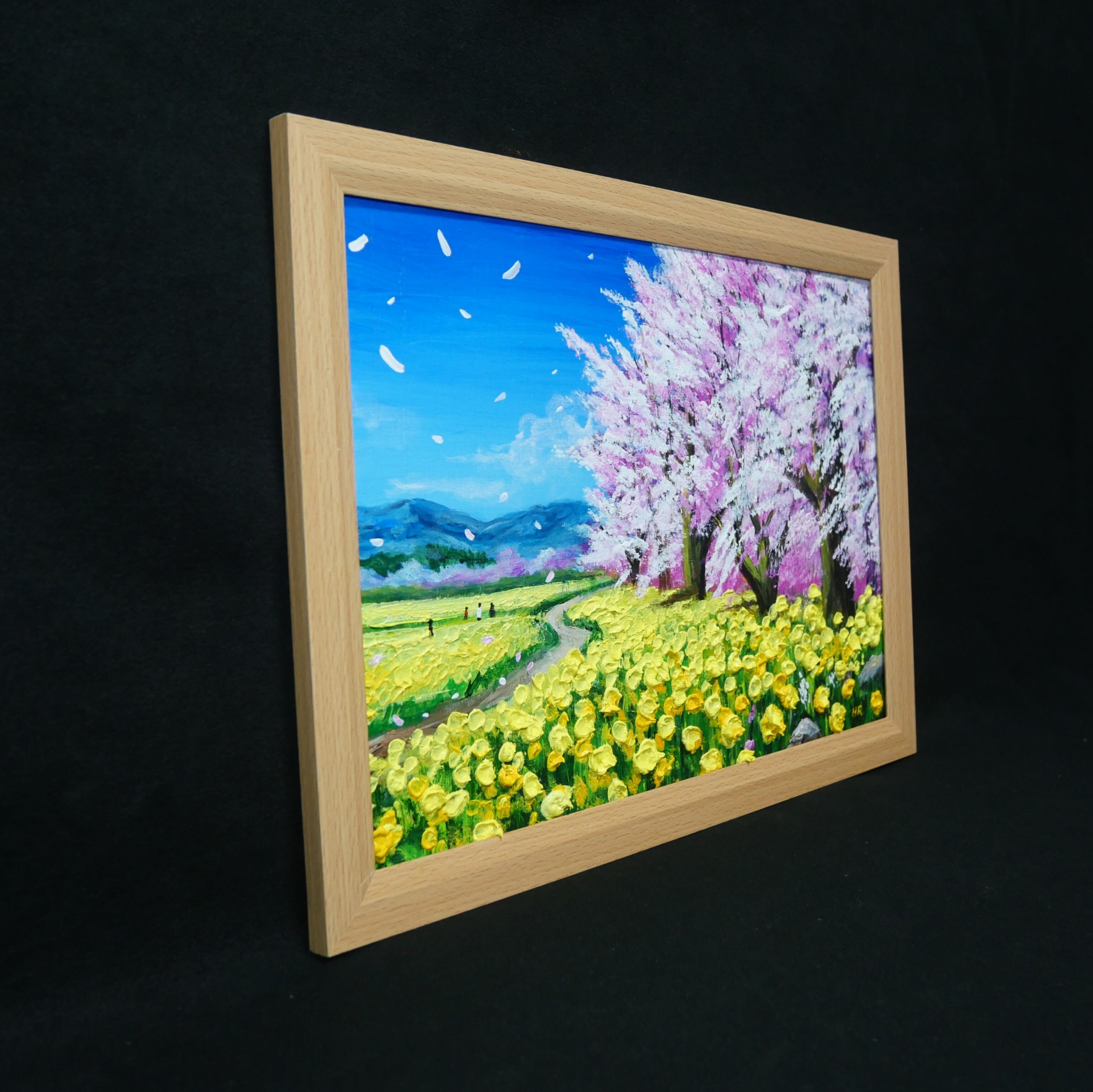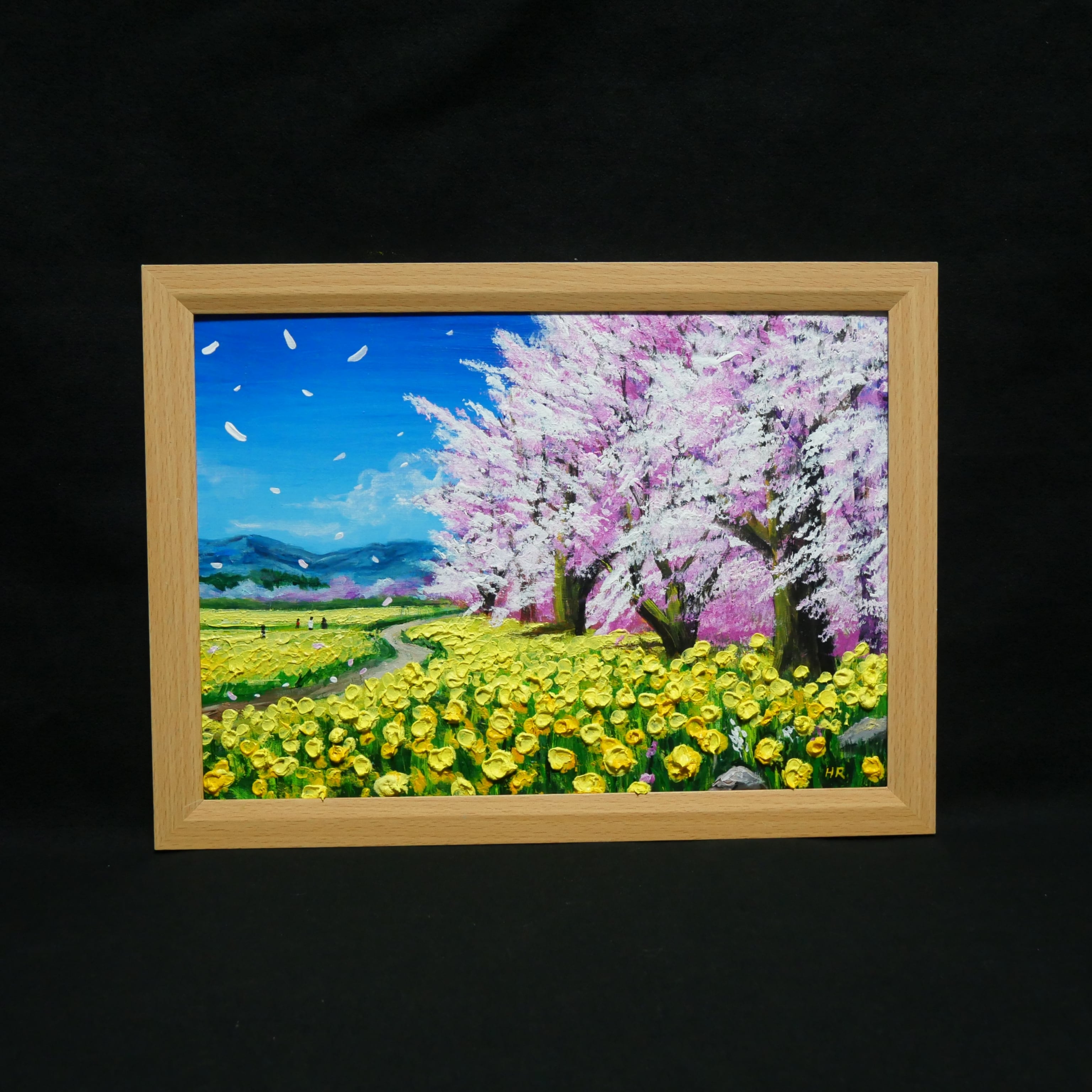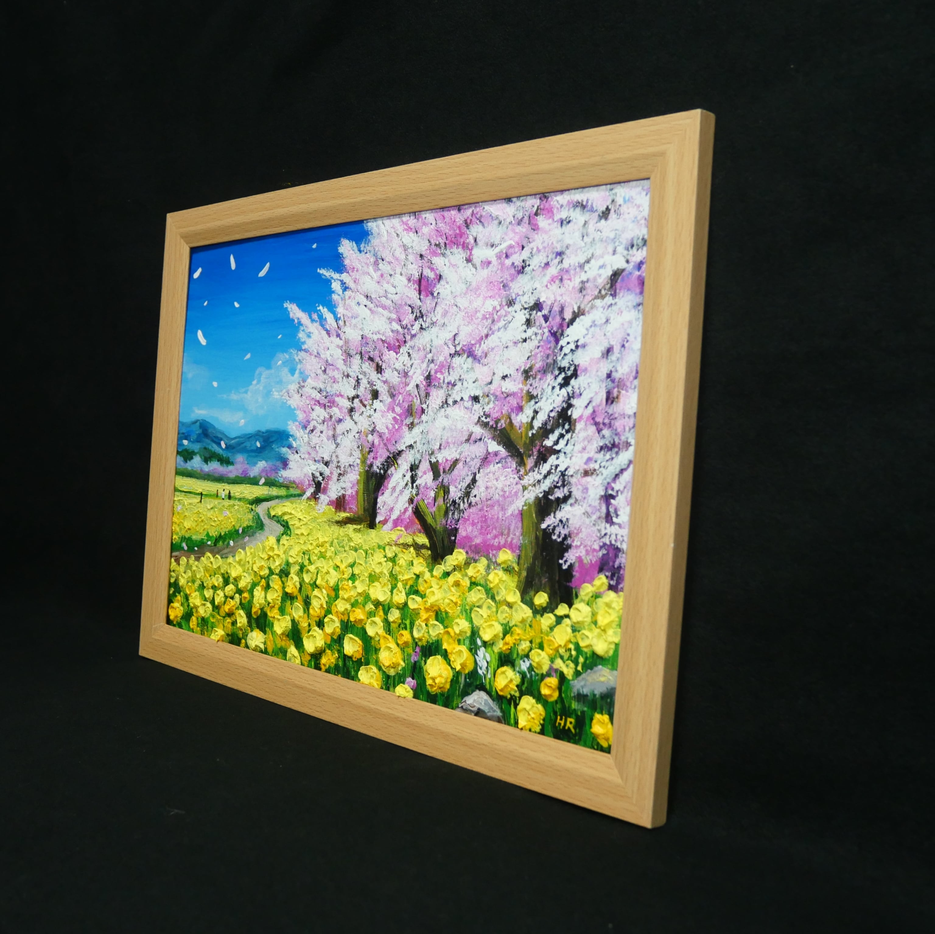 この作品をお部屋に飾ることで、明るくエネルギッシュなイエローと心を癒すピンクの組み合わせが、瞬時に空間を春の雰囲気に変えてくれます。玄関やリビングなど、日常のふとした瞬間に「春の訪れ」を感じていただける一枚です。ぜひ、作家の情熱が込められたこの美しい一点物をお手元でご堪能ください。