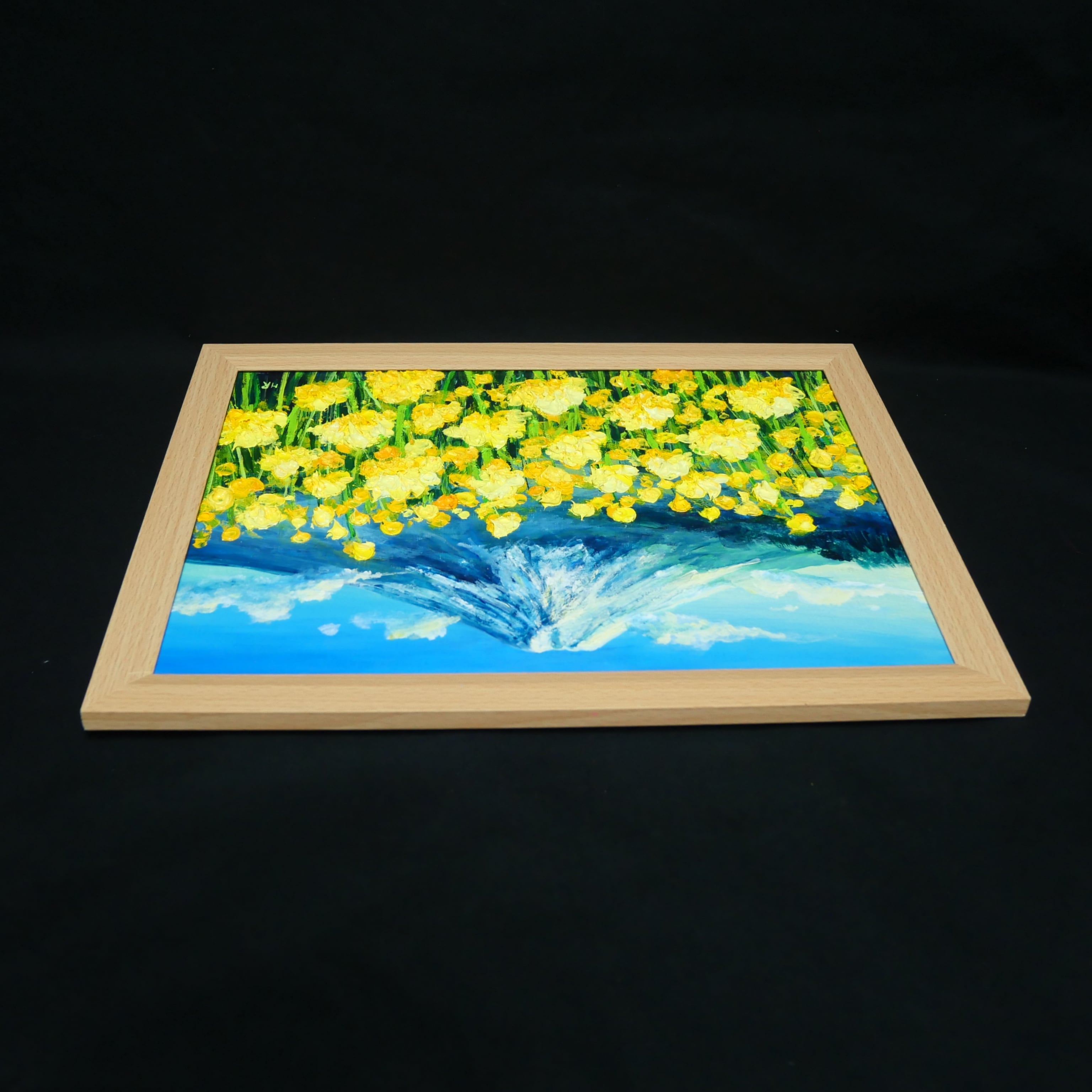 この絵が部屋にあることで、心に沈んだ影がパッと晴れ渡り、日々のエネルギーを与えてくれることでしょう。「希望の息吹」を具現化したこの作品は、見る人の人生に寄り添い、新たな朝を常に告げる特別な存在となります。ぜひ、作家の情熱が込められたこの美しい一点物をお手元でご堪能ください。