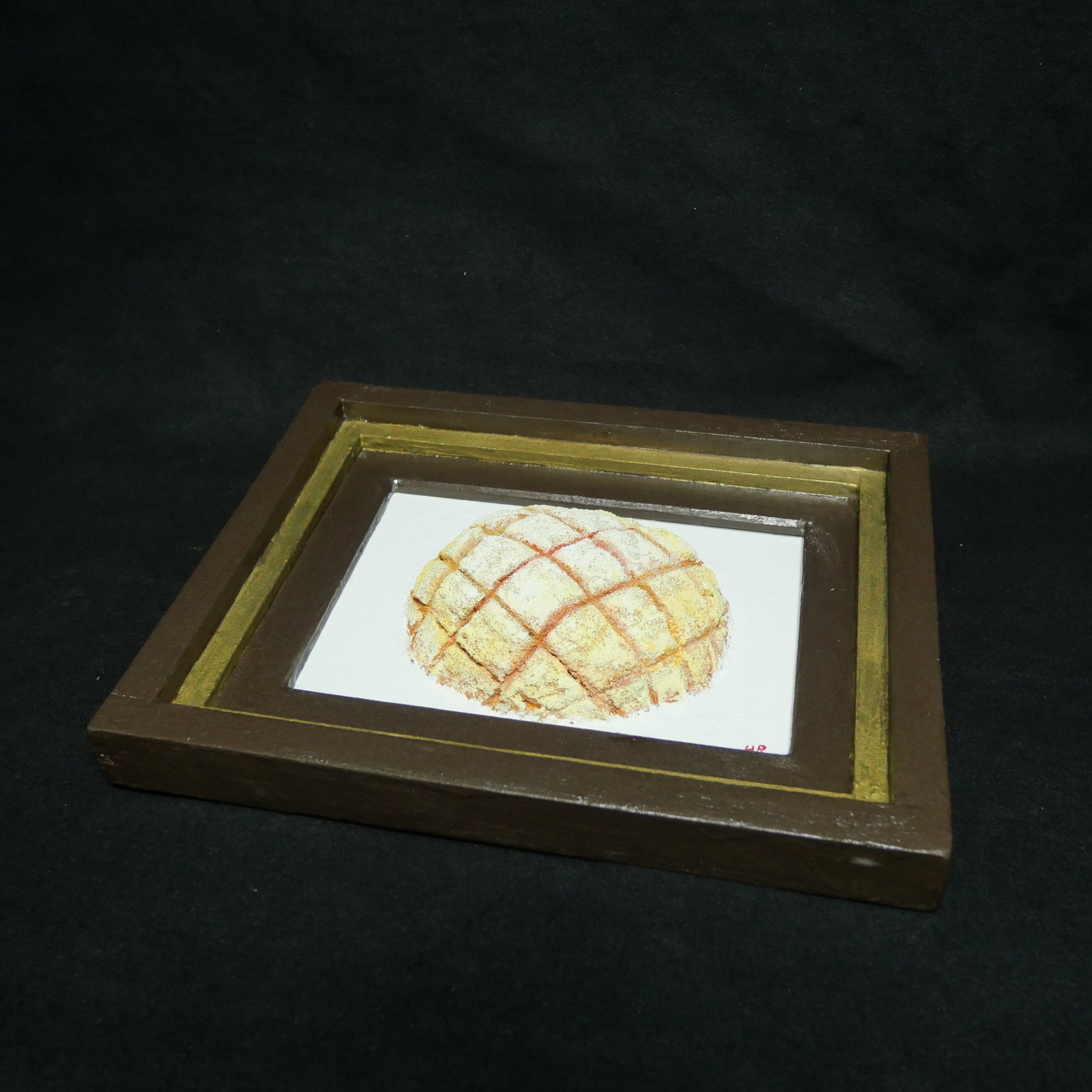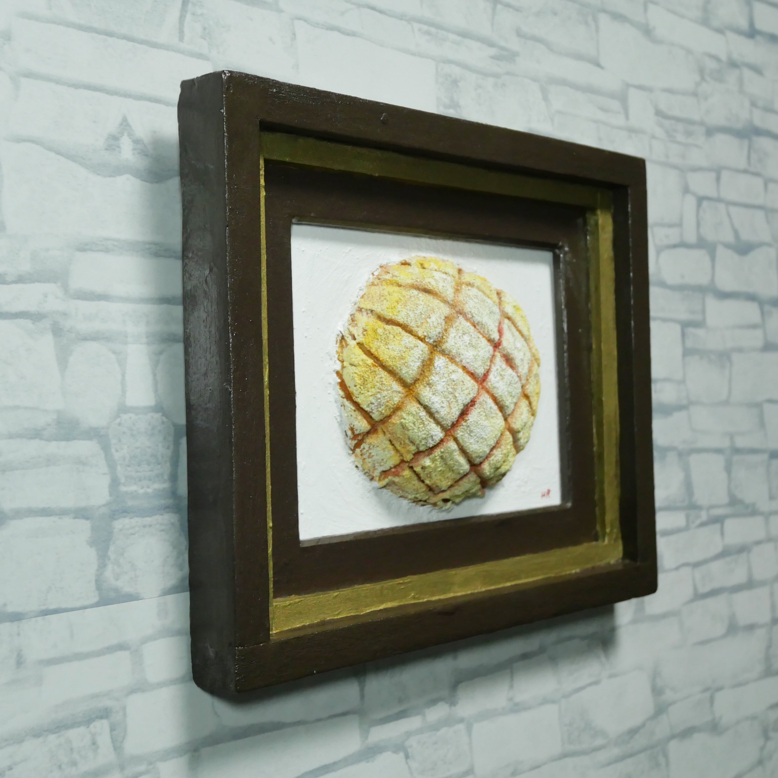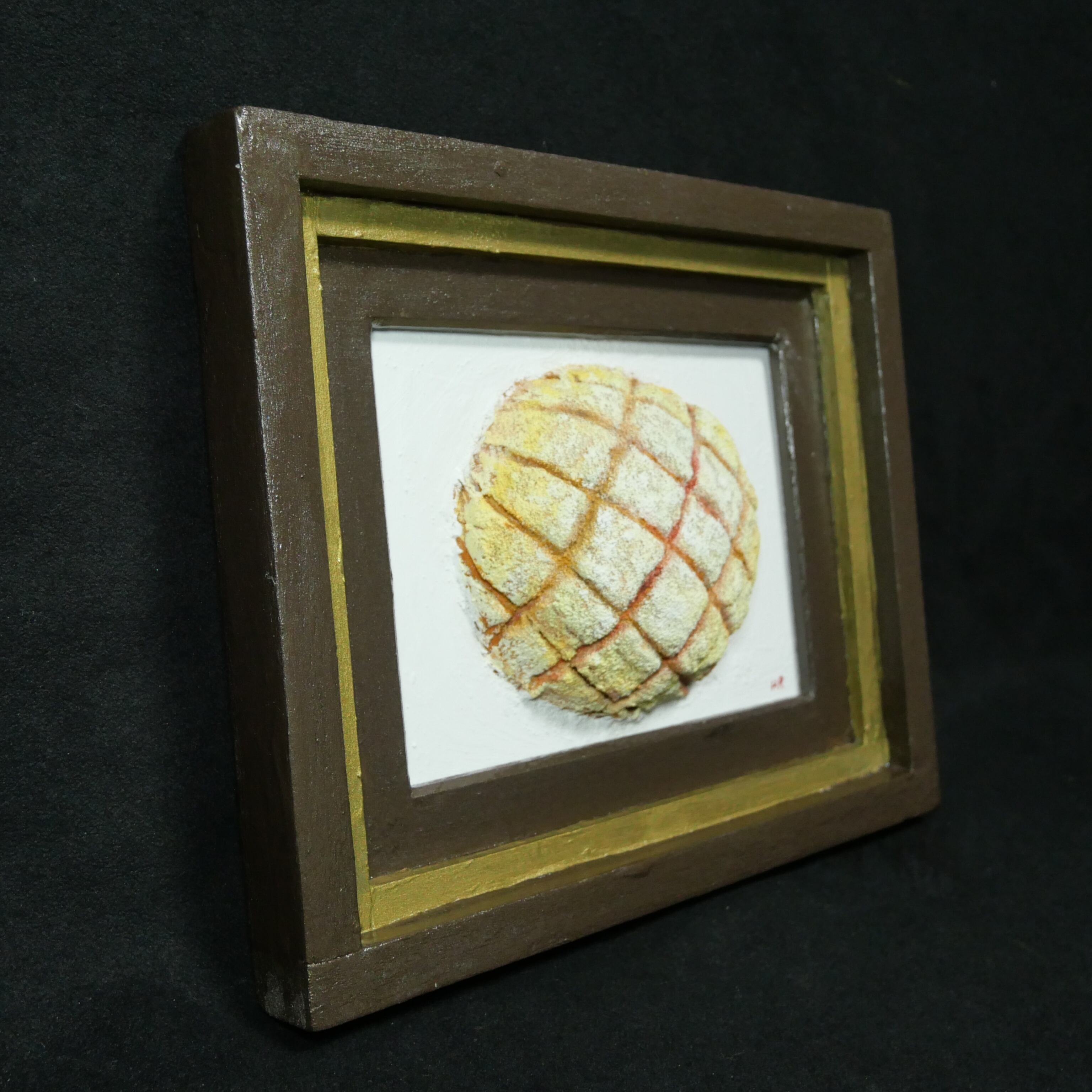 また、重厚感のあるアンティークゴールドとブラウンの額縁が、この作品を一層引き立て、日常の「パン」を一つの「芸術」へと昇華させます。ハンドメイドのため、筆跡や素材の凹凸が織りなす「一点物」の温もりを感じていただけます。どの角度から見ても異なる魅力を楽しめる、特別なアート作品をぜひお手元でご堪能ください。