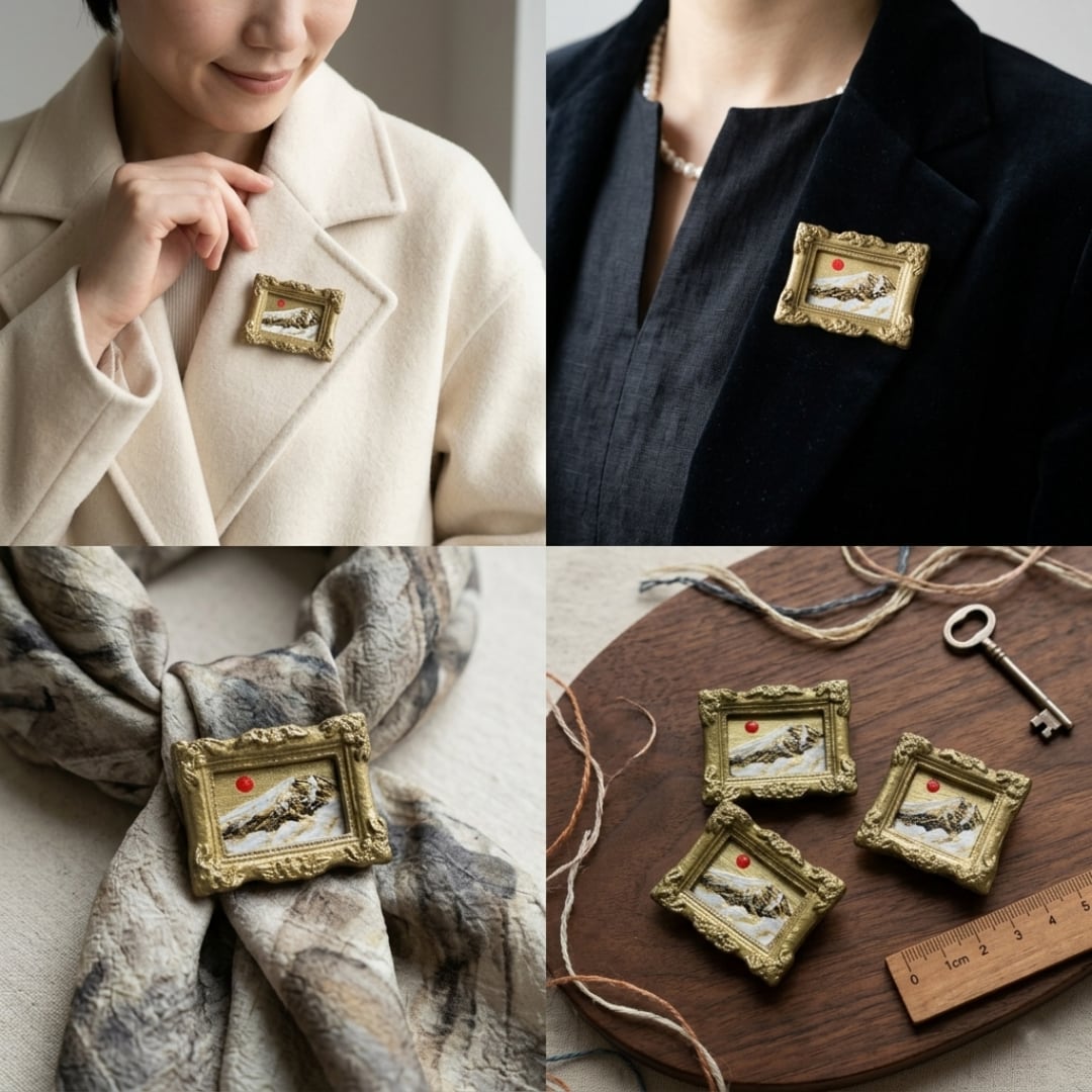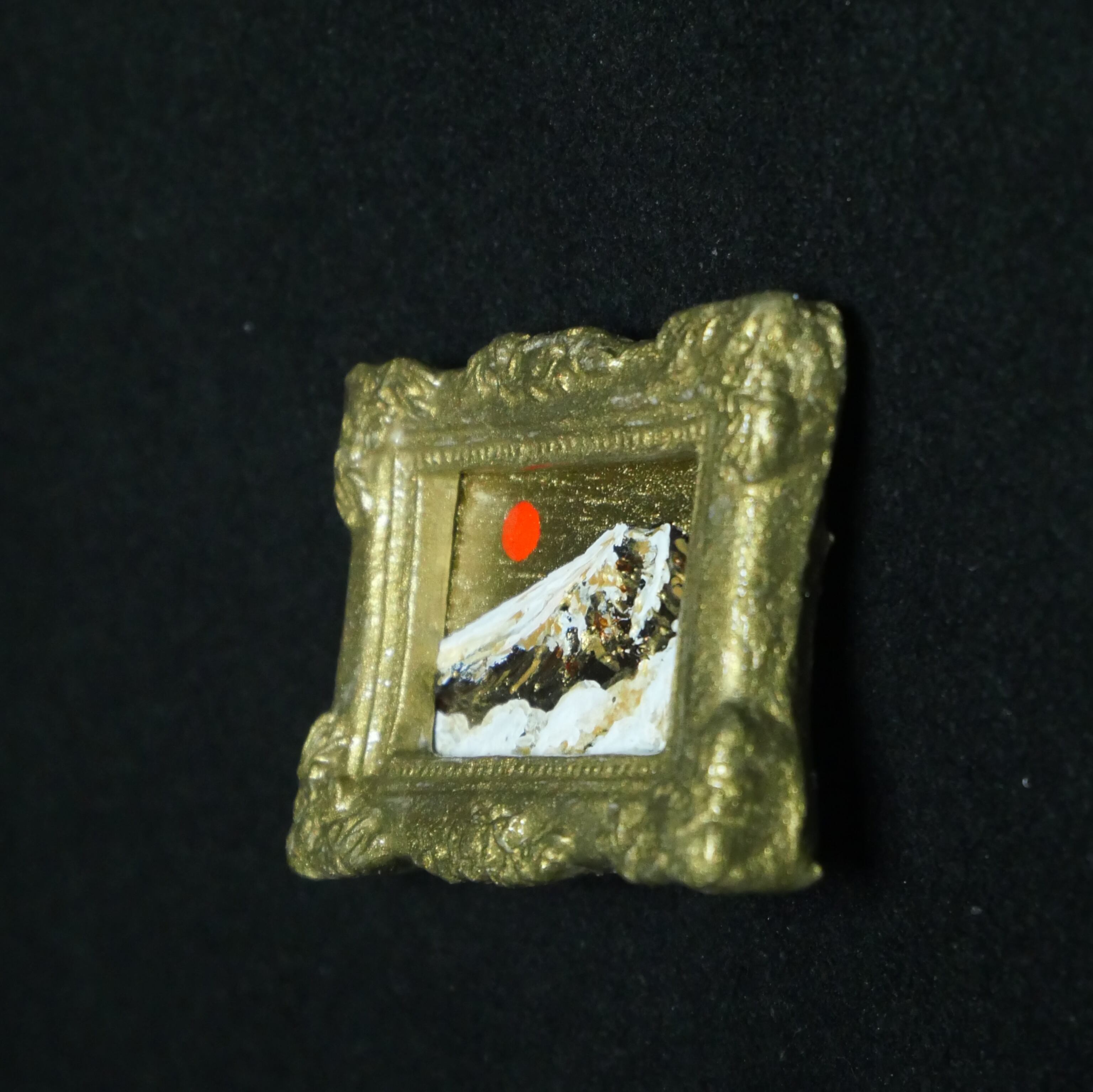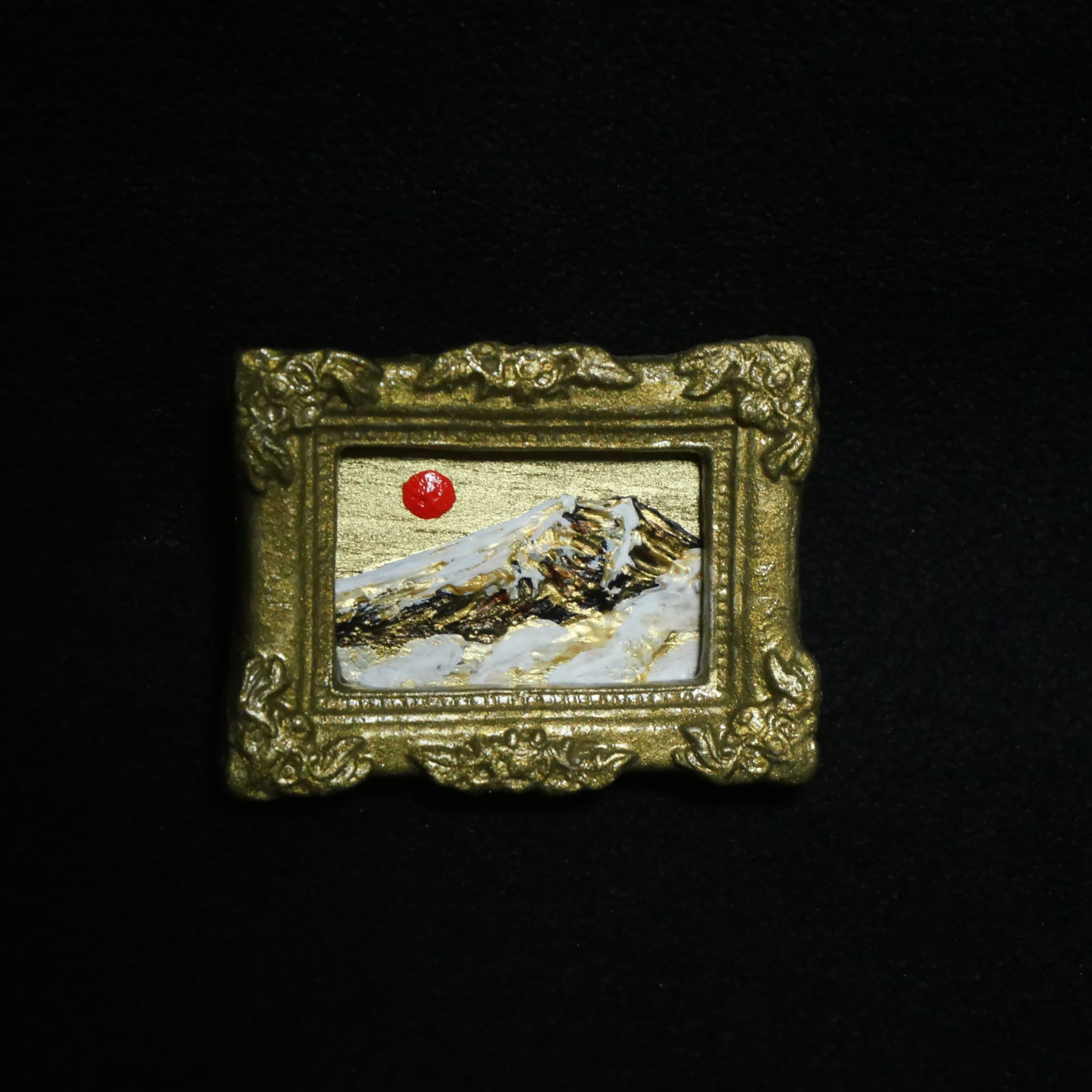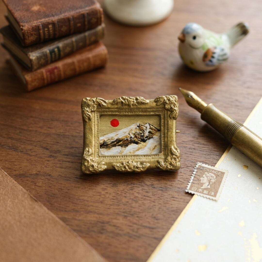 【一点物】黄金の輝きを纏う。油彩ミニチュール「黄金富士」ブローチ