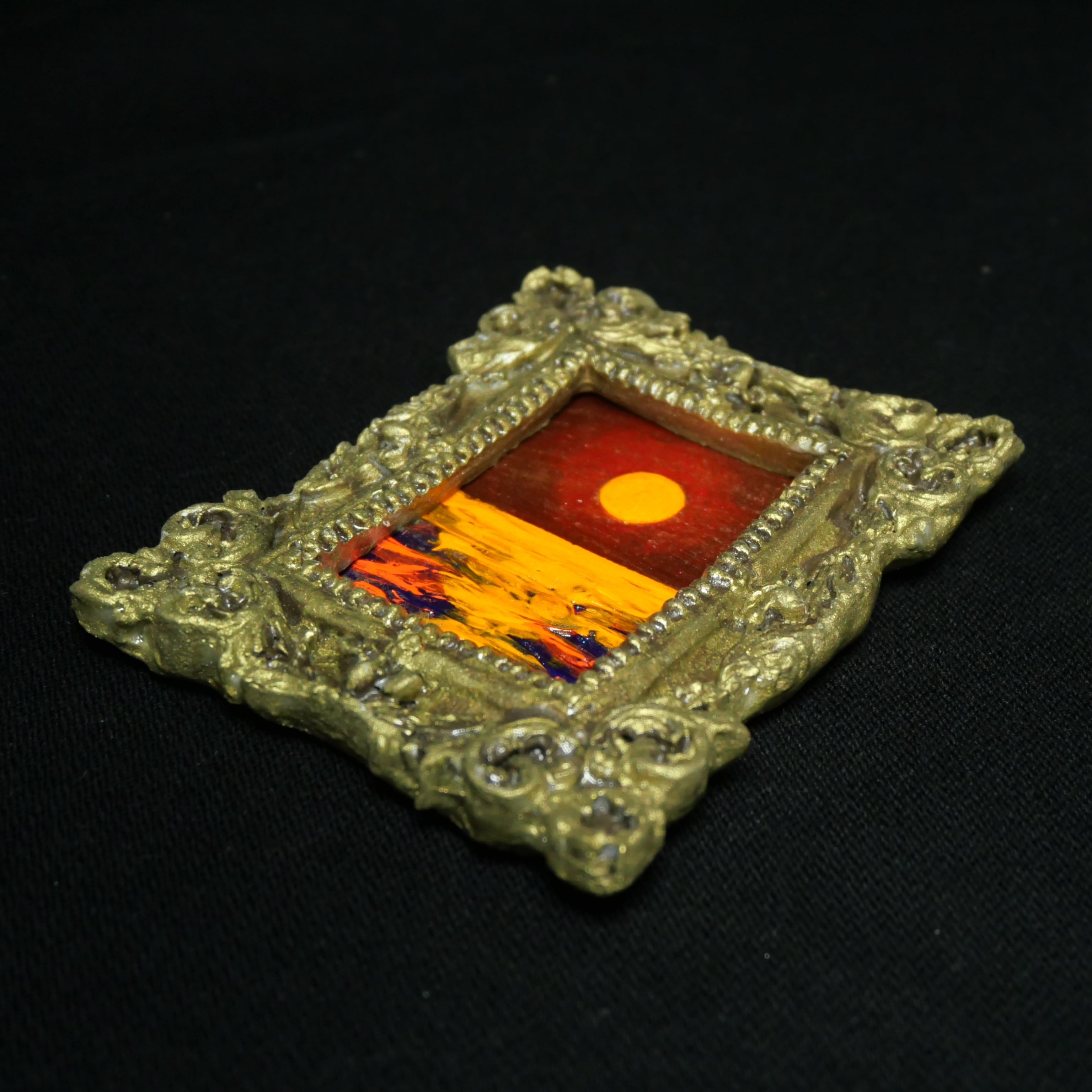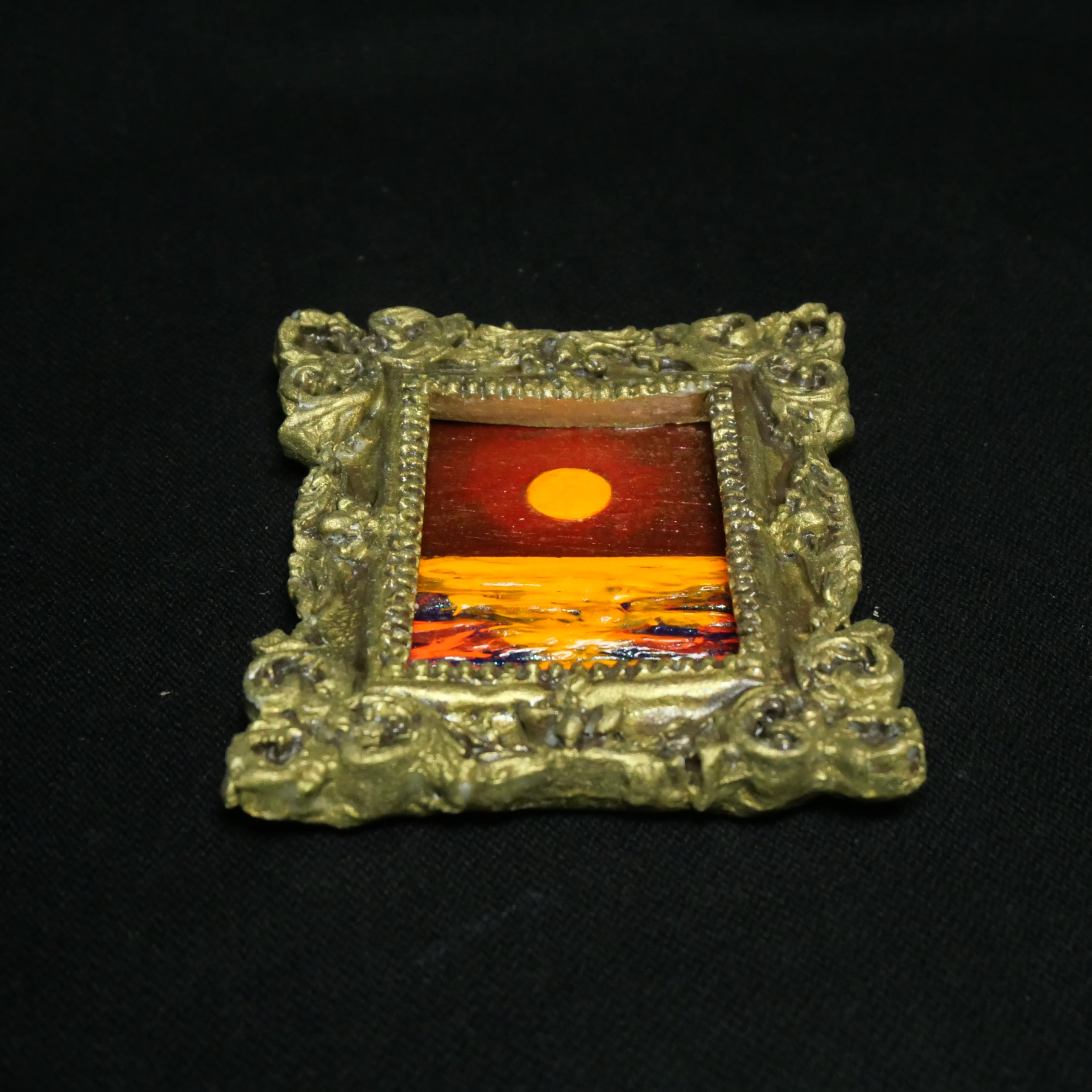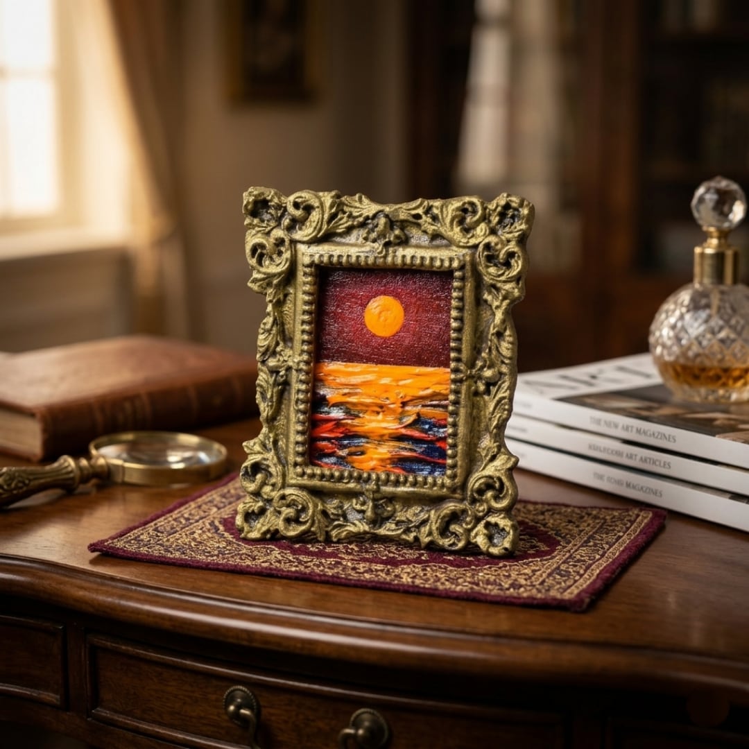 贅沢な豪華フレーム:装飾が施されたゴールドフレームに収められたこのミニ絵画は、わずか縦9.5cmというコンパクトさながら、一瞬でその場に品位を創出します。