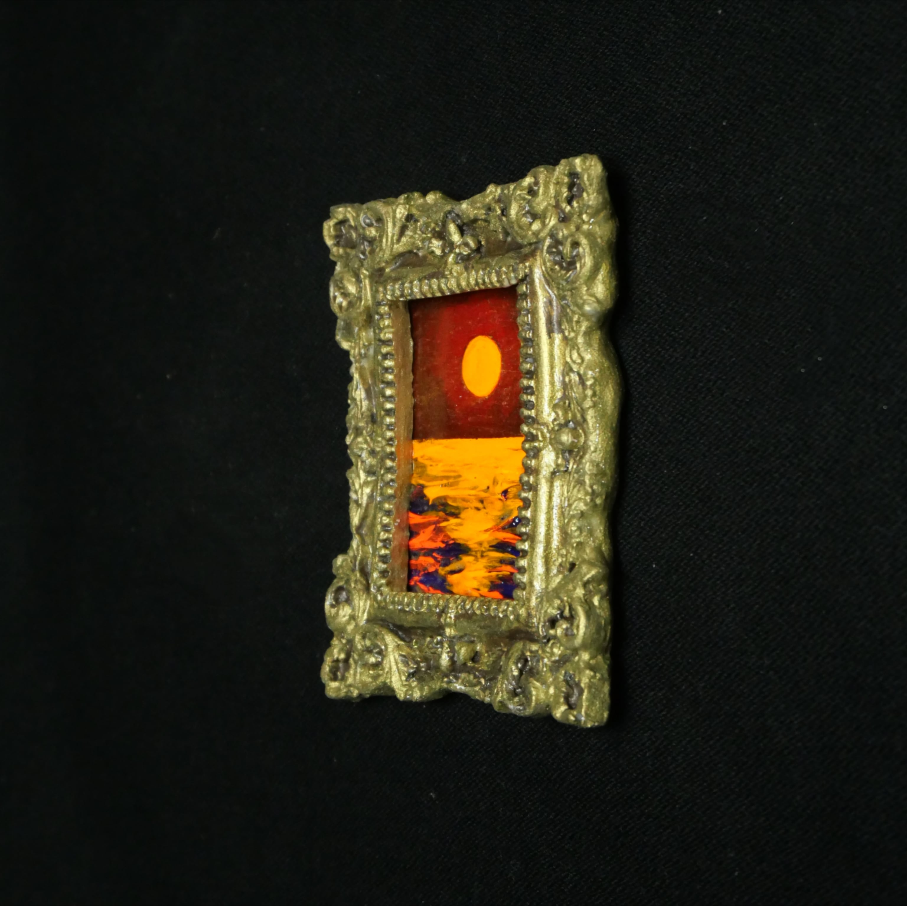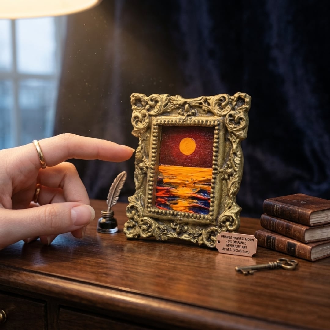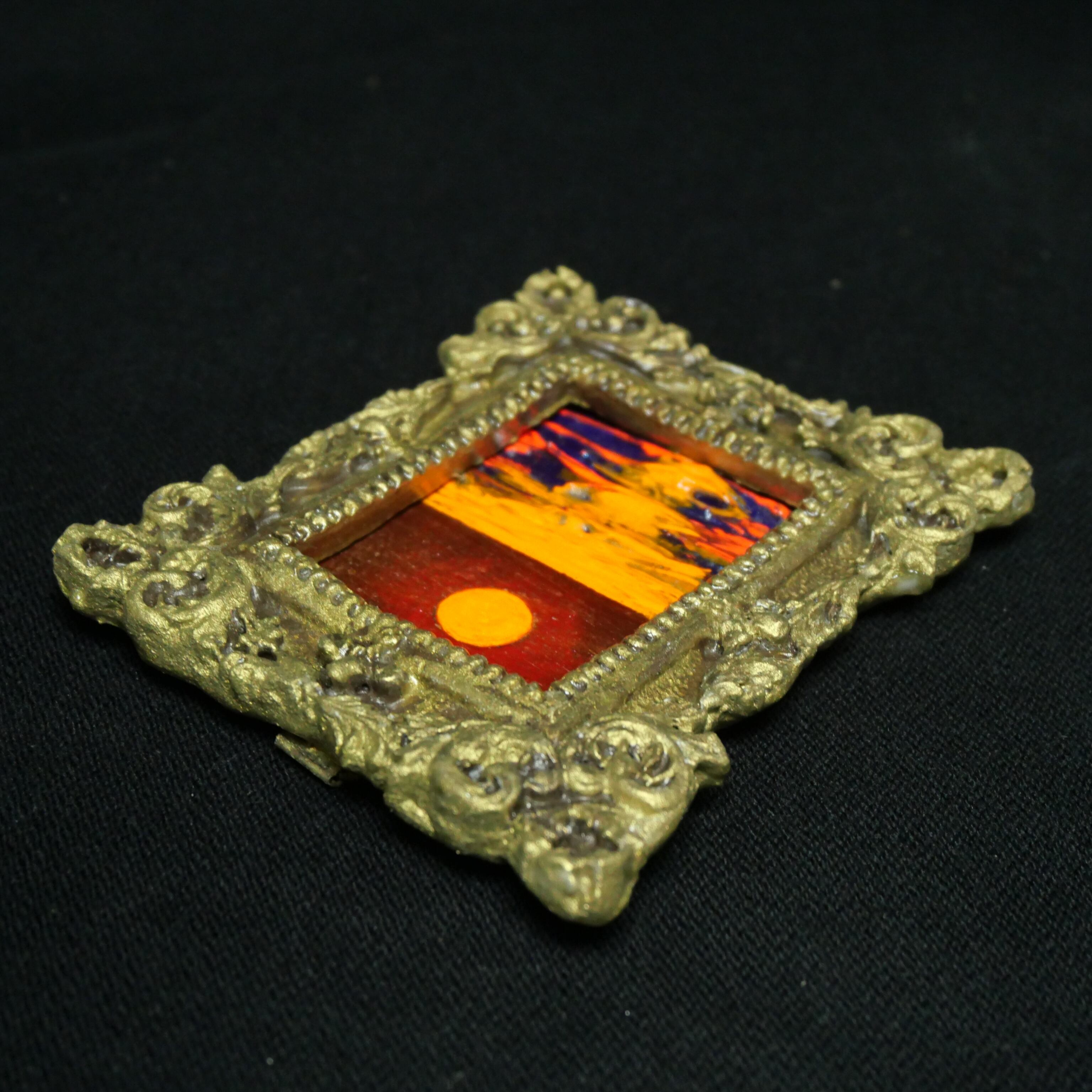 贅沢な豪華フレーム:装飾が施されたゴールドフレームに収められたこのミニ絵画は、わずか縦9.5cmというコンパクトさながら、一瞬でその場に品位を創出します。