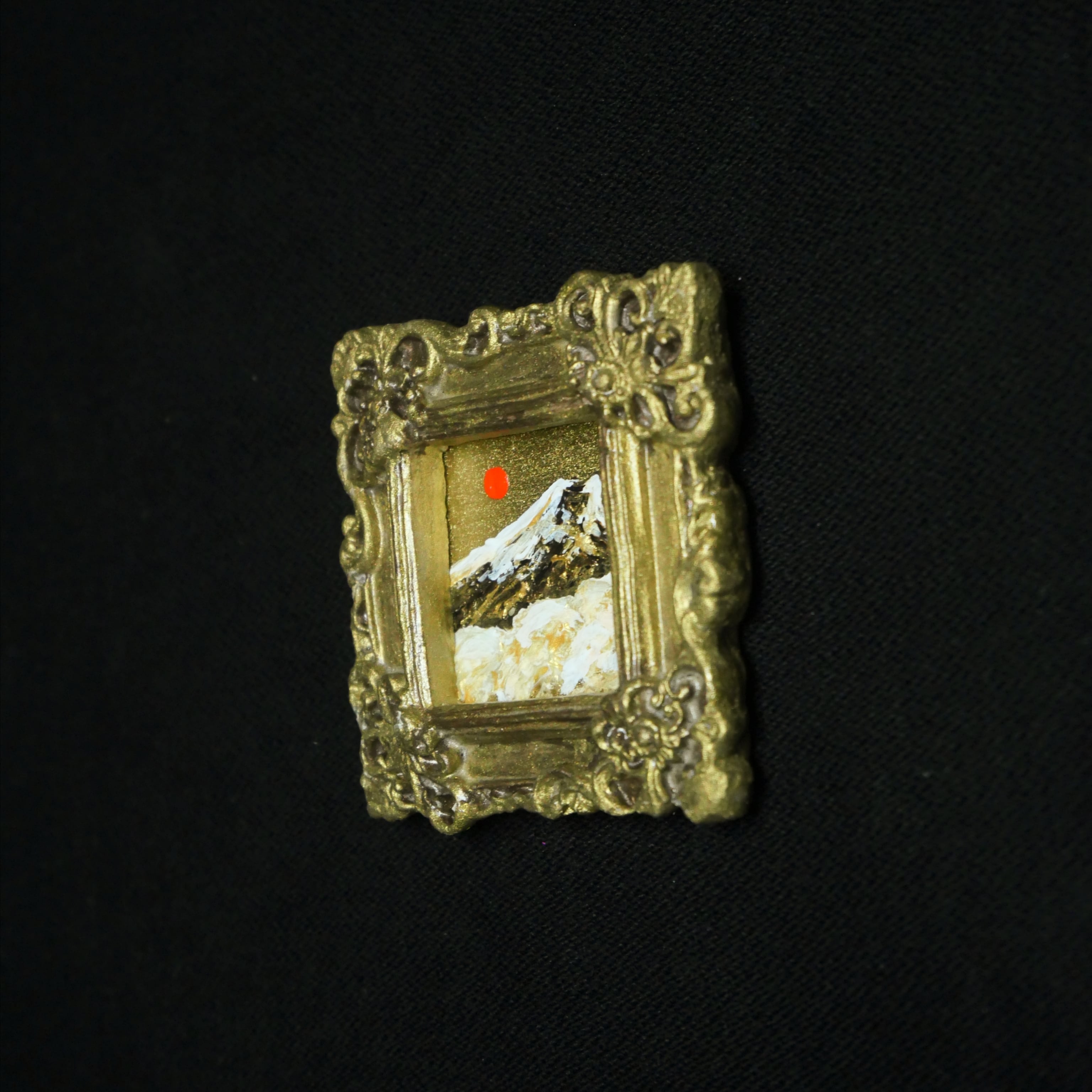 【油絵】ミニチュア絵画「輝く富士と日輪」北欧・モダンインテリアに飾れる原画