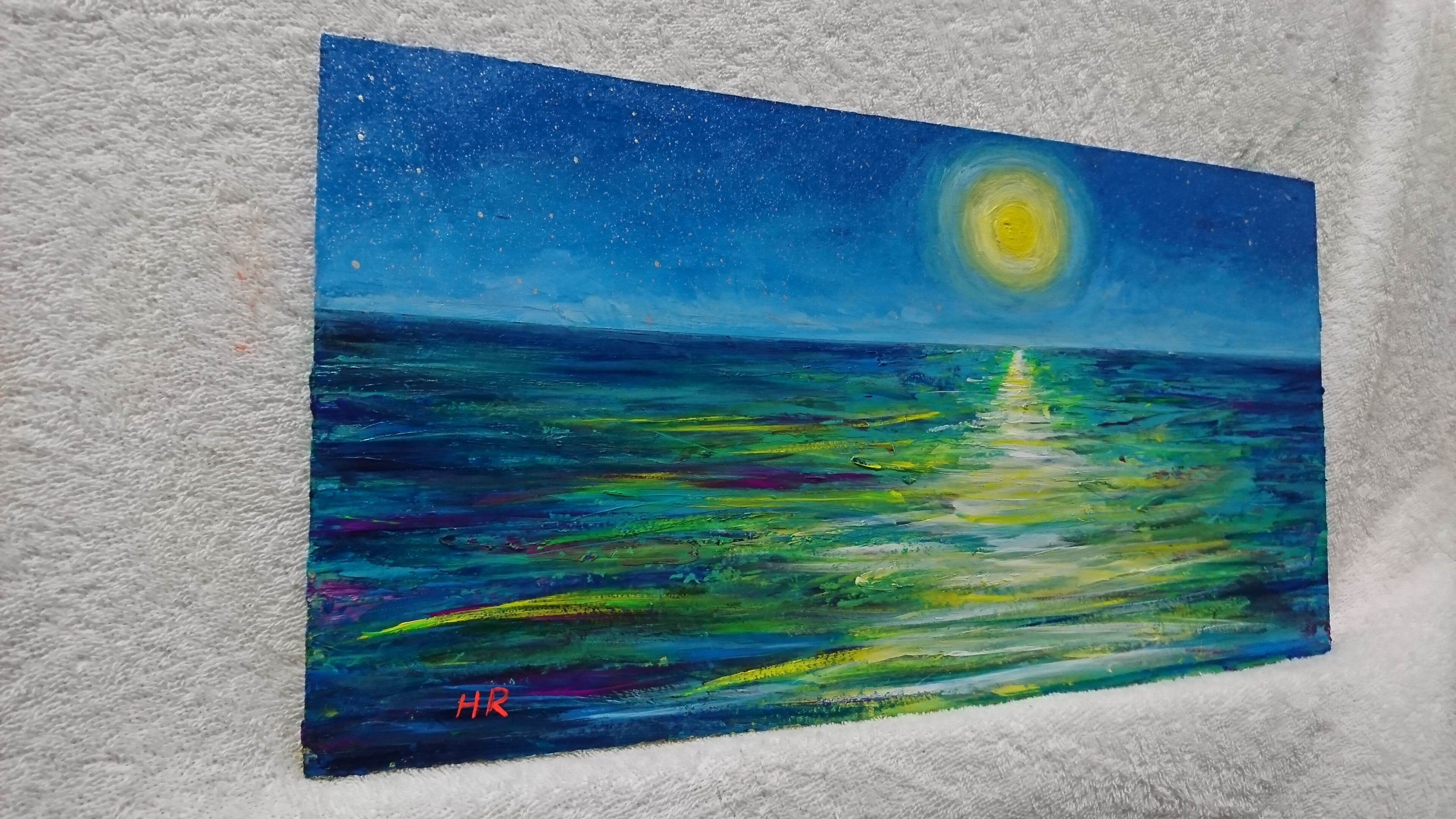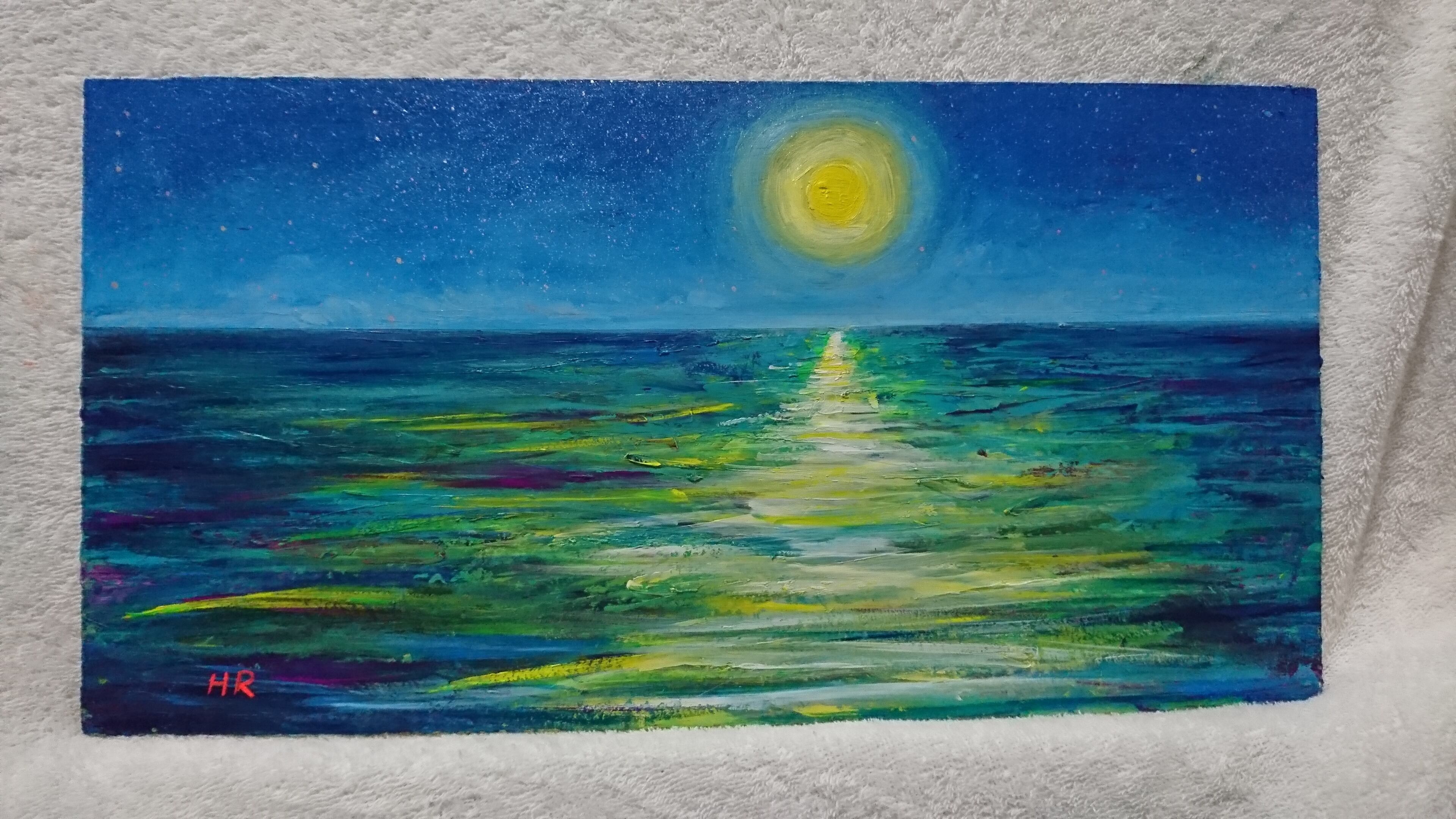【油絵】「海」(M)ベニヤ板 油絵、絵画、美術