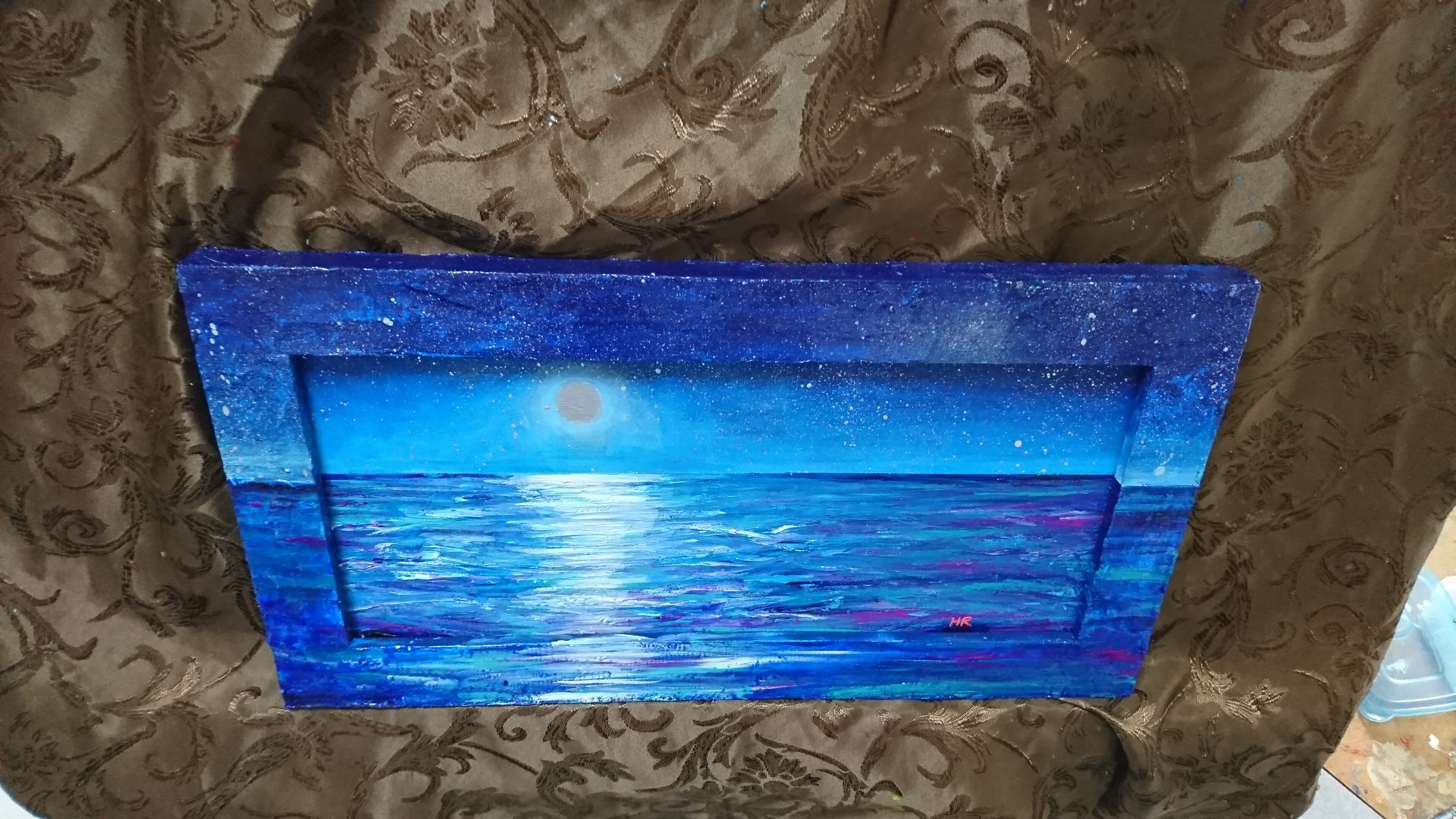 【油絵】「海」(O)ベニヤ板 油絵、絵画、美術